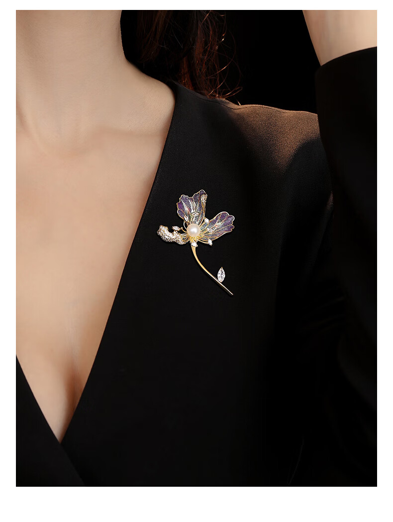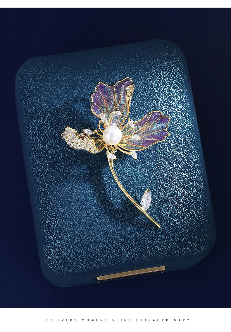Yin Muchi Danish iris brooch pearl luxury corsage elegant niche design pin high-end practical birthday gift XZ0617 iris brooch