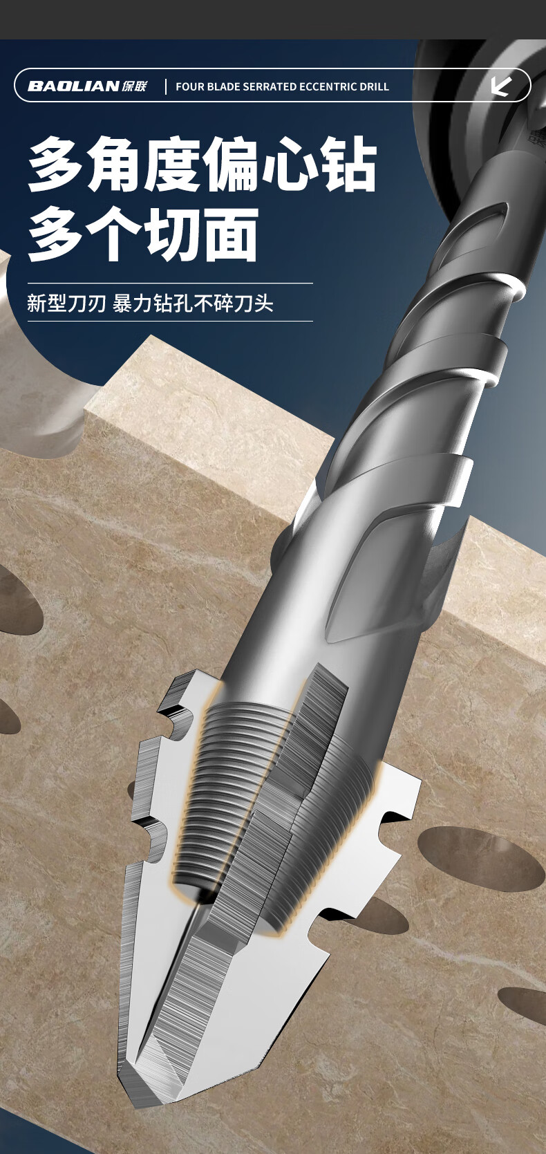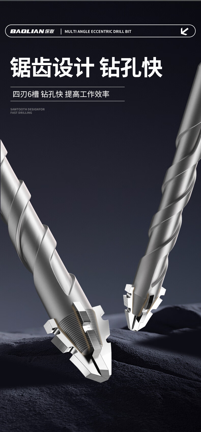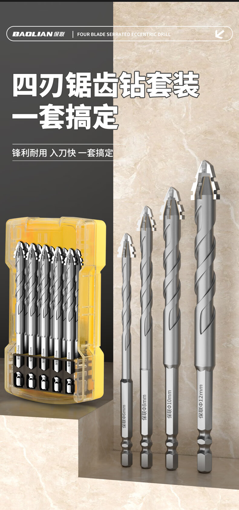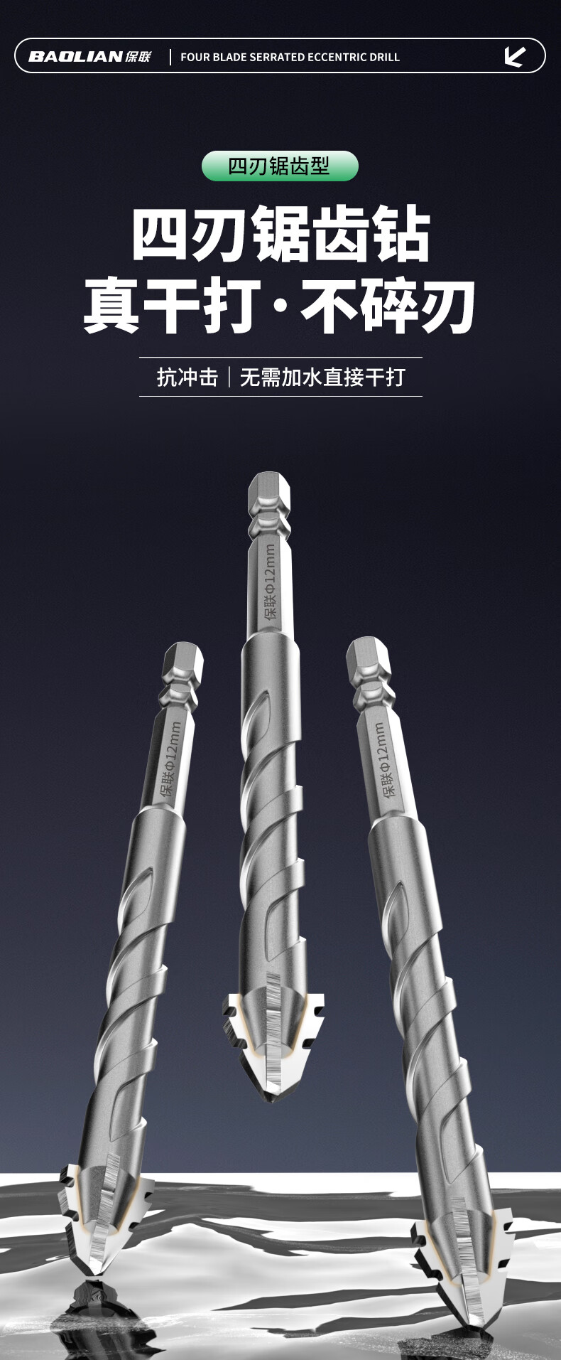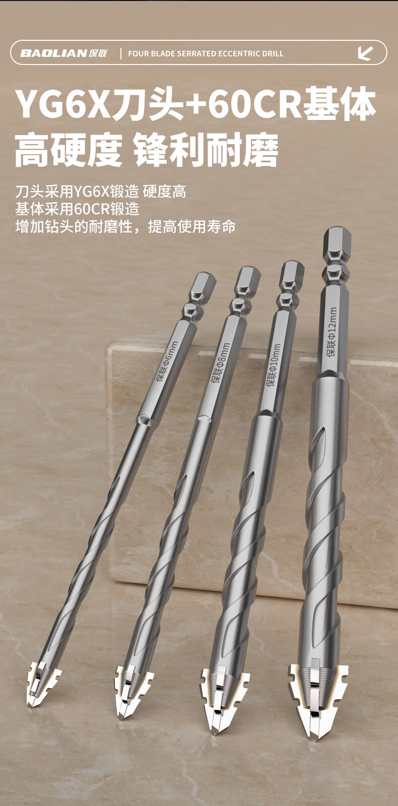 Baolian four-edged sawtooth eccentric drill bit tile marble drilling bit concrete drilling special electric drill dry drilling bit special 6mm 2 pieces