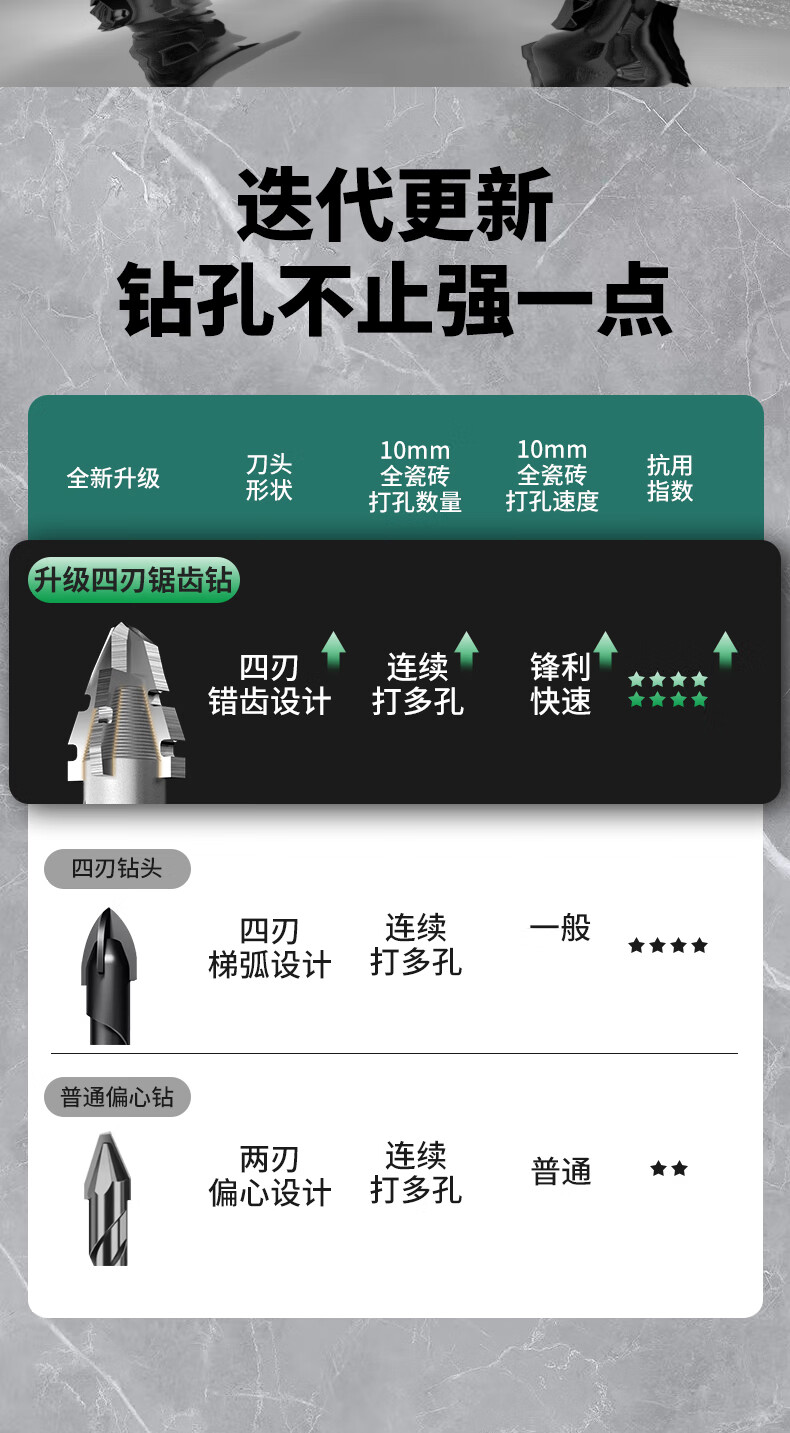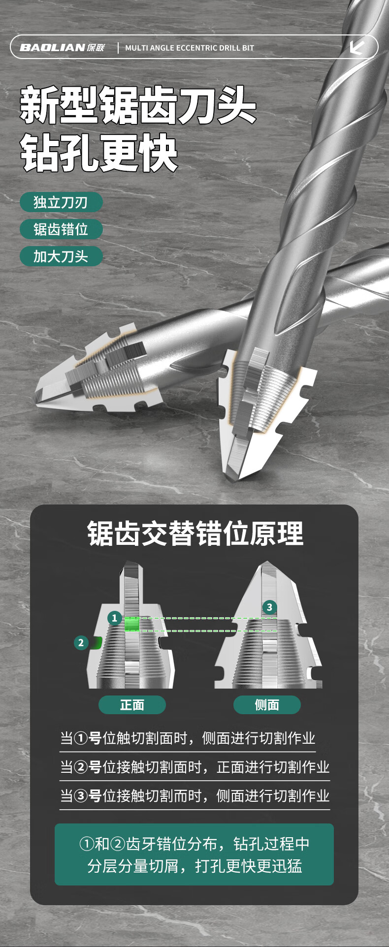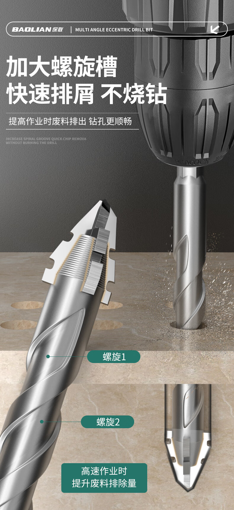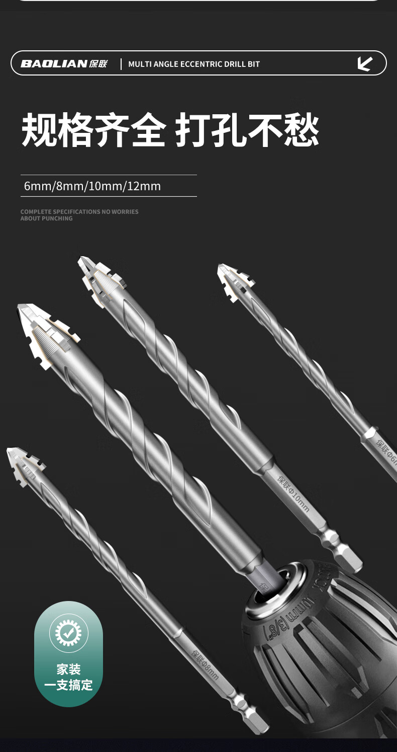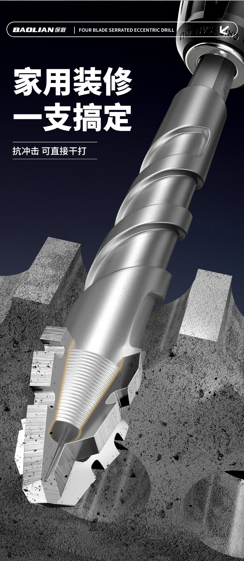 Baolian four-edged sawtooth eccentric drill bit tile marble drilling bit concrete drilling special electric drill dry drilling bit special 6mm 2 pieces