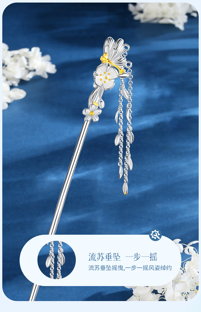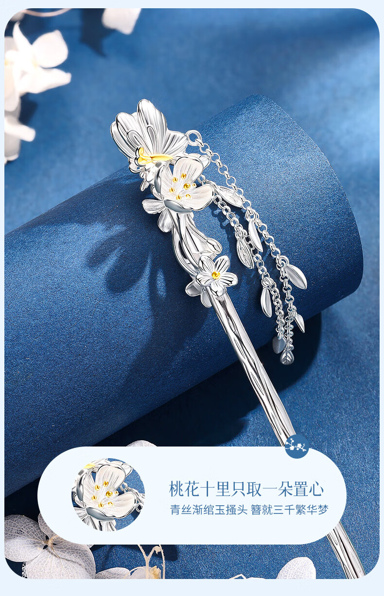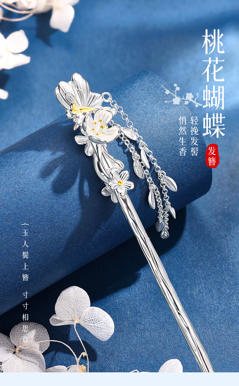 Chinese Gold Butterfly Peach Blossom Branch Hairpin Female Ancient Style Hairpin Hanfu Headwear Birthday Gift for Girlfriend and Wife Wedding Anniversary Butterfly Peach Blossom Branch Tassel Hairpin/Engraved Greeting Card