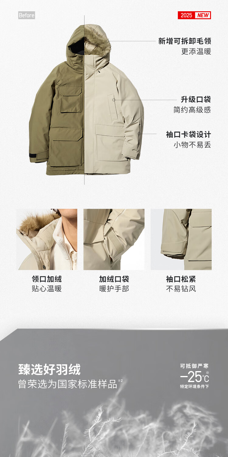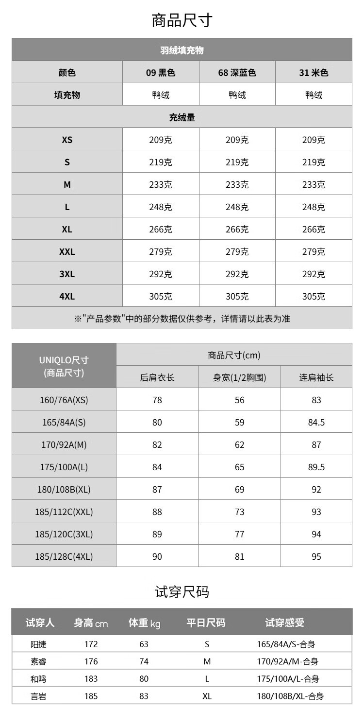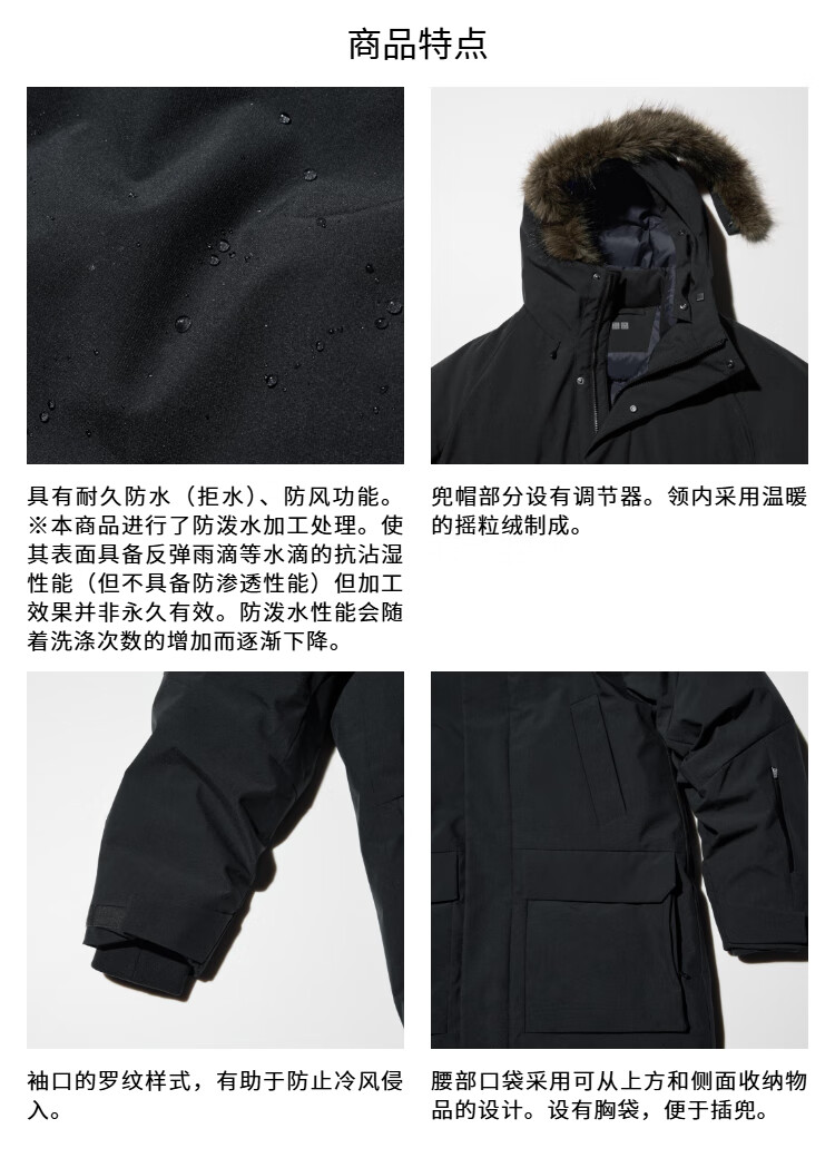 Uniqlo Moregard Same Style Men's and Women's Premium Warm Down Coat Jacket Ice and Snow Down 481200 09 Black XL