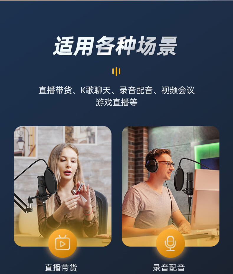 MAONO Flash PM325 Live Broadcast Microphone Anchor Special Radio Recording Internet Celebrity Singing Game Delivery Noise Reduction Desktop Computer Laptop Mobile Phone Capacitor Flash Microphone Set PM325 Cantilever Bracket Set Official Standard