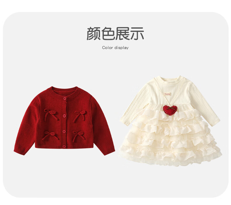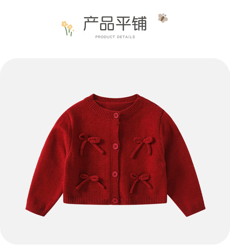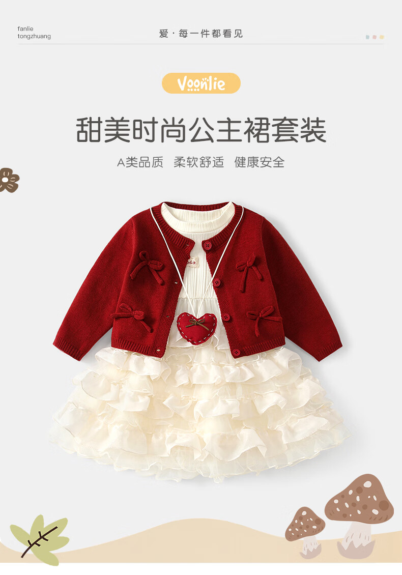 Fanlie VOONLIE girls dress spring children's knitted cardigan princess dress little girl fashionable baby one-year-old dress spring and autumn red 80 cm