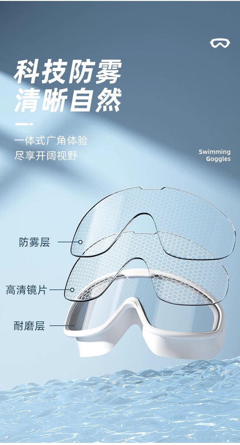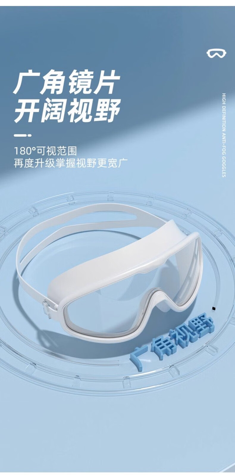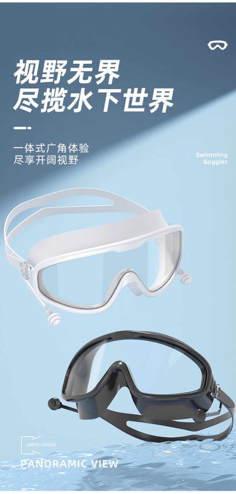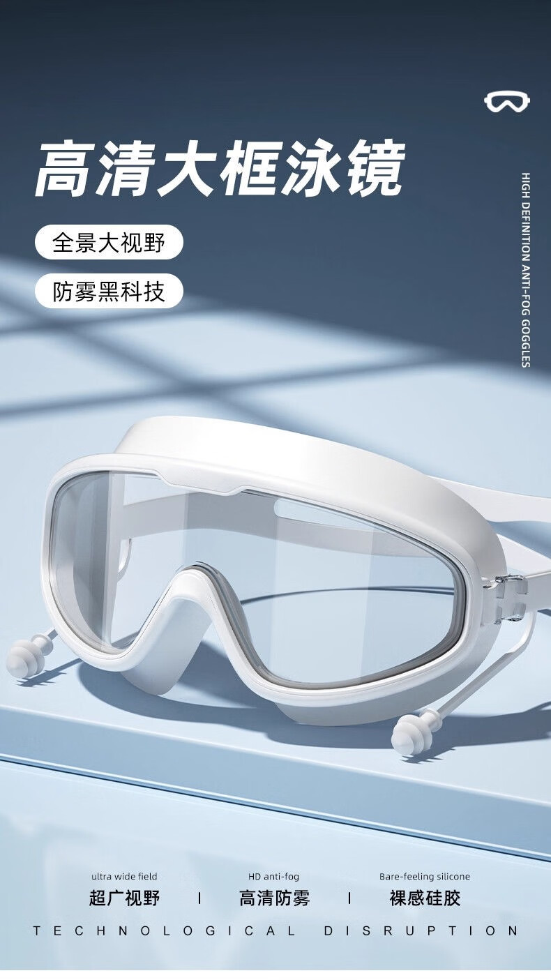 TLXT swimming goggles, swimming goggles with earplugs, one-piece men's and women's adult large-frame swimming goggles and cap set, children's diving equipment, white, swimming goggles, cap, nose clip, earplugs, HD flat/anti-fog and waterproof