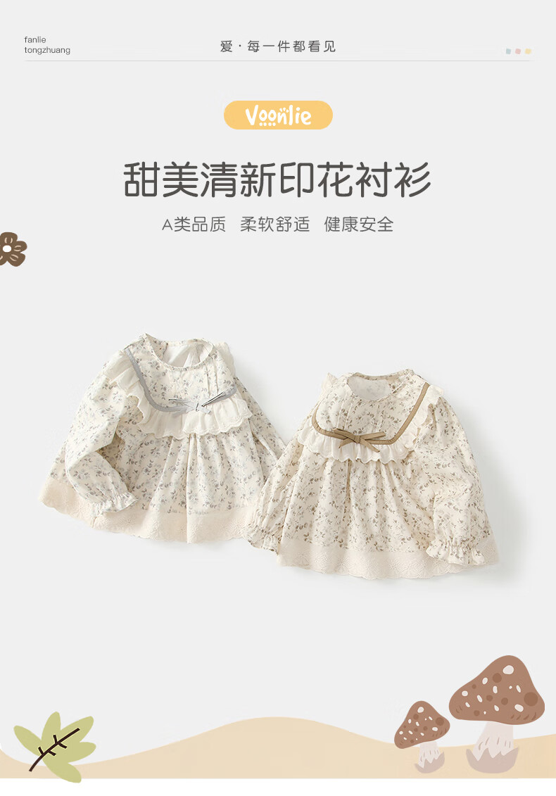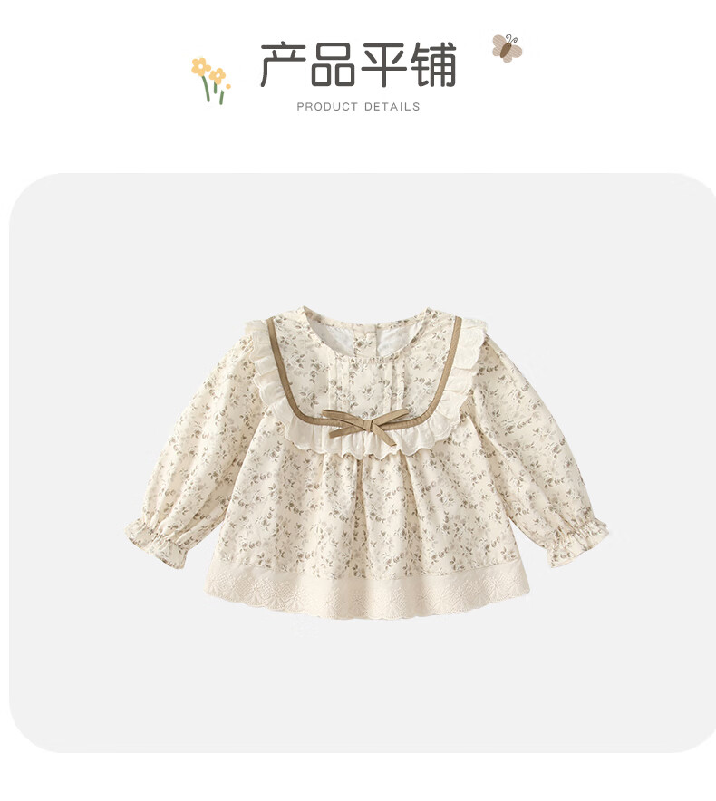 Fanhunting Girls' Shirts Spring 2026 New Children's Fashionable Baby Shirts Little Girls Shirts Baby Tops Spring and Autumn Khaki 80 cm