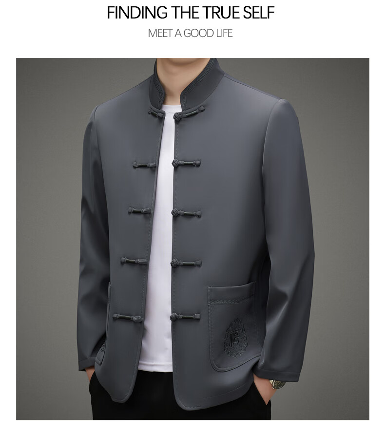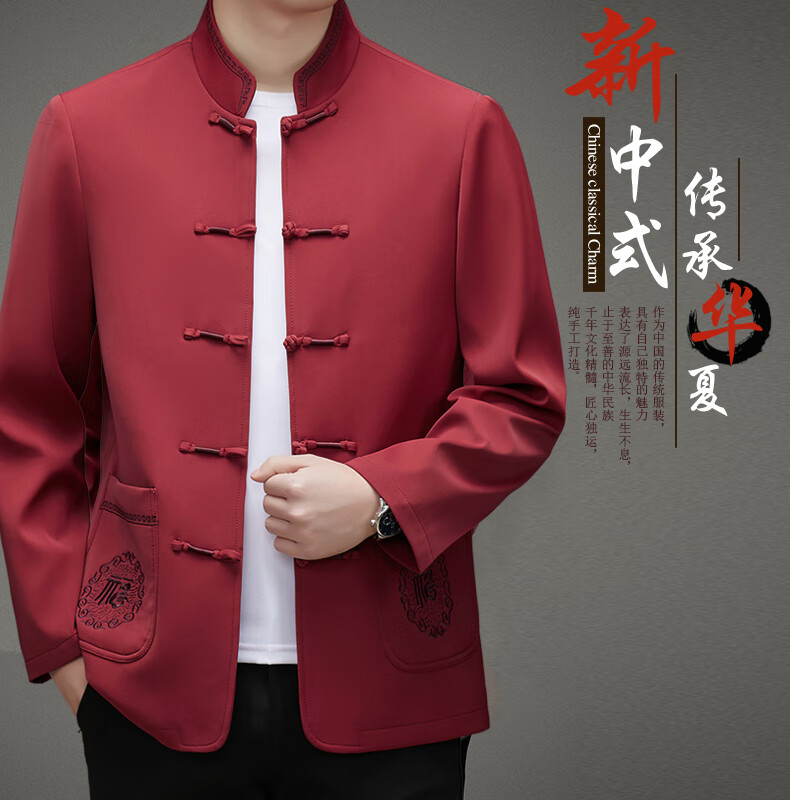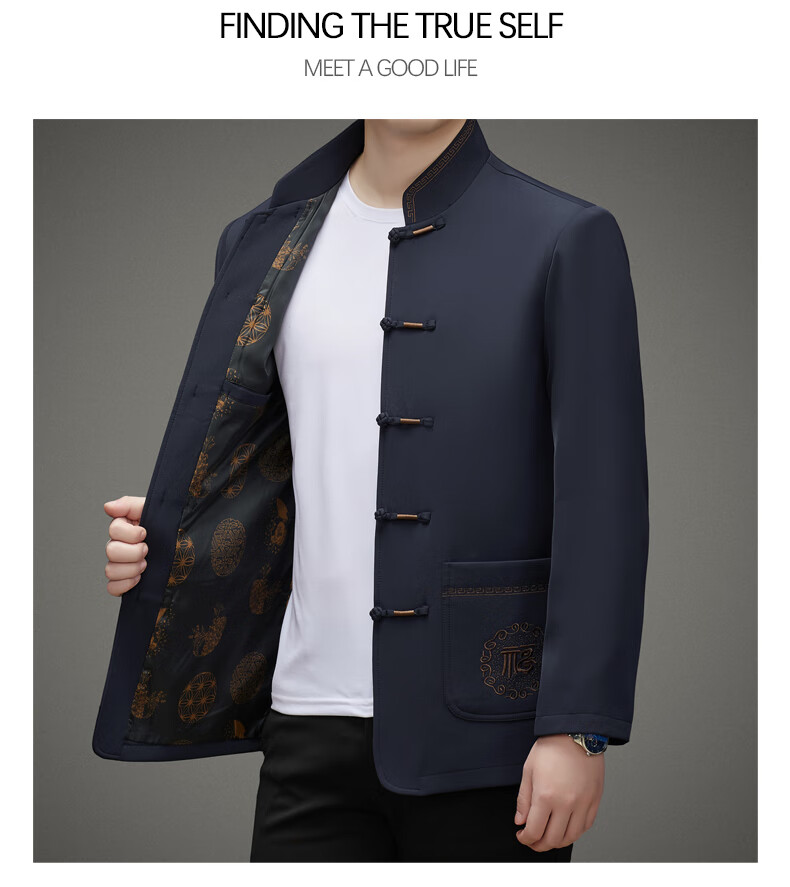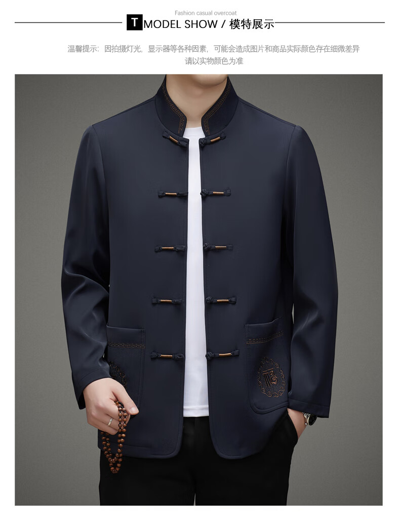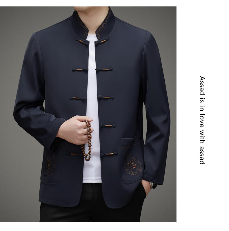Hengyuanxiang high-end middle-aged and elderly men's Tang suit men's spring and autumn new coat Chinese style dad's tunic suit elderly grandfather's top 5809 navy blue XL 180 recommended 135-155 Jin Jin equals 0.5 kg