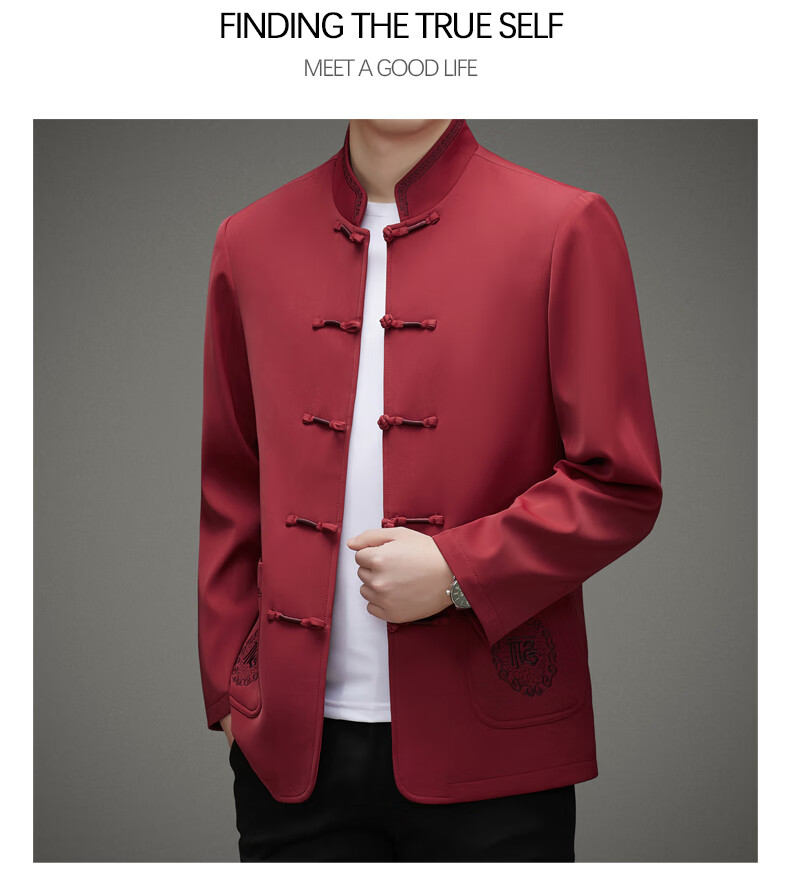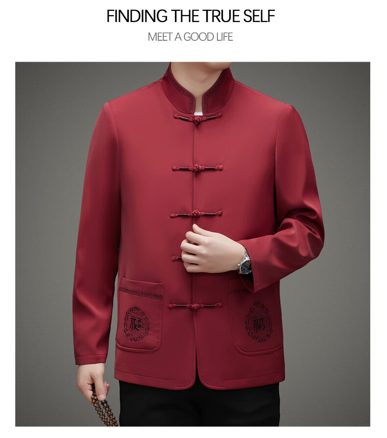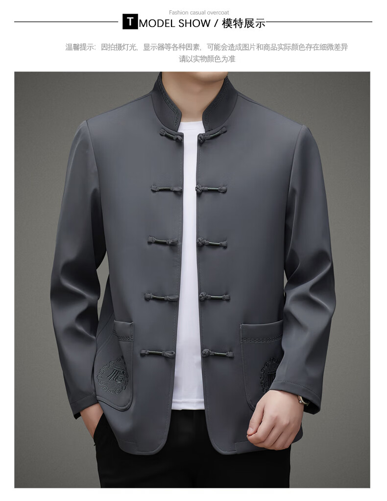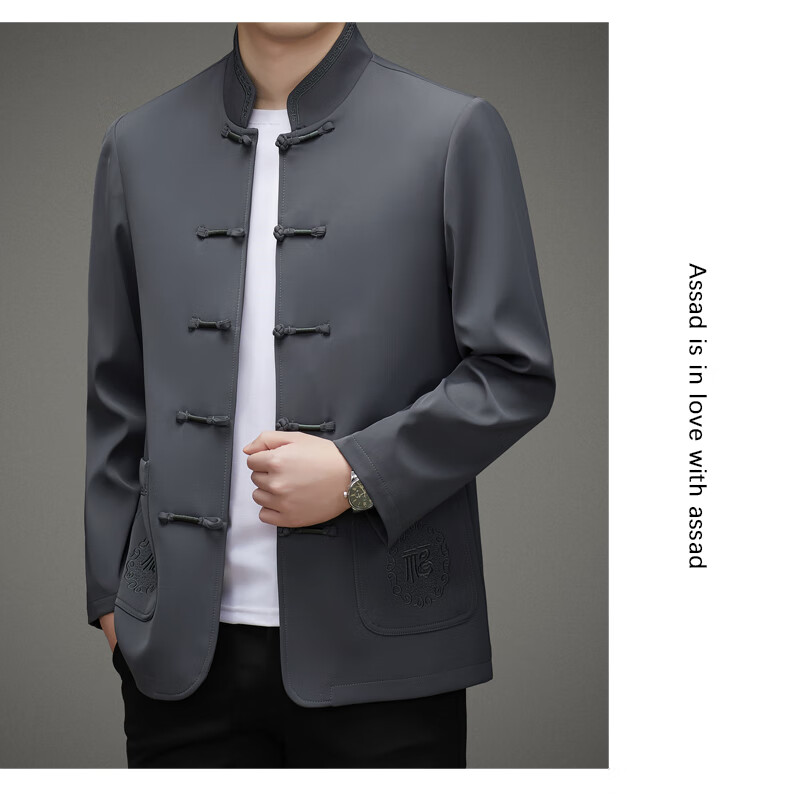 Hengyuanxiang high-end middle-aged and elderly men's Tang suit men's spring and autumn new coat Chinese style dad's tunic suit elderly grandfather's top 5809 navy blue XL 180 recommended 135-155 Jin Jin equals 0.5 kg