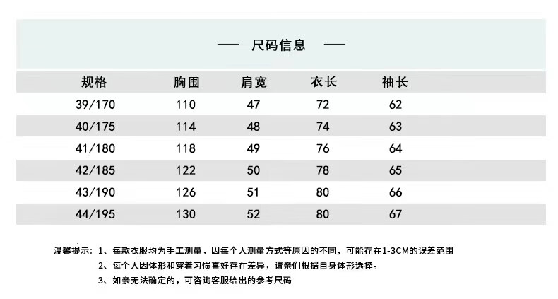 China (cm) 165 / 88-90 170 / 96-98 175 / 108-110 180 / 118-122 185 / 126-130