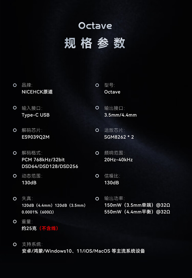 NICEHCK original Octave flagship portable decoding headphone amplifier small tail ES9039Q2M chip headphone amplifier titanium meteorite gray