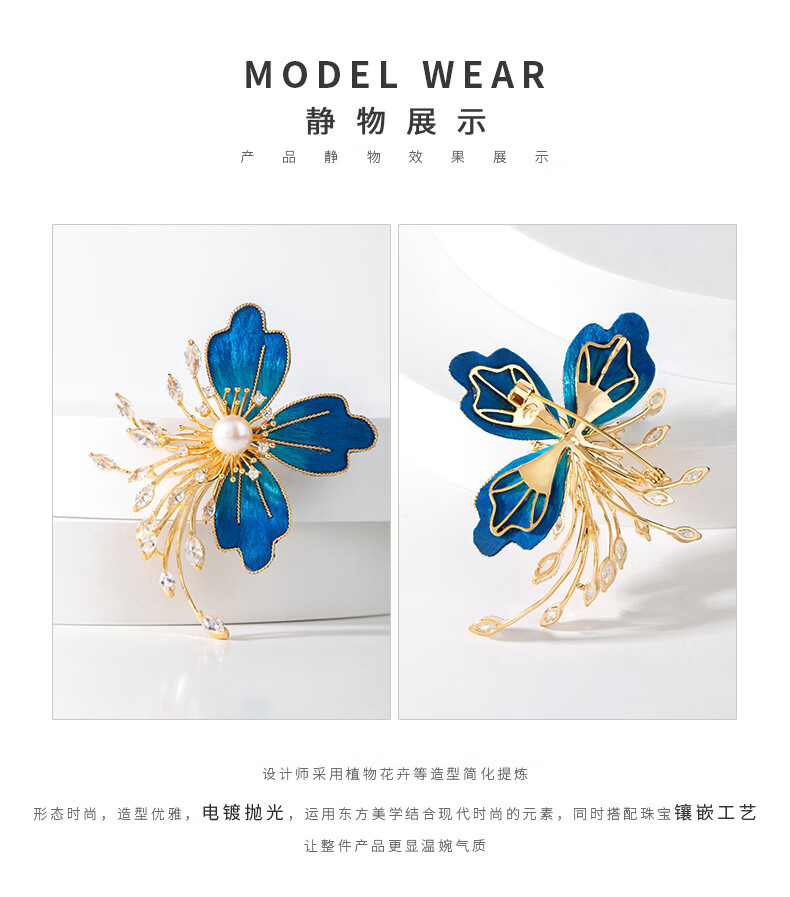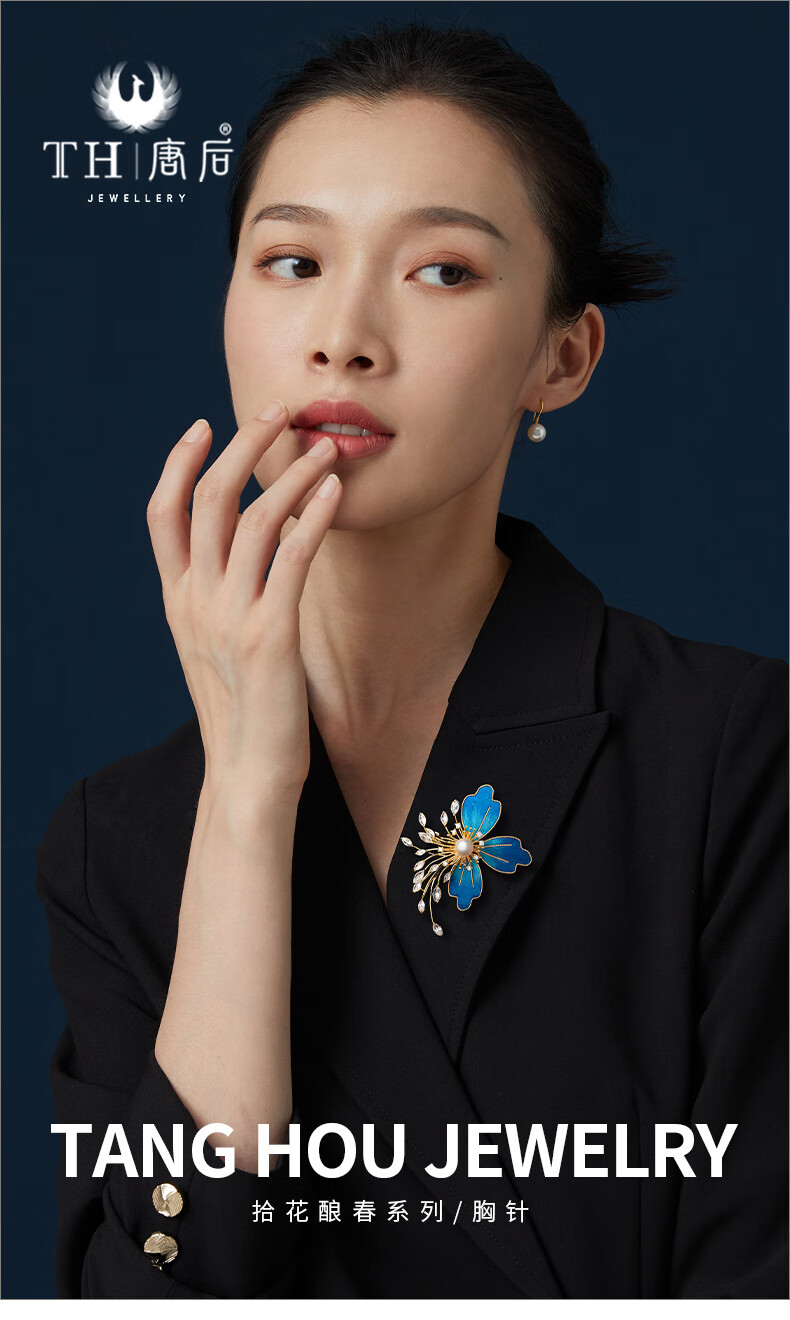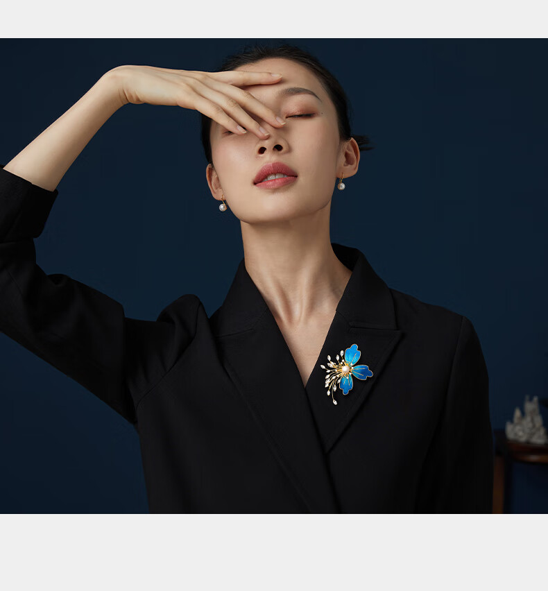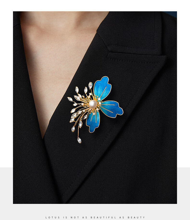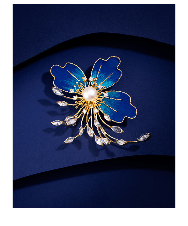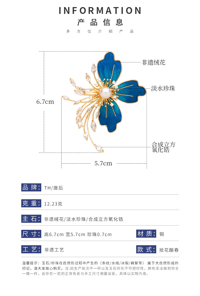 After the Tang Dynasty, pick up flowers and make spring brooch, high-end women's new Chinese style intangible velvet flower brooch, freshwater pearl pick up flowers and make spring