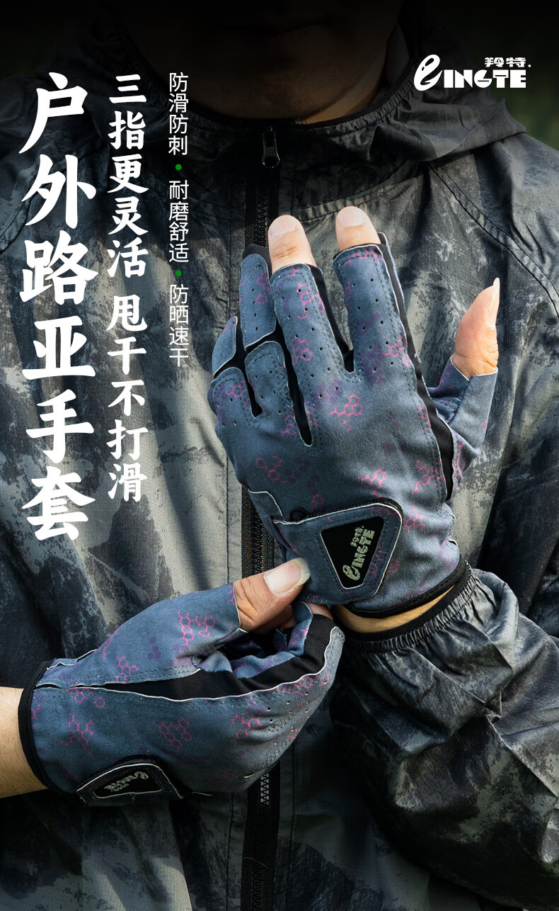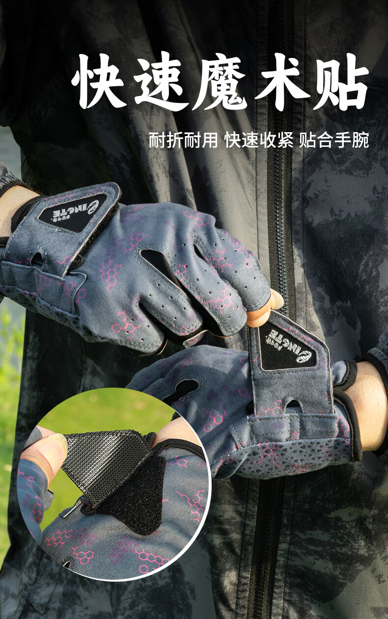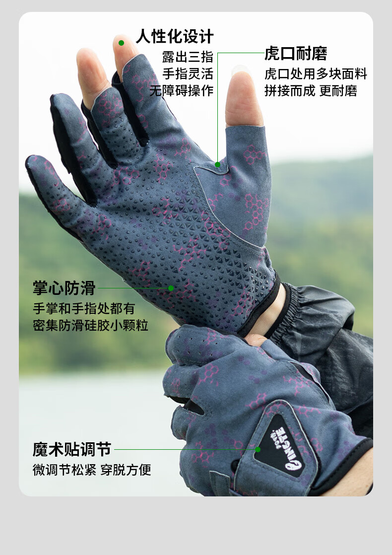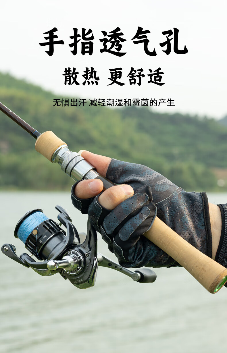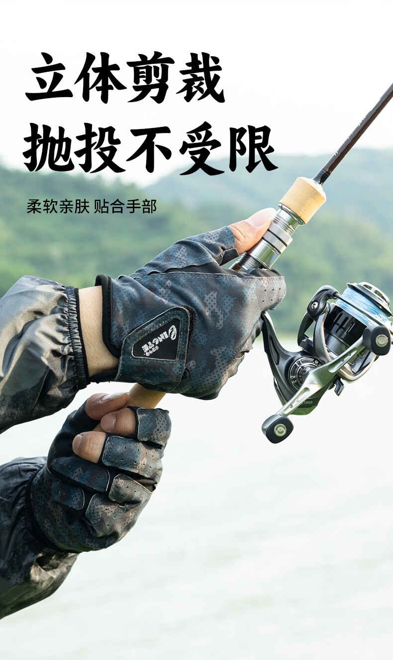 Summer fishing gloves for men and women, non-slip, sunproof, breathable, three-finger and half-finger, all-season special fishing gloves, camouflage black, Lure gloves size 2XL