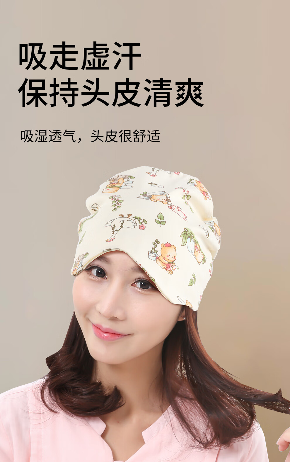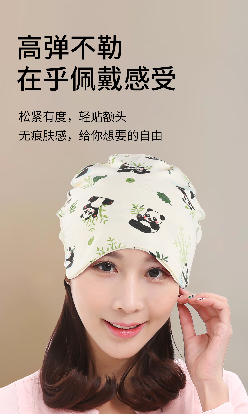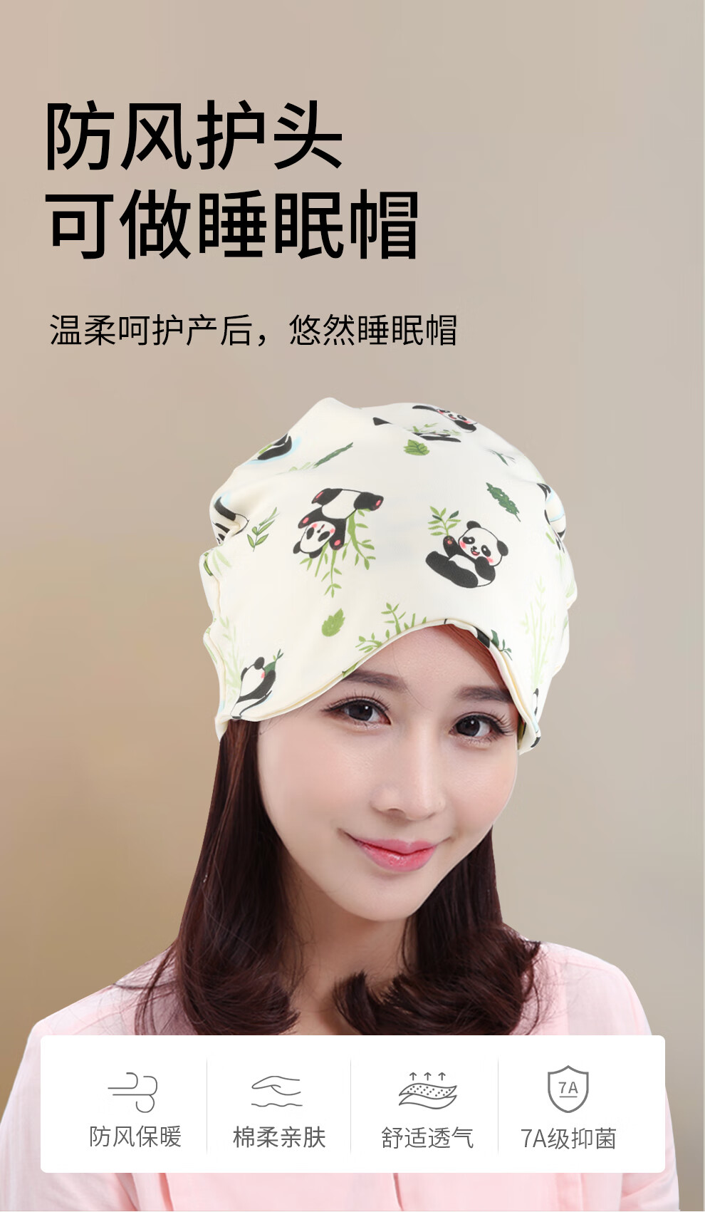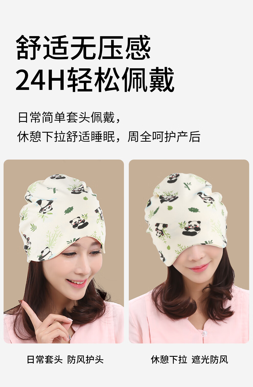 Mamaguo (org.mama) confinement hat, postpartum maternity hat, autumn and winter windproof, cute maternity headscarf, postpartum headband supplies, women's nightcap, Happy Panda (7A antibacterial)