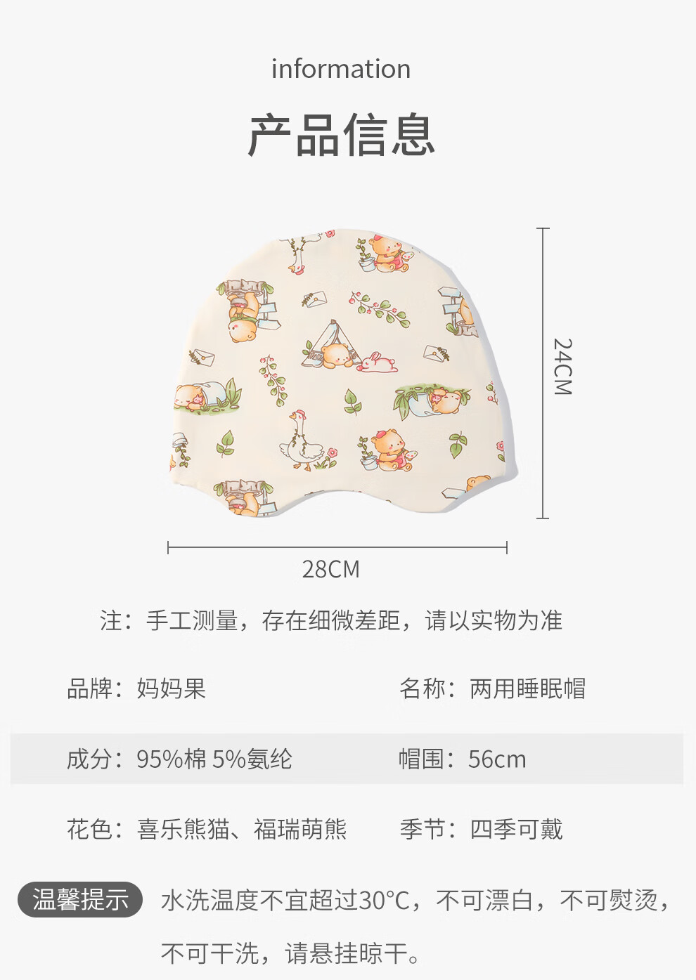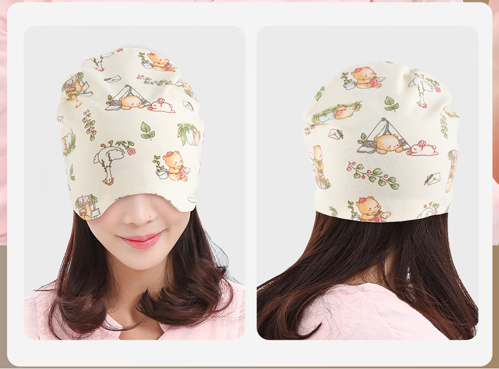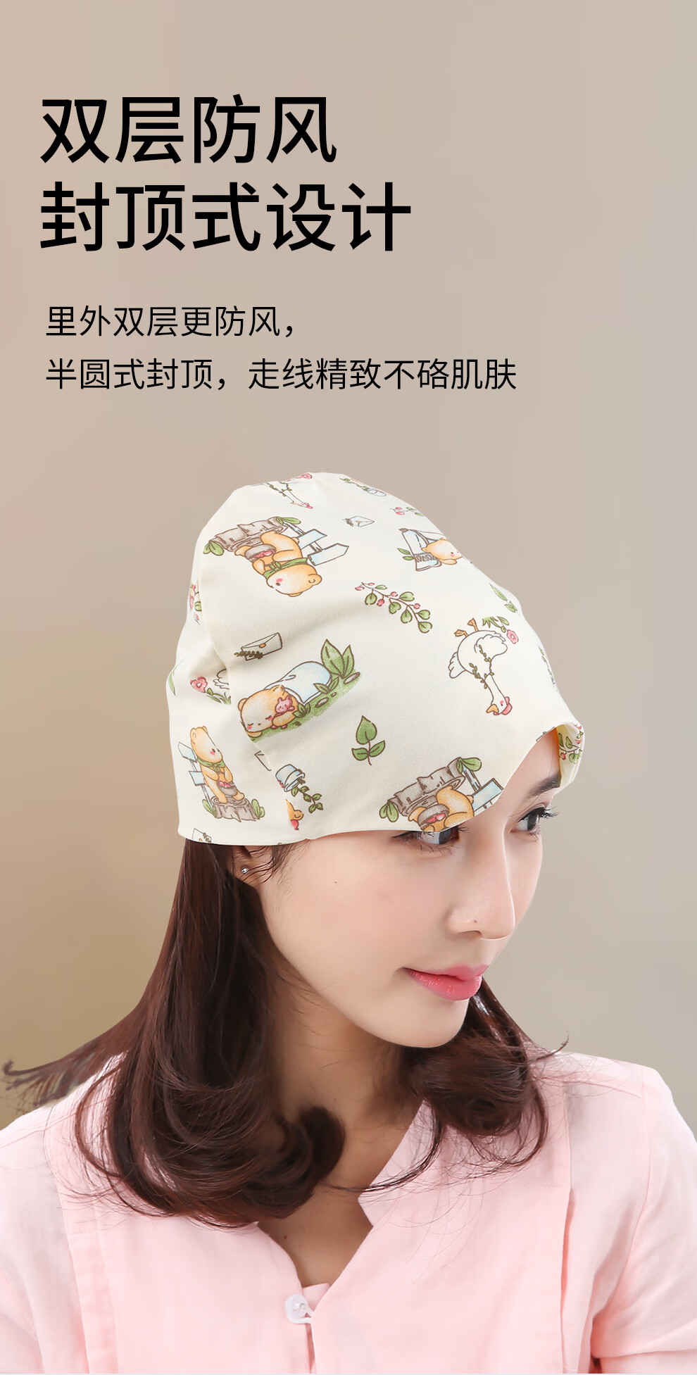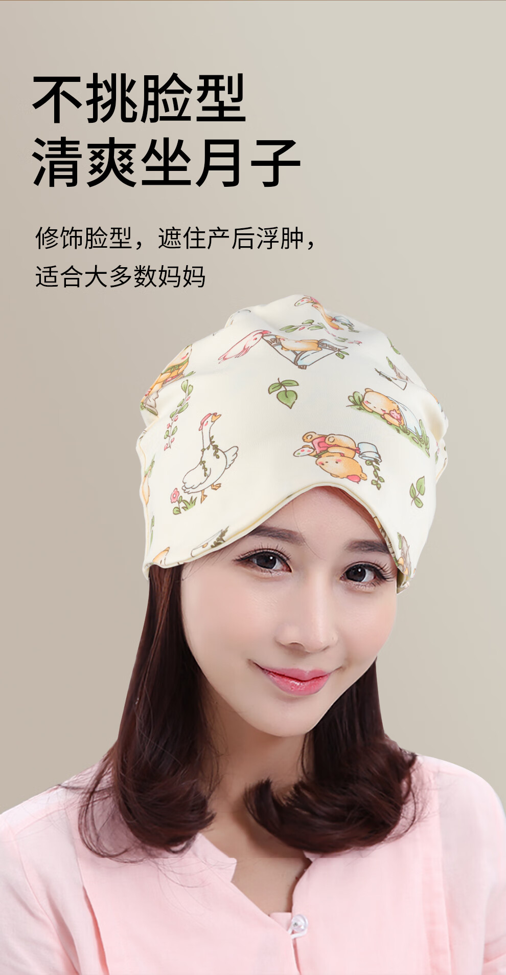 Mamaguo (org.mama) confinement hat, postpartum maternity hat, autumn and winter windproof, cute maternity headscarf, postpartum headband supplies, women's nightcap, Happy Panda (7A antibacterial)