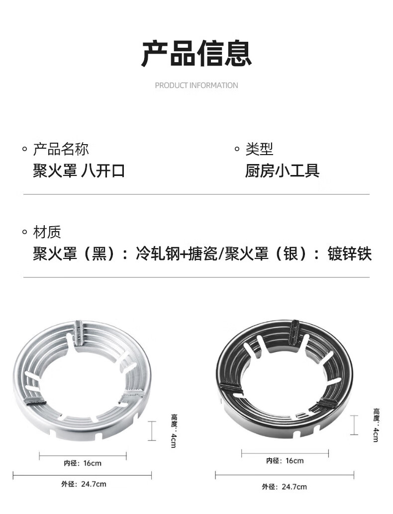 Mihong household gas stove fire cover windproof cover natural gas stove energy-saving cover universal anti-slip windshield gas stove accessories eight openings galvanized silver (280g)