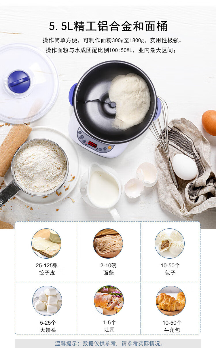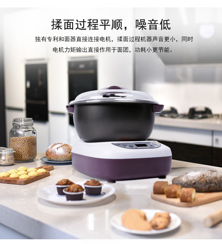 Yaoke Home Dough Mixer Fully Automatic Dough Maker Kneading Machine Dough Waker Intelligent Bread Machine Charming Purple 5.5L