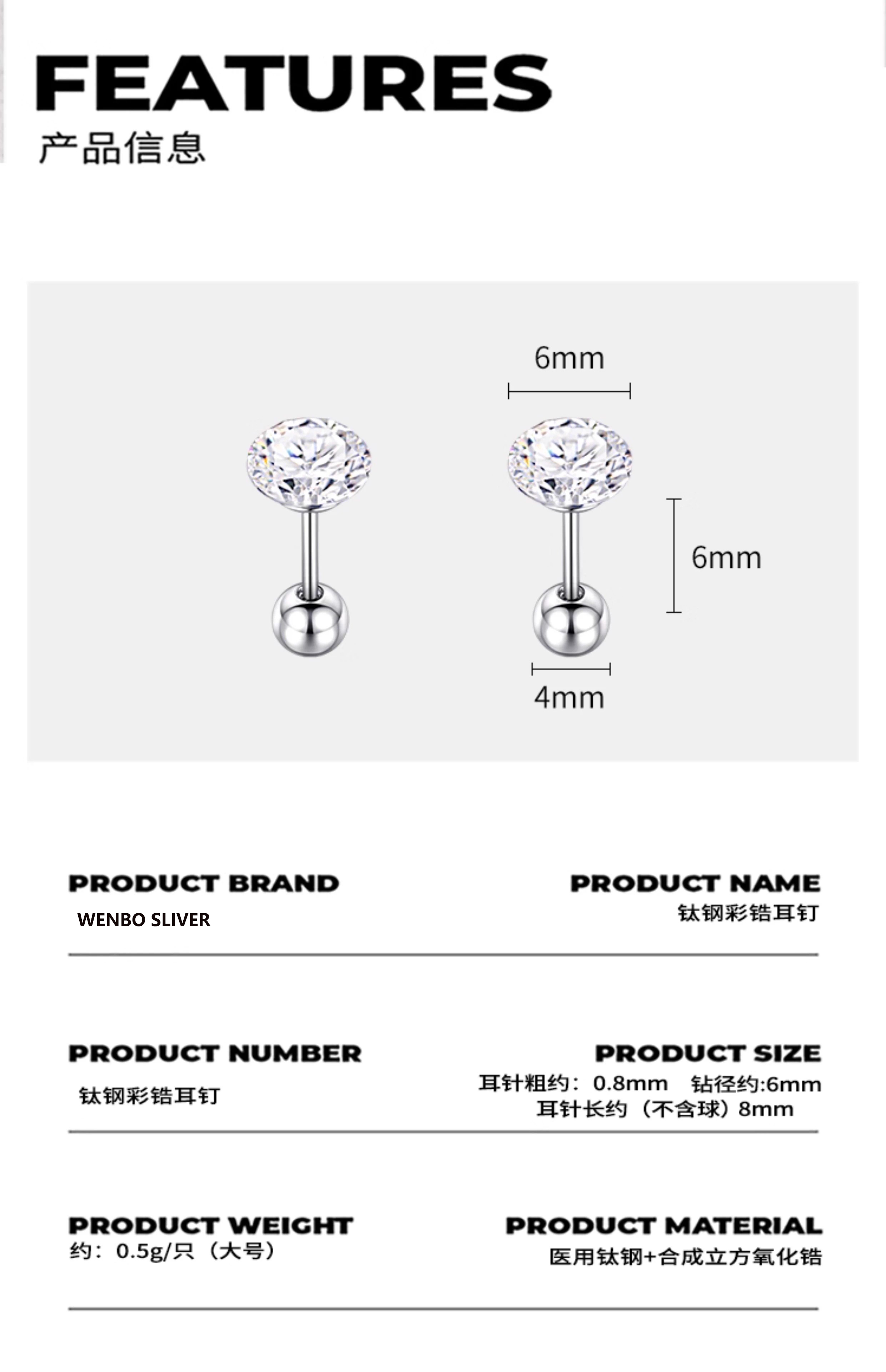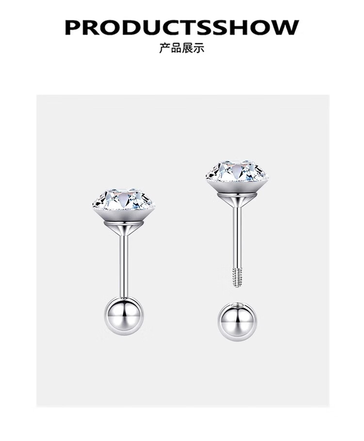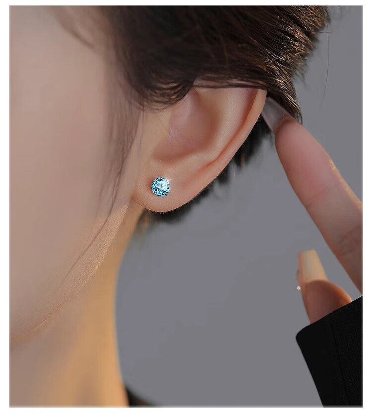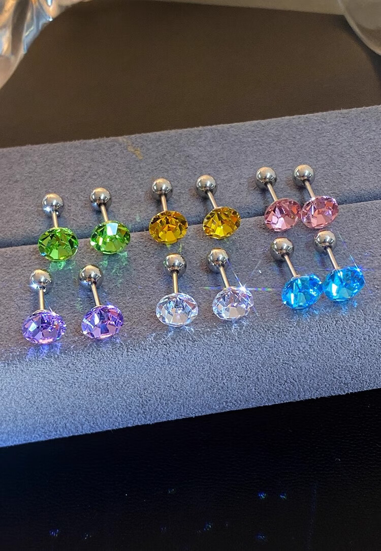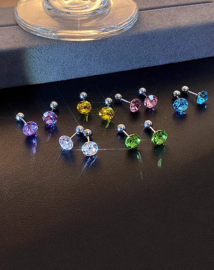 Ear piercing medical titanium steel earrings for women Explosive Diamond Huazi Screw Ear Bone Nails 2025 New Earrings Lake Blue Titanium Steel Earrings Rod Length 8MM