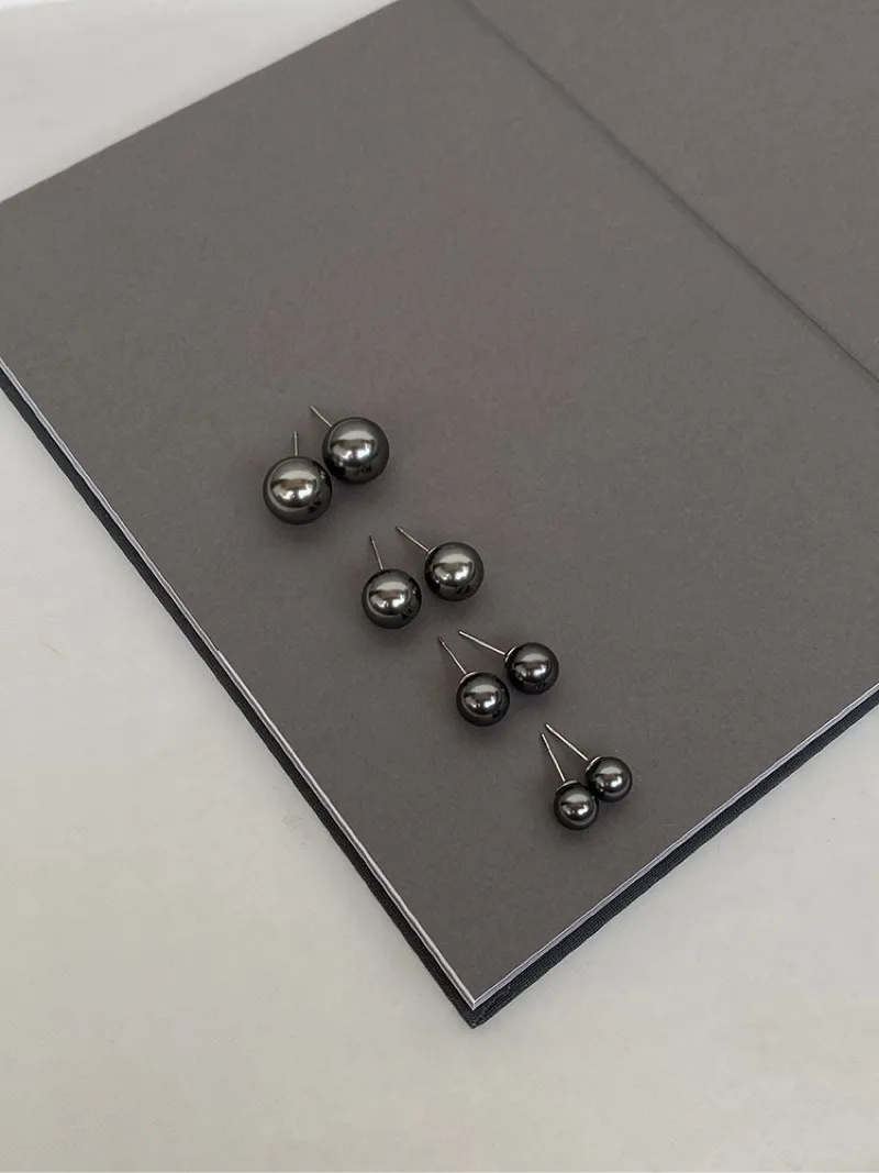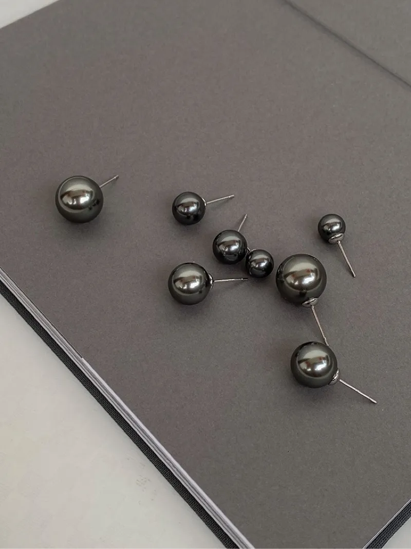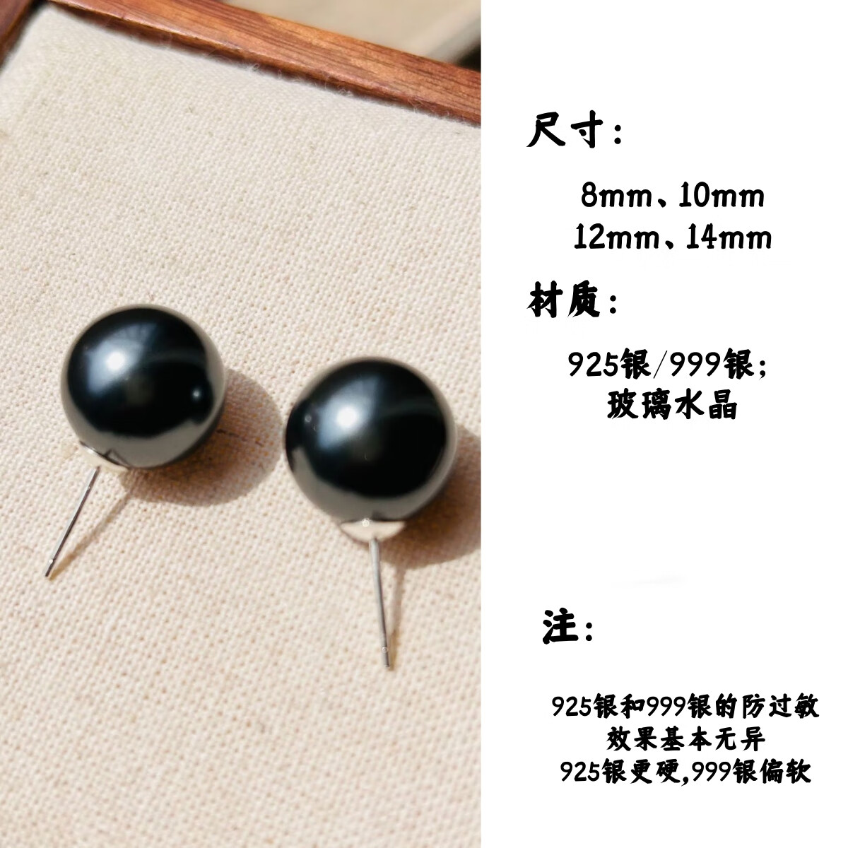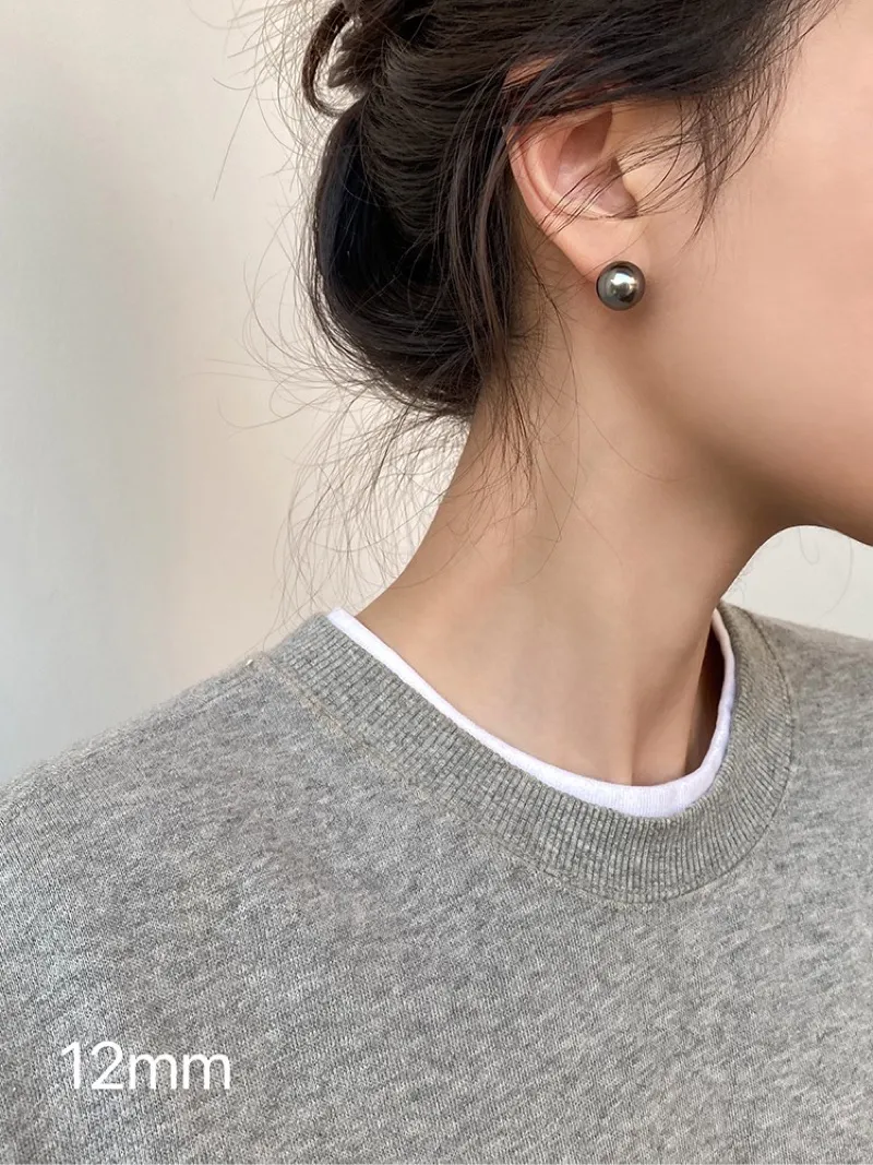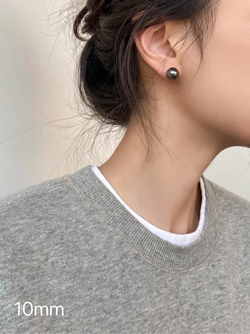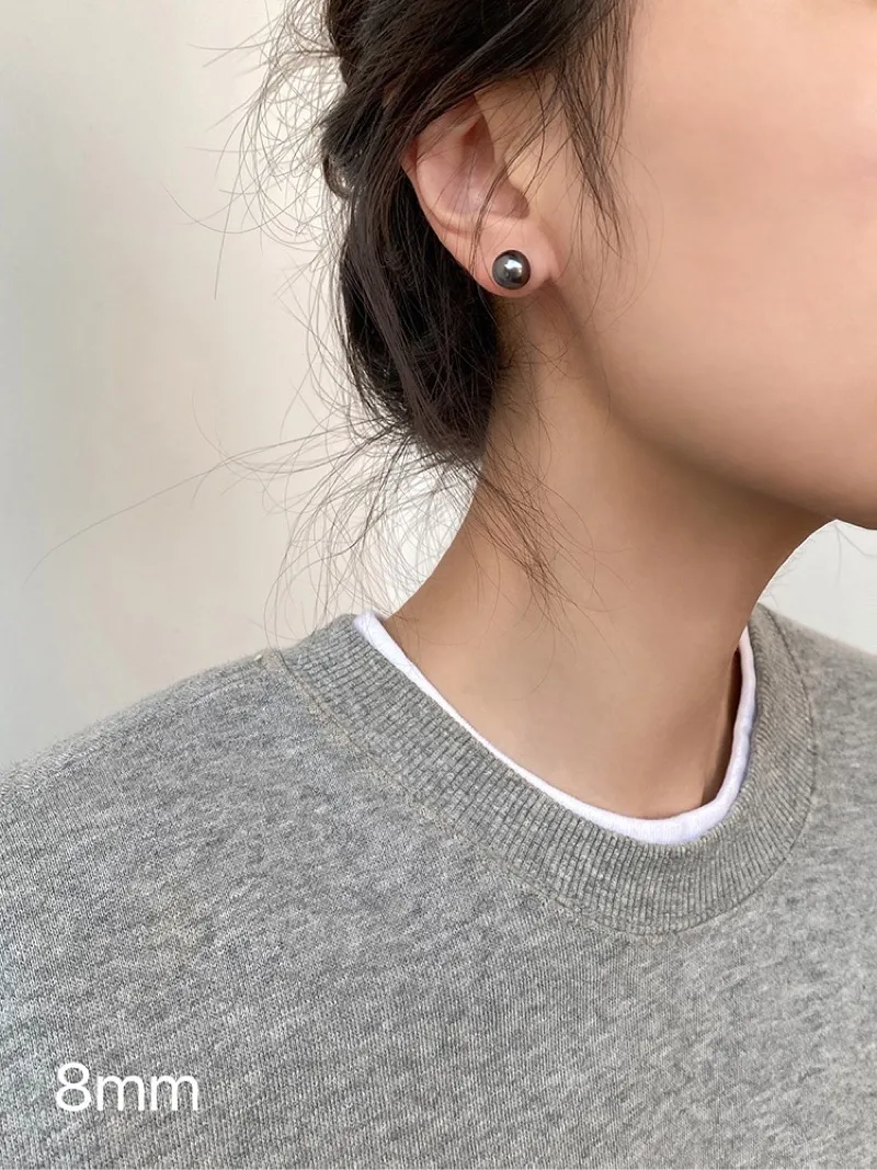 Tahitian black pearl earrings jewelry for women S999 silver needle Shijia round bright pearl earrings birthday gift Tahitian black 8mm pearls S999 sterling silver