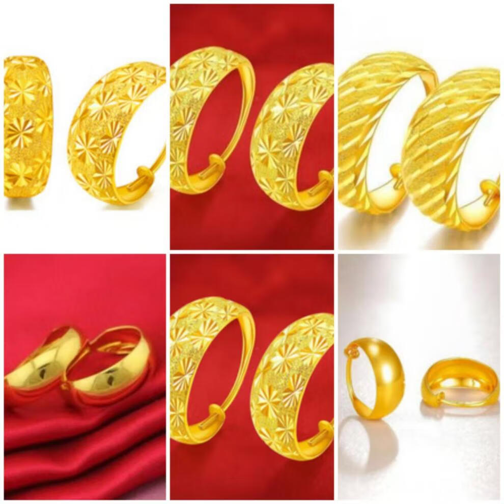 KZD Old Phoenix 999 real gold baby's breath carved earrings earrings brass real gold meteor shower round earrings earrings baby's breath