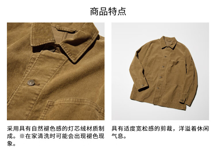 Uniqlo Men's and Women's Corduroy Jacket/Coat Jacket Casual 478249 34 Camel XL/180/108B