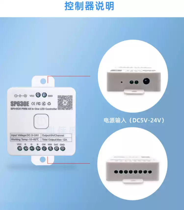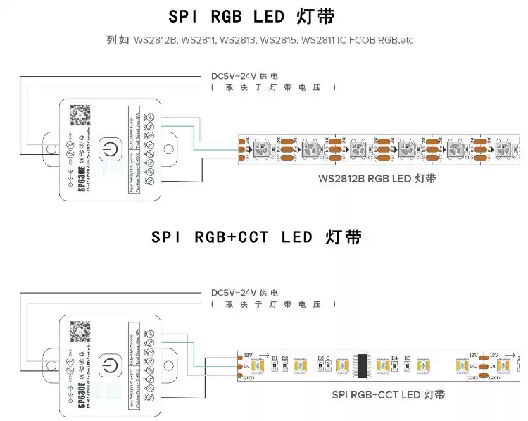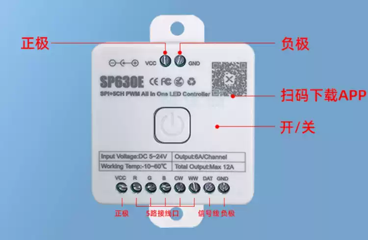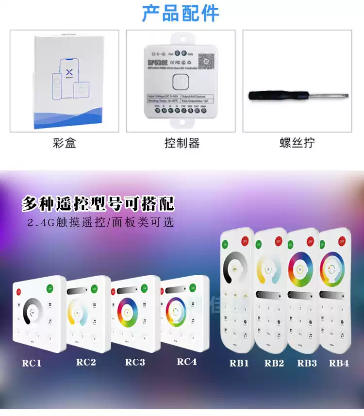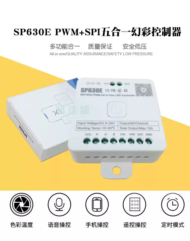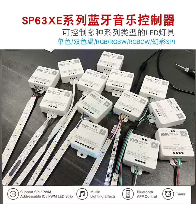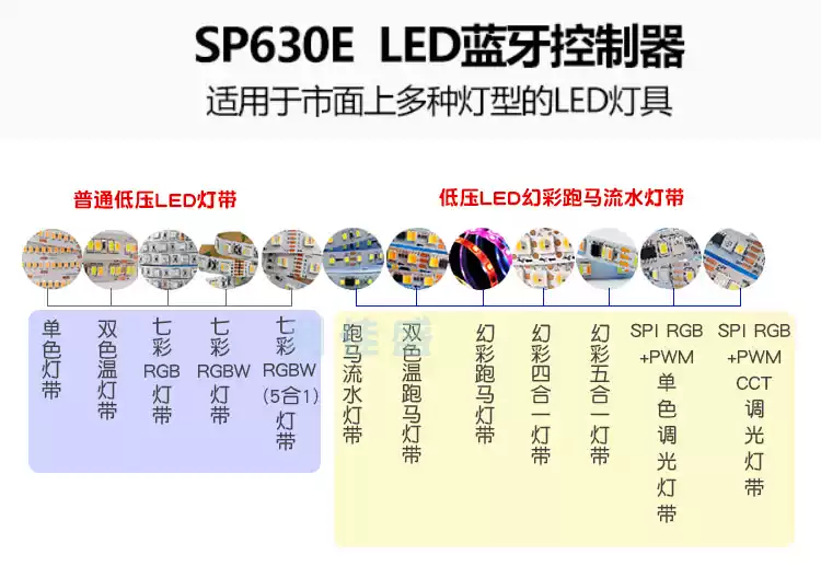 LED Bluetooth Music Rhythm Controller RGBCW Color Temperature CCT Symphony Monochrome Flowing Water Lamp with Dimmer SP630E12 All-in-one Bluetooth Controller All-purpose