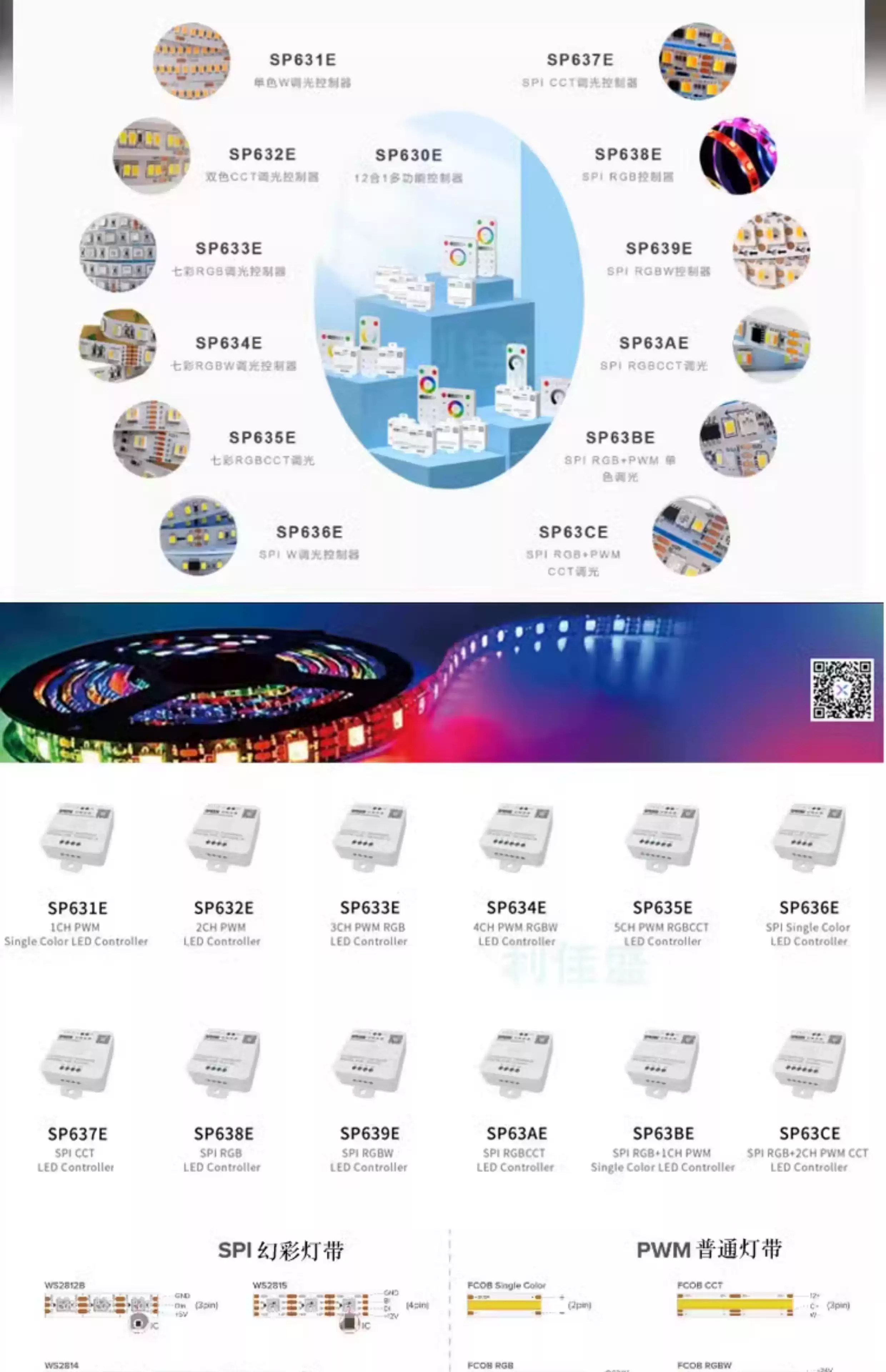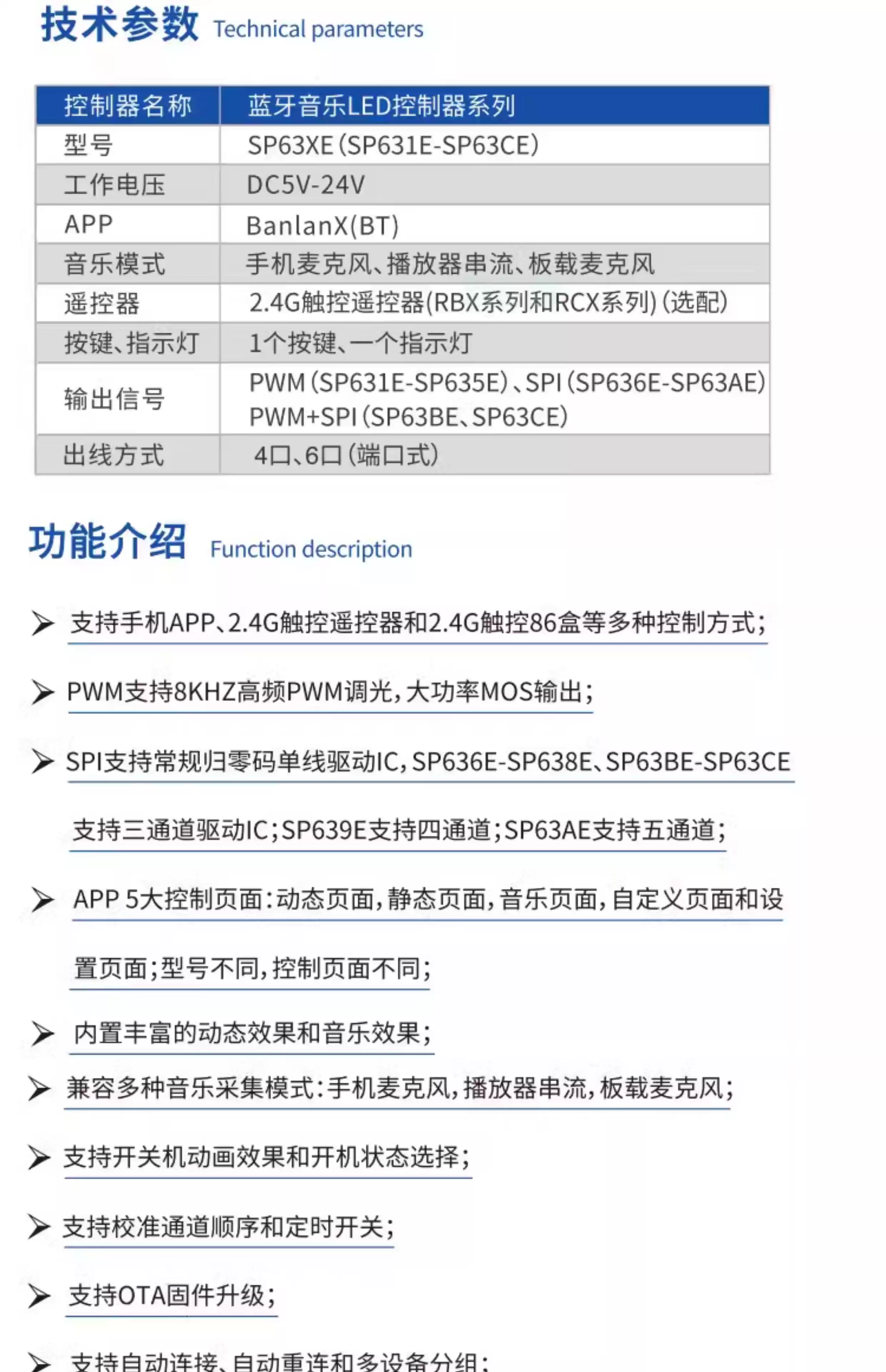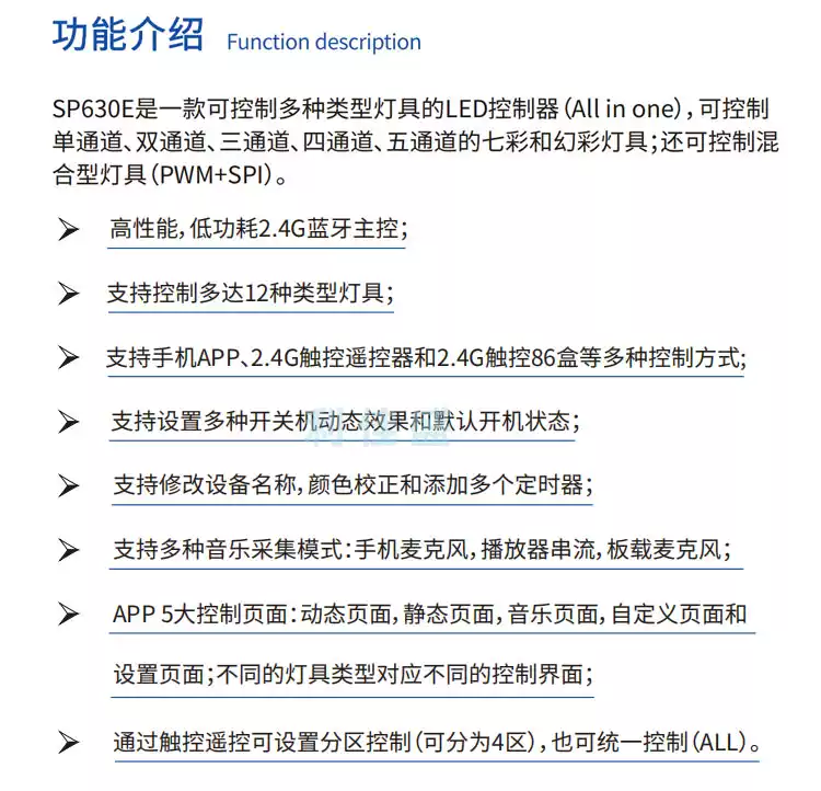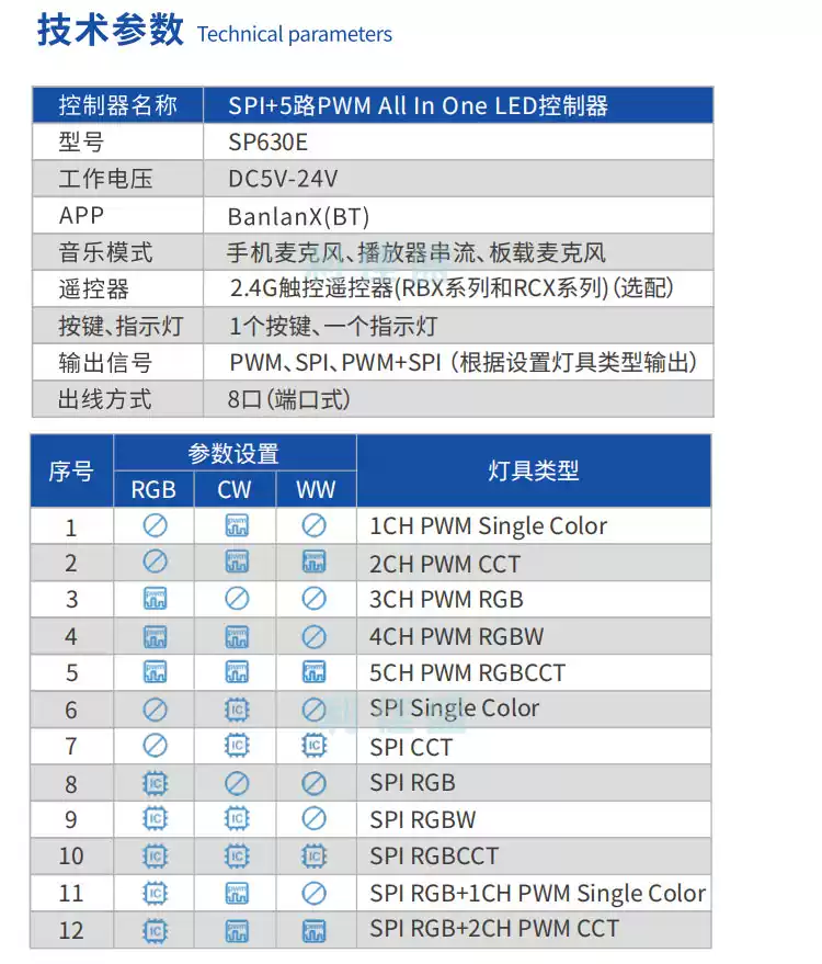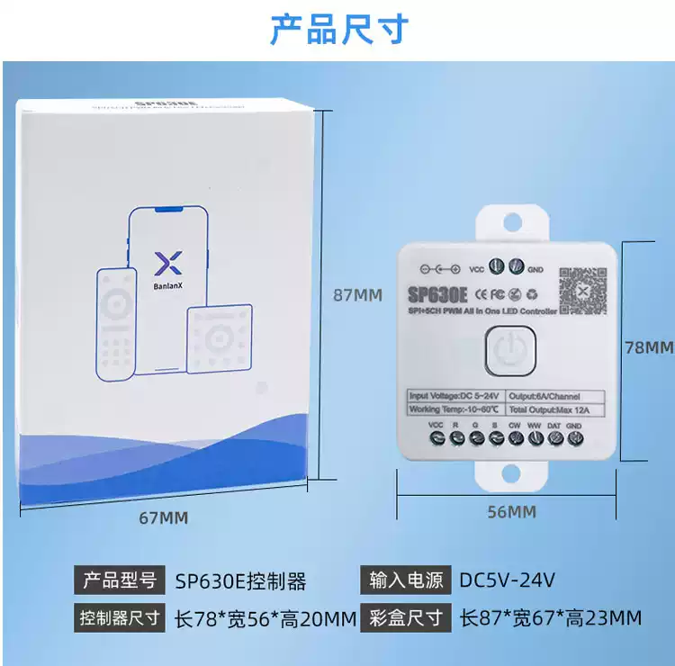 LED Bluetooth Music Rhythm Controller RGBCW Color Temperature CCT Symphony Monochrome Flowing Water Lamp with Dimmer SP630E12 All-in-one Bluetooth Controller All-purpose