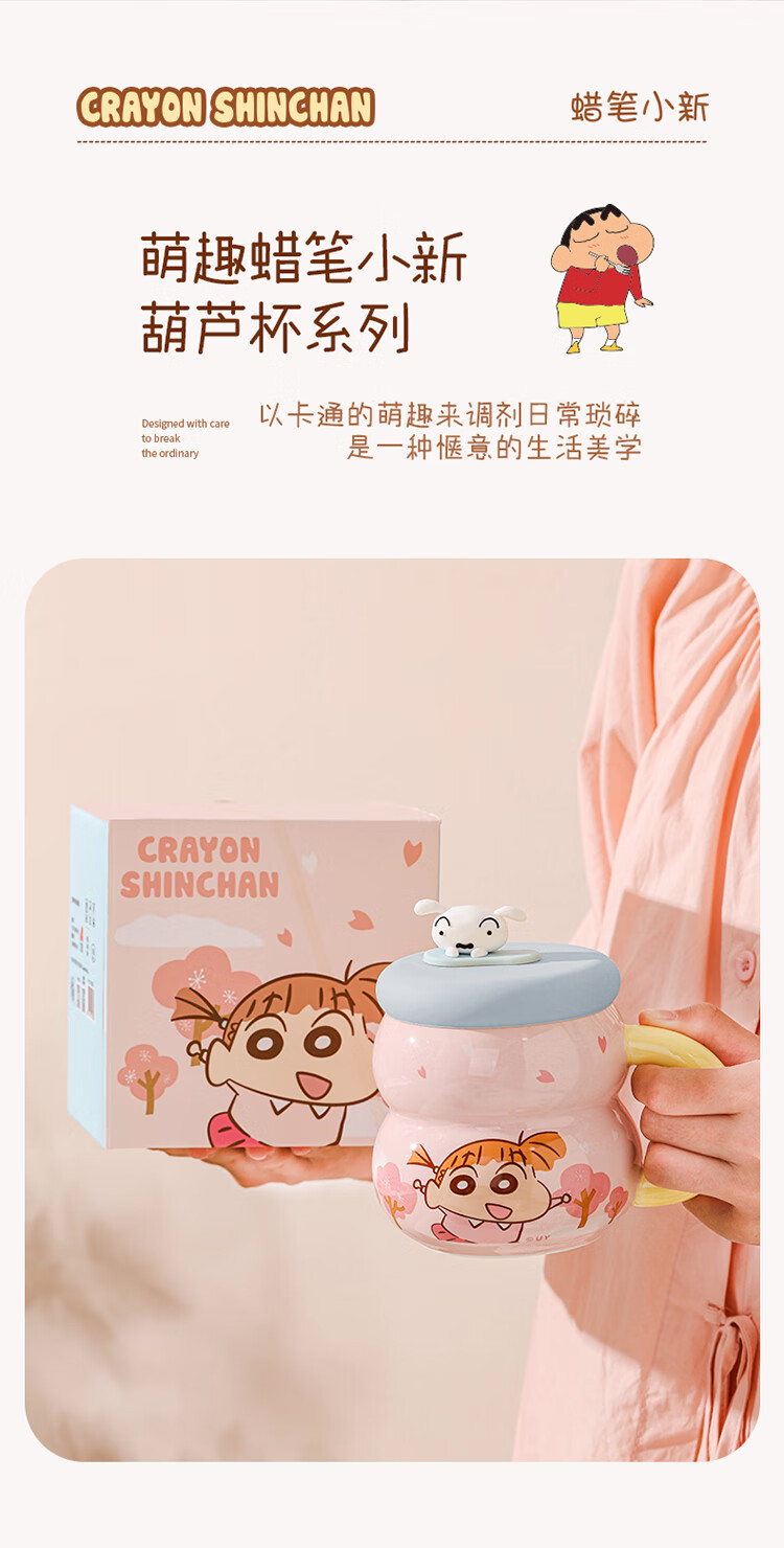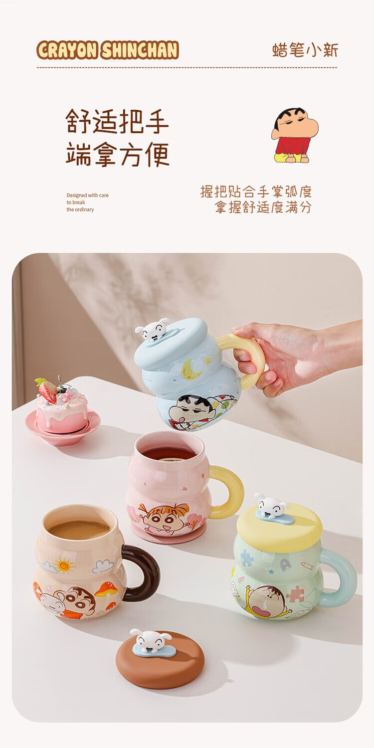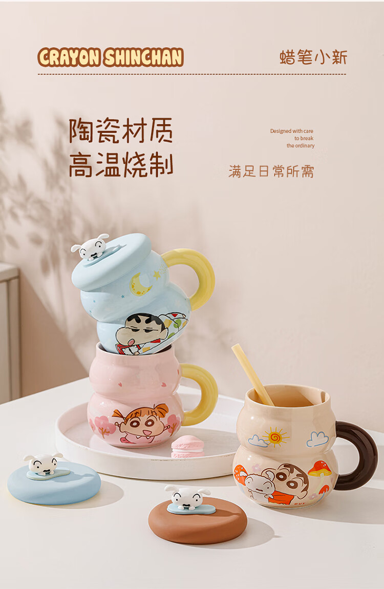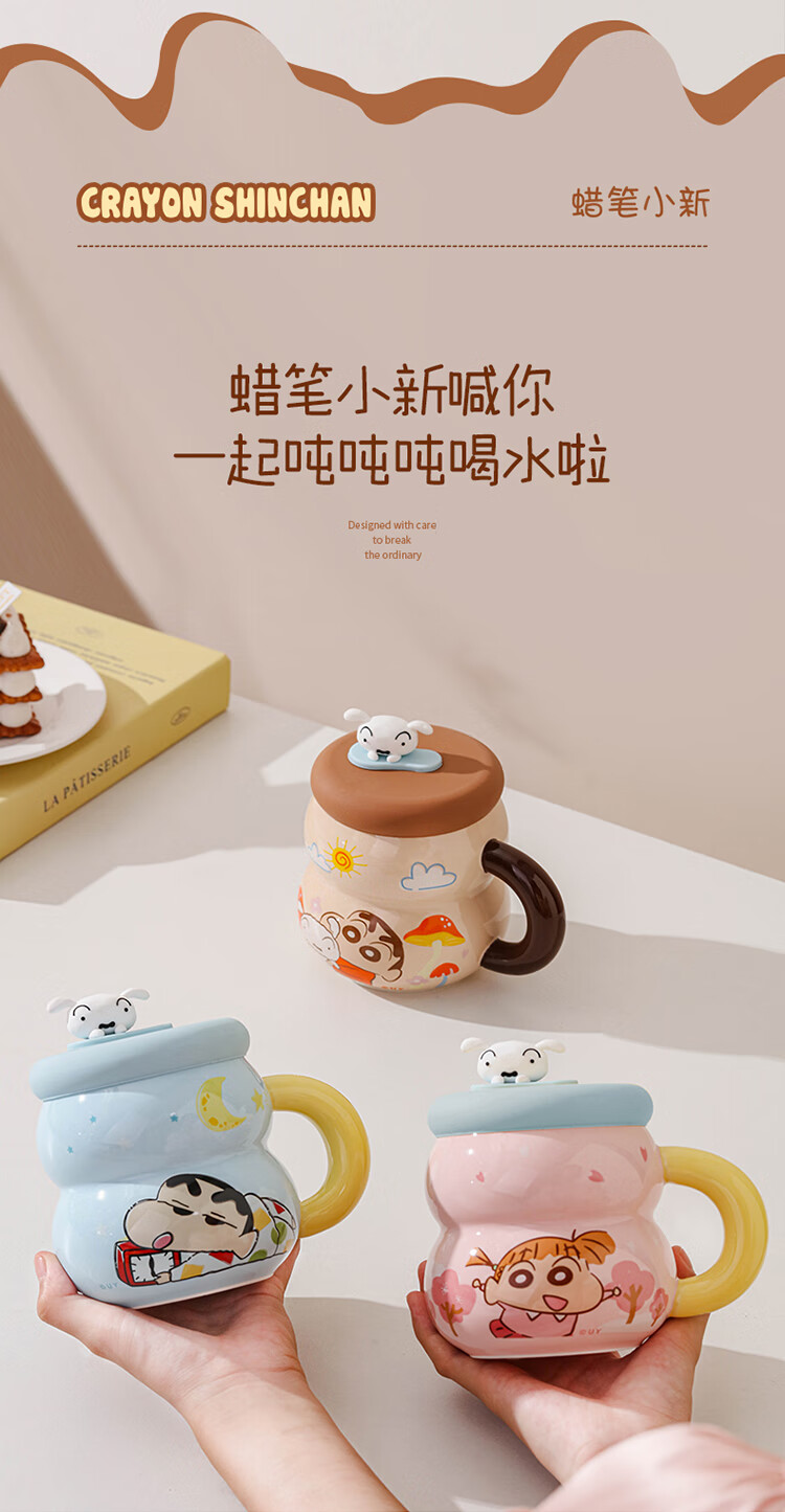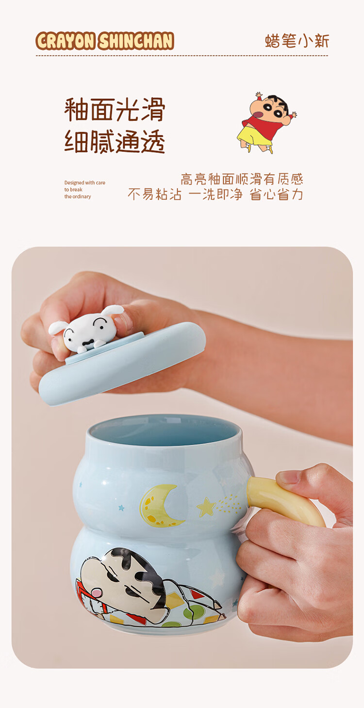 Crayon Shin-chan Ceramic Cup with Lid Color Boxed Mug Gift High-Looking Coffee Cup Cute Souvenir Water Cup Crayon Shin-chan Colored Boxed Gourd Cup with Lid - Blue