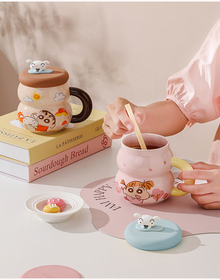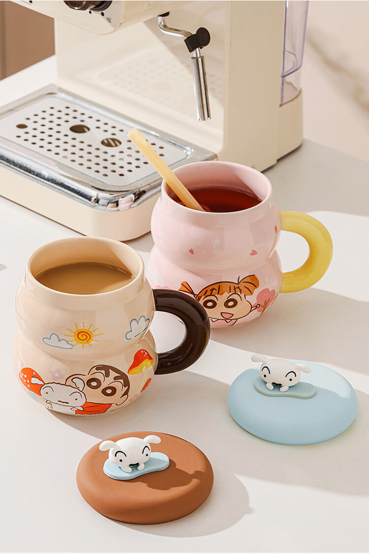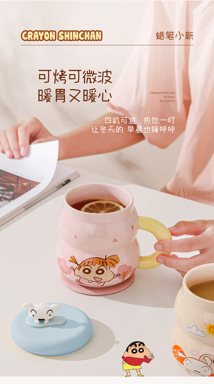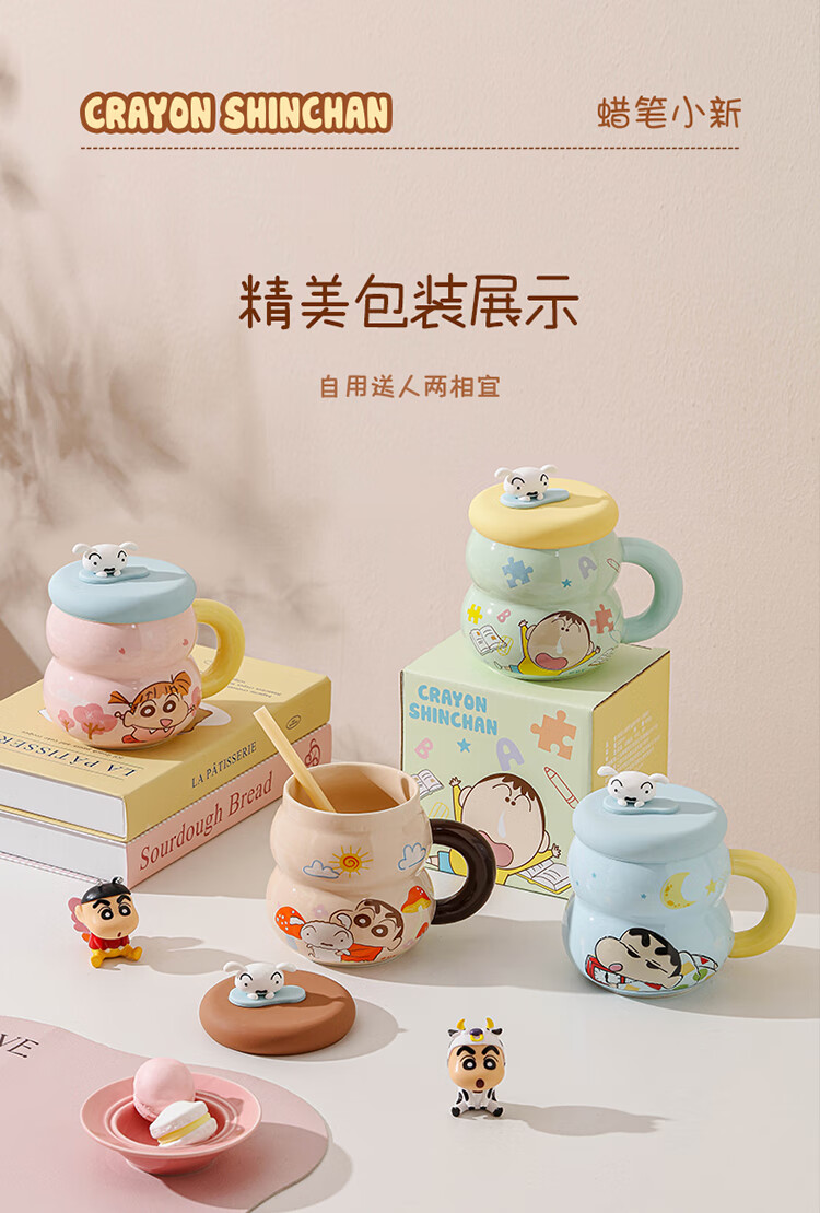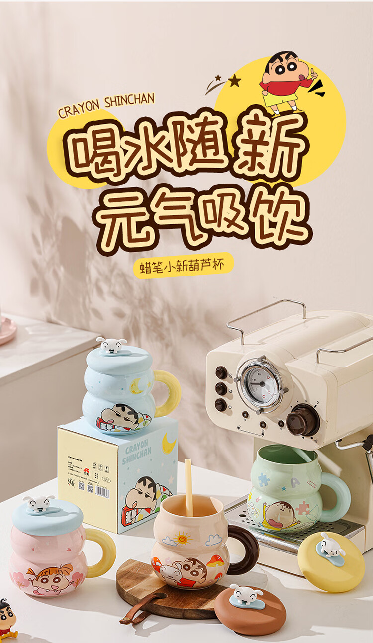 Crayon Shin-chan Ceramic Cup with Lid Color Boxed Mug Gift High-Looking Coffee Cup Cute Souvenir Water Cup Crayon Shin-chan Colored Boxed Gourd Cup with Lid - Blue