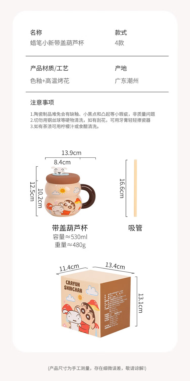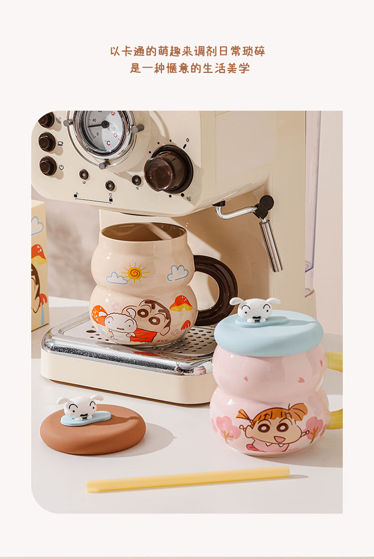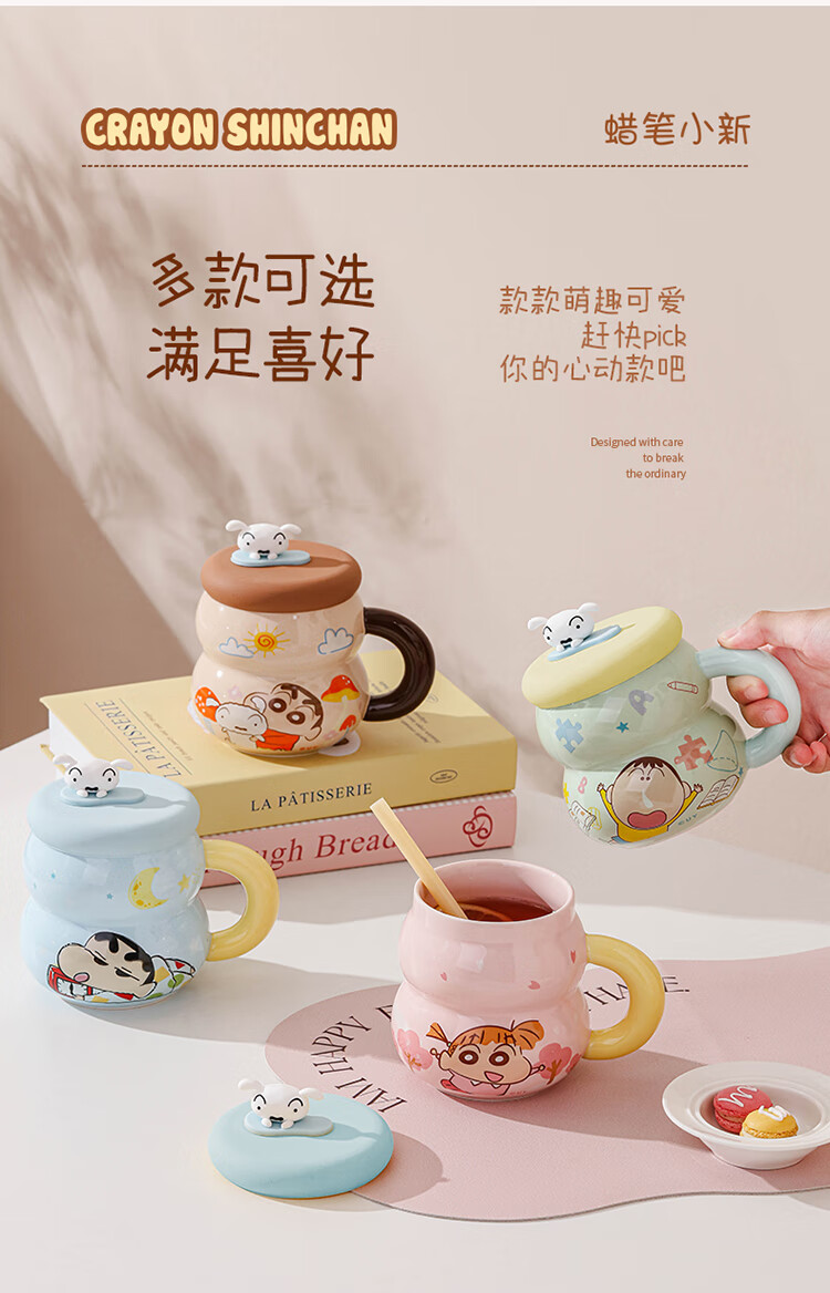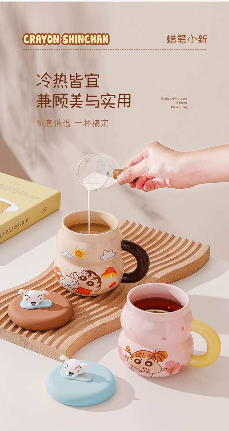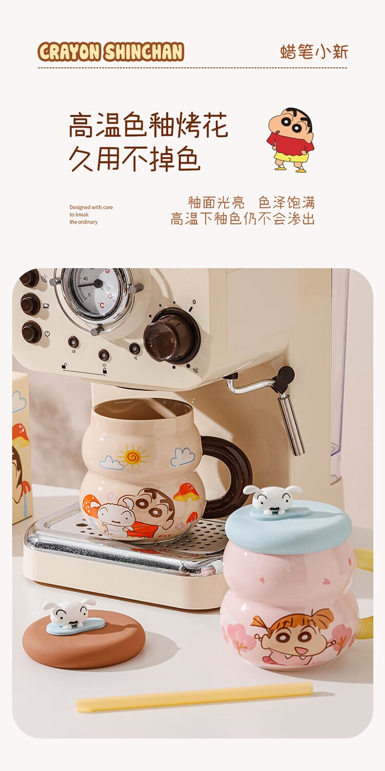 Crayon Shin-chan Ceramic Cup with Lid Color Boxed Mug Gift High-Looking Coffee Cup Cute Souvenir Water Cup Crayon Shin-chan Colored Boxed Gourd Cup with Lid - Blue