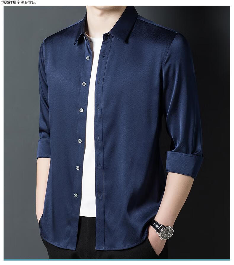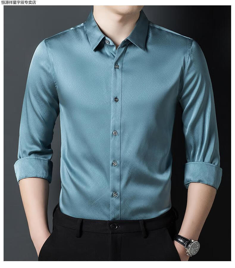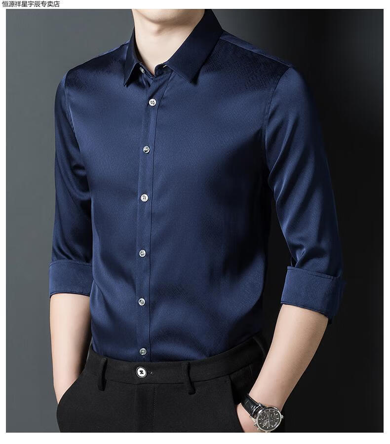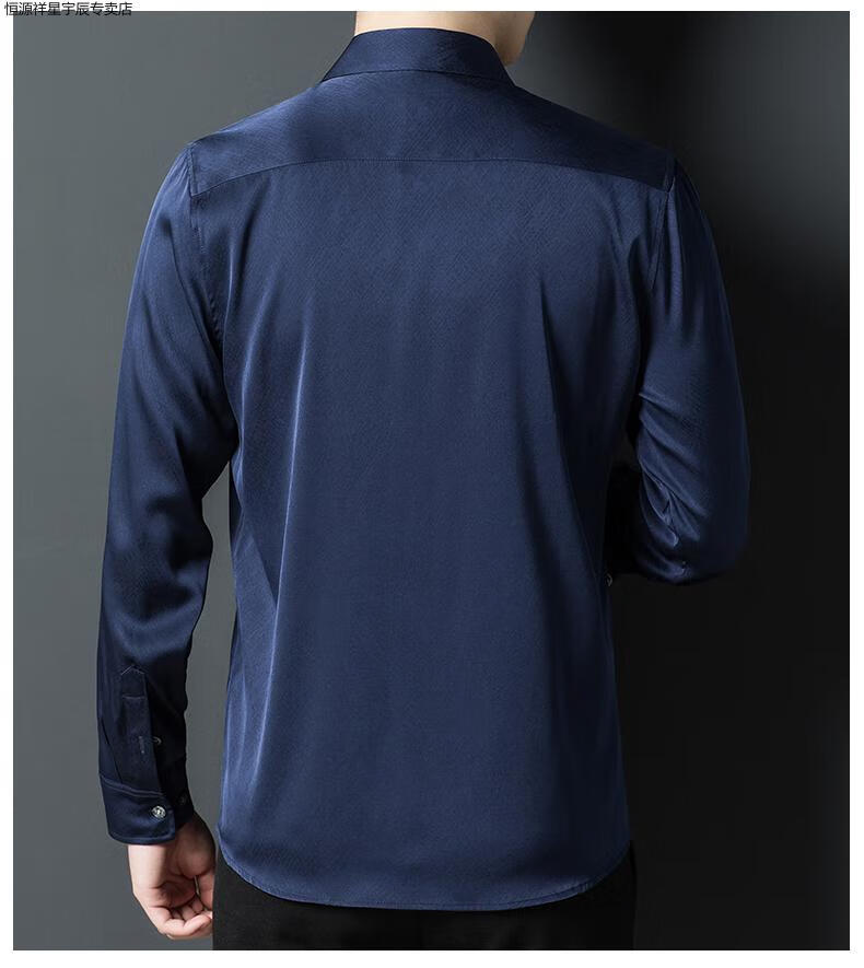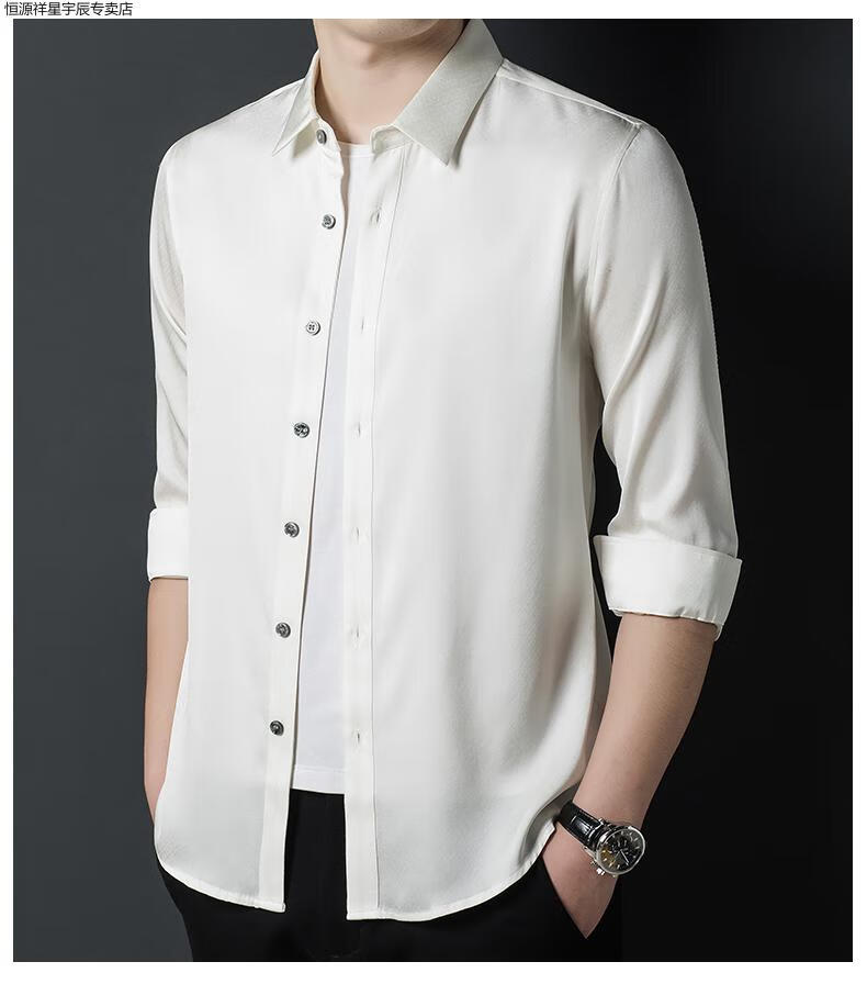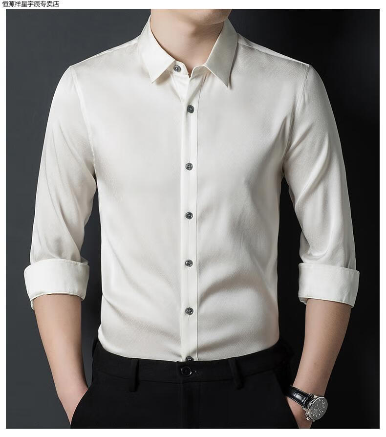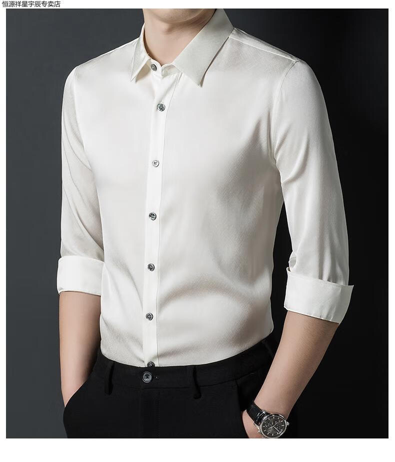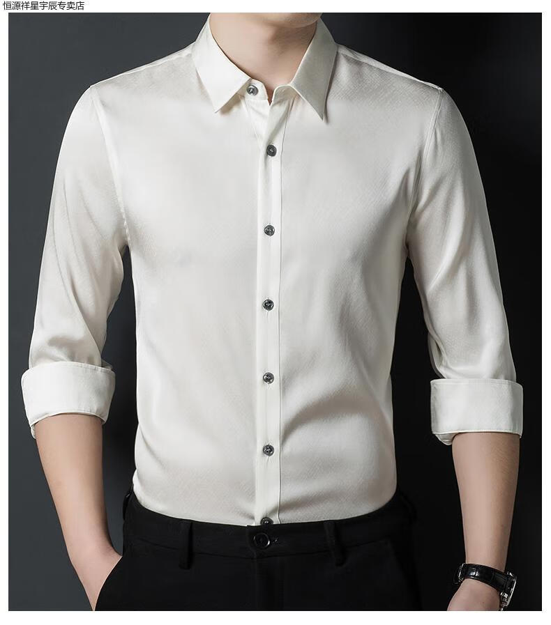 Hengyuanxiang silk long-sleeved shirt men's heavyweight double Qiao dark pattern jacquard high-end mulberry silk business casual dad shirt white M 165 suitable for 95-120 Jin Jin equals 0.5 kg