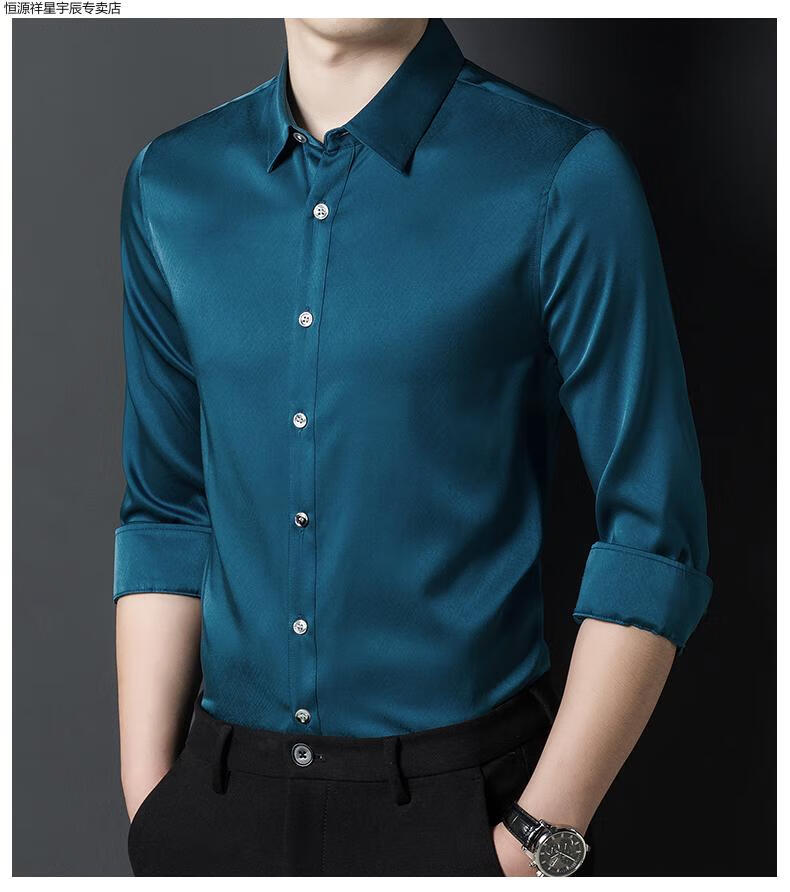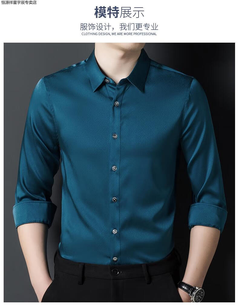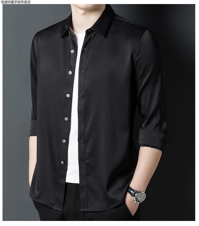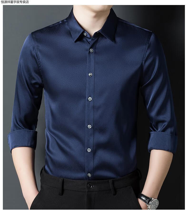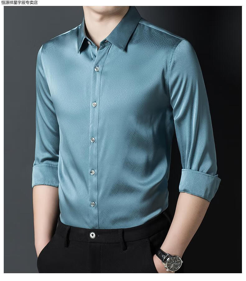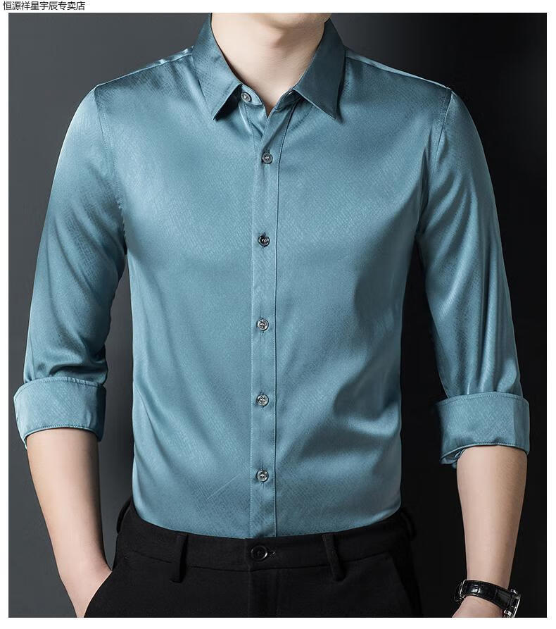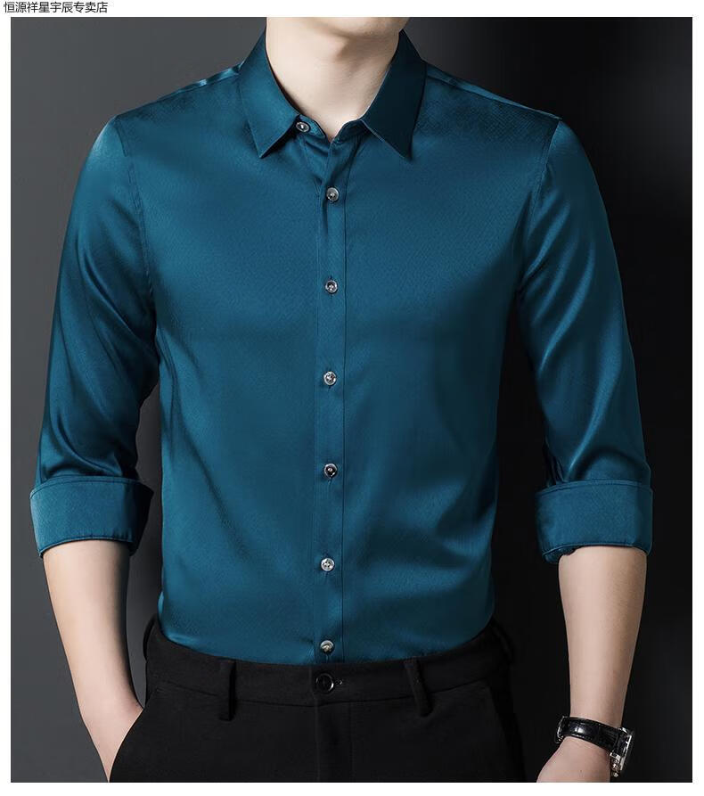 Hengyuanxiang silk long-sleeved shirt men's heavyweight double Qiao dark pattern jacquard high-end mulberry silk business casual dad shirt white M 165 suitable for 95-120 Jin Jin equals 0.5 kg