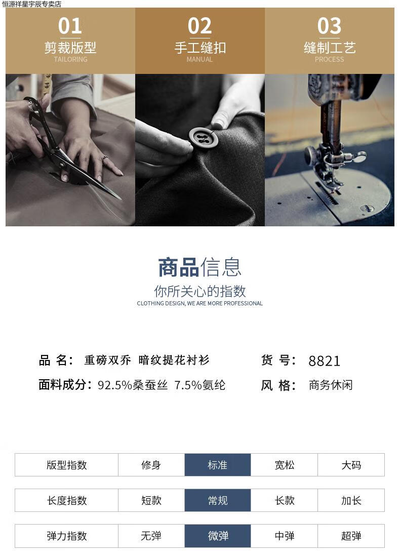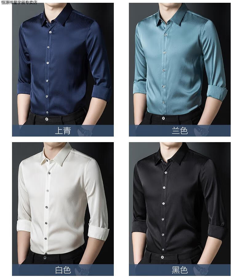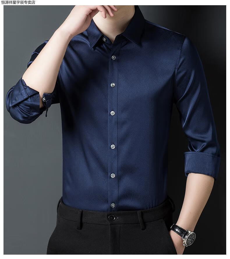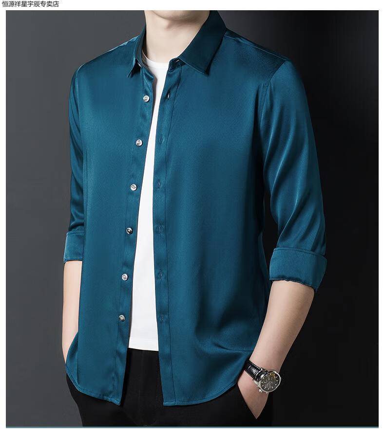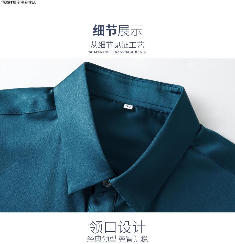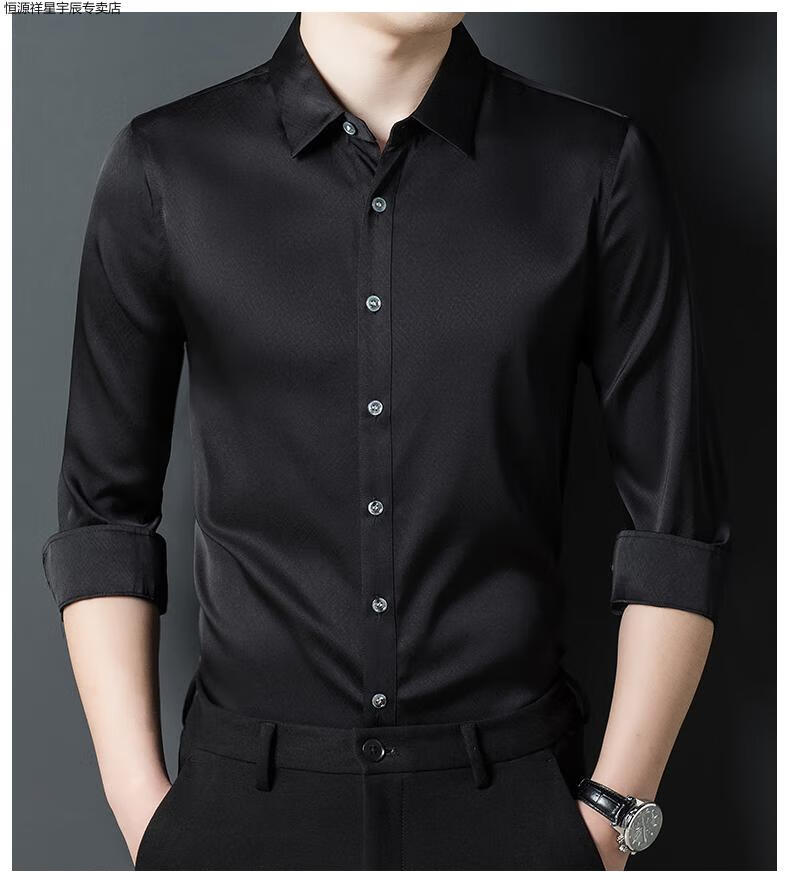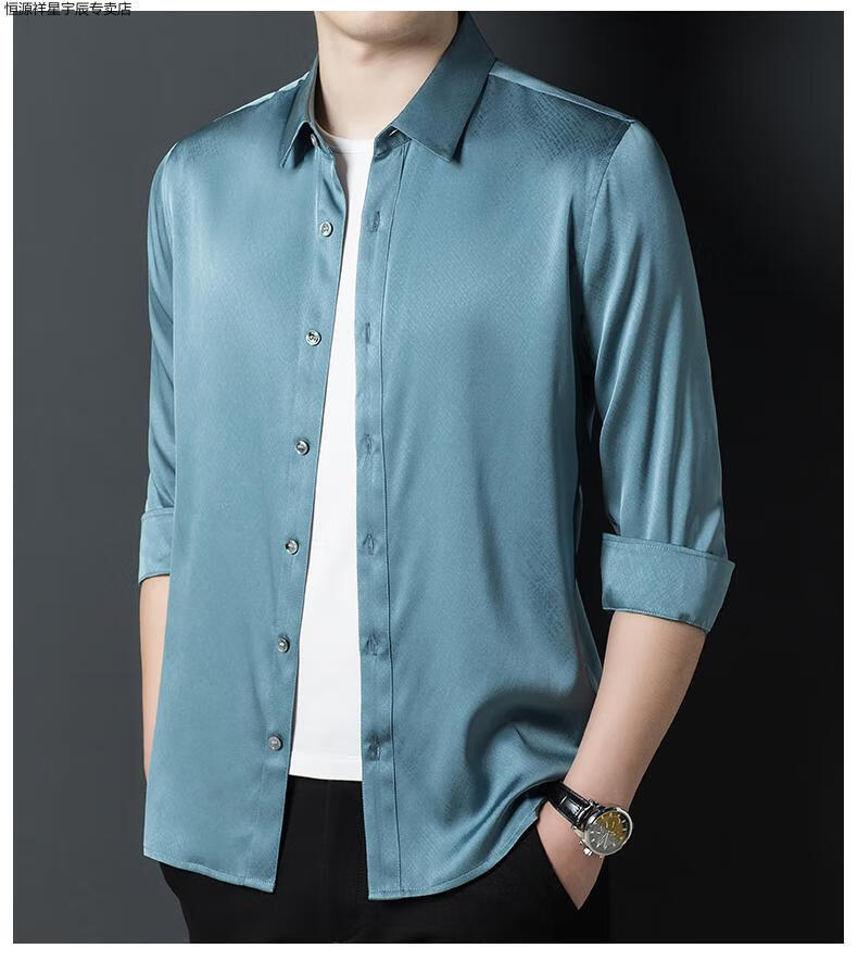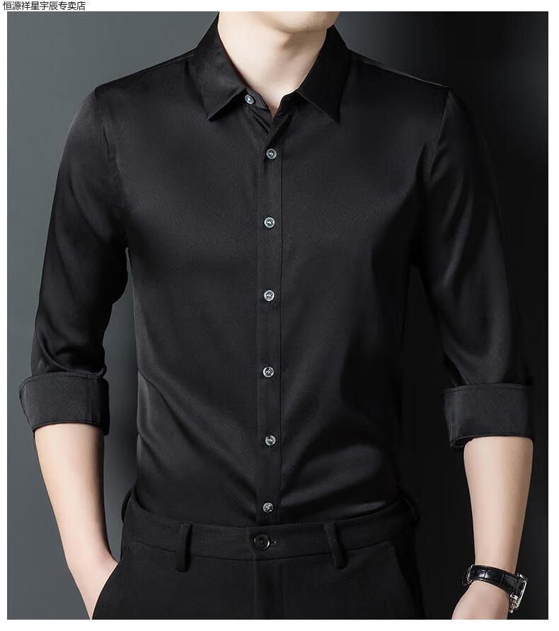 Hengyuanxiang silk long-sleeved shirt men's heavyweight double Qiao dark pattern jacquard high-end mulberry silk business casual dad shirt white M 165 suitable for 95-120 Jin Jin equals 0.5 kg