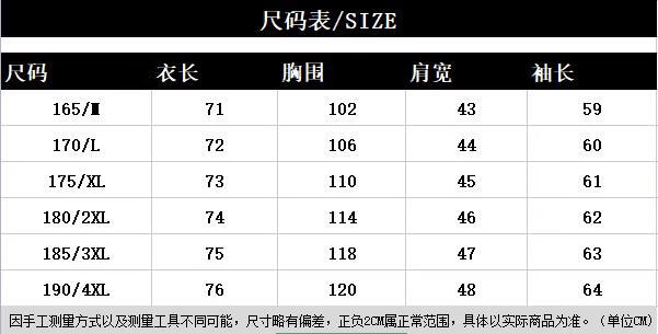 China (cm) 165 / 88-90 170 / 96-98 175 / 108-110 180 / 118-122 185 / 126-130