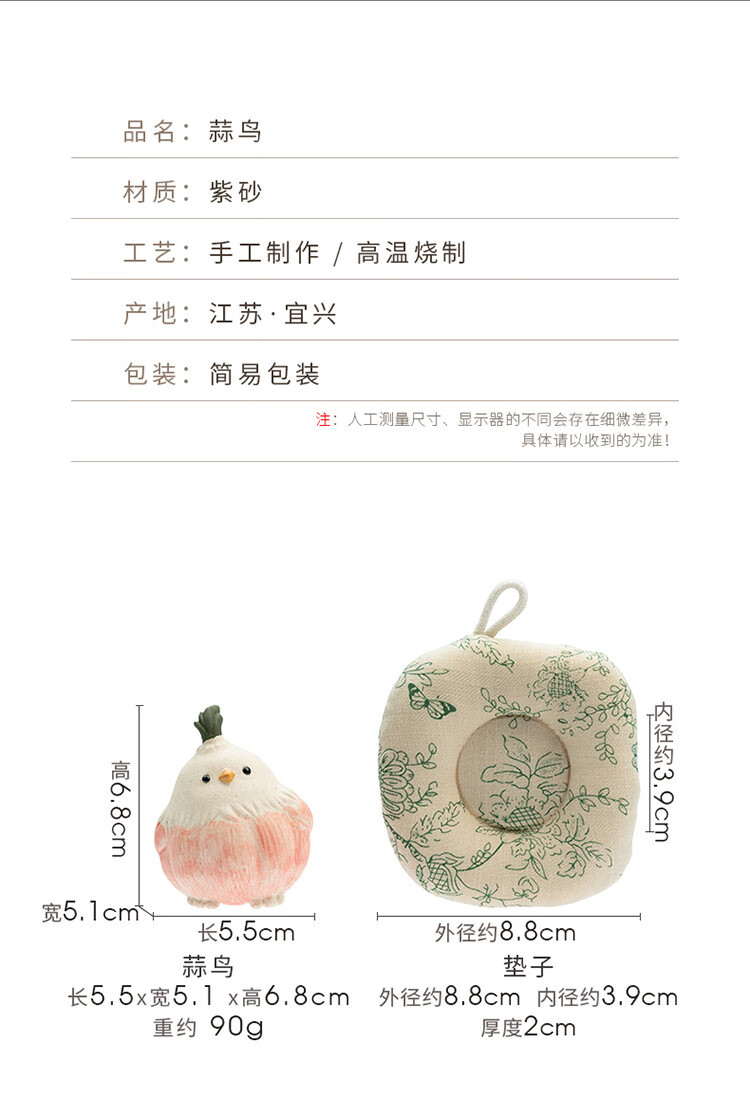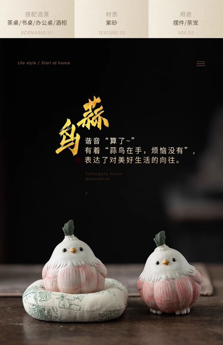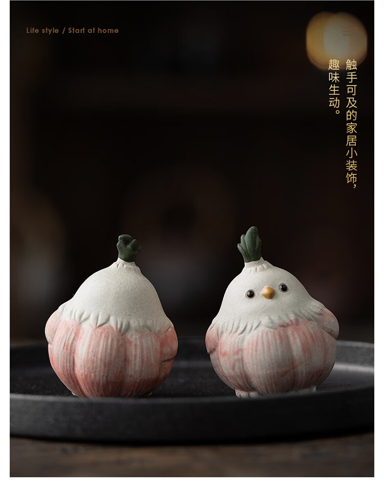 Fantasy Yixing Original Mineral Purple Clay Garlic Bird Tea Pet Ornaments Boutique Handmade Garlic Bird Tea Play Cute Decorator Garlic Bird Simple Decoration