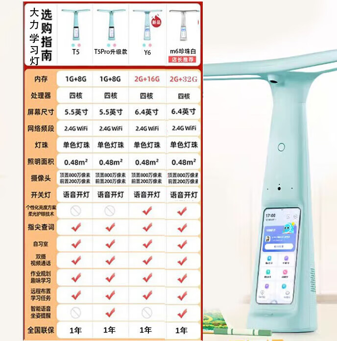Dali smart tutoring lamp T6Pro reading homework lamp student eye protection desk lamp learning lamp learning machine m6 white 16G m6+ premium course memory 32G+ sitting reminder