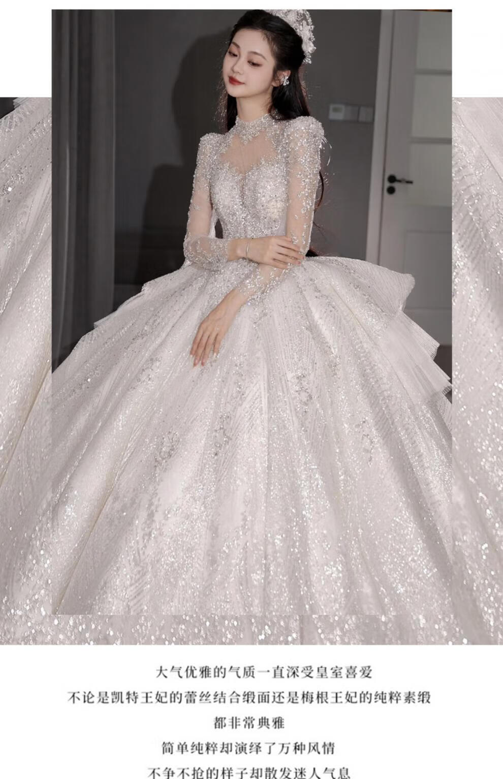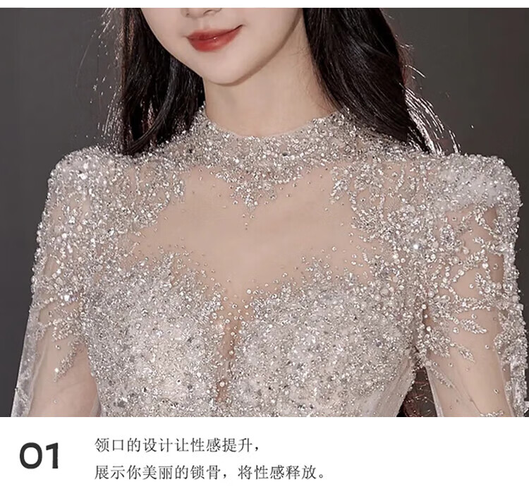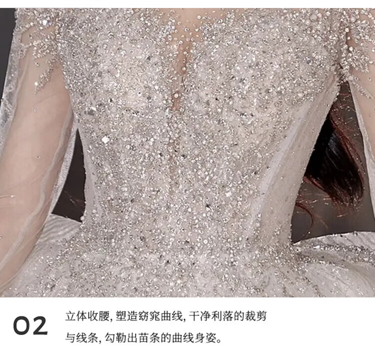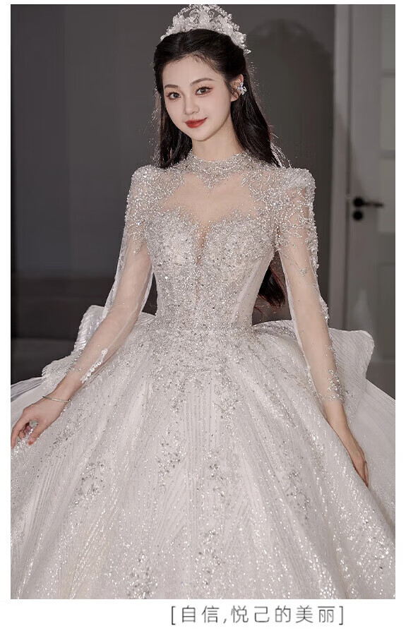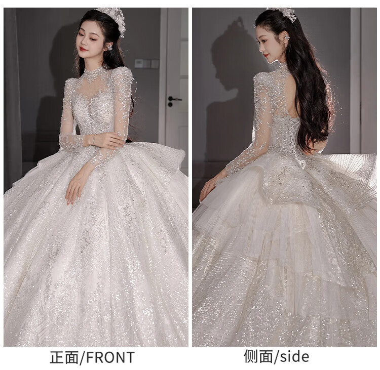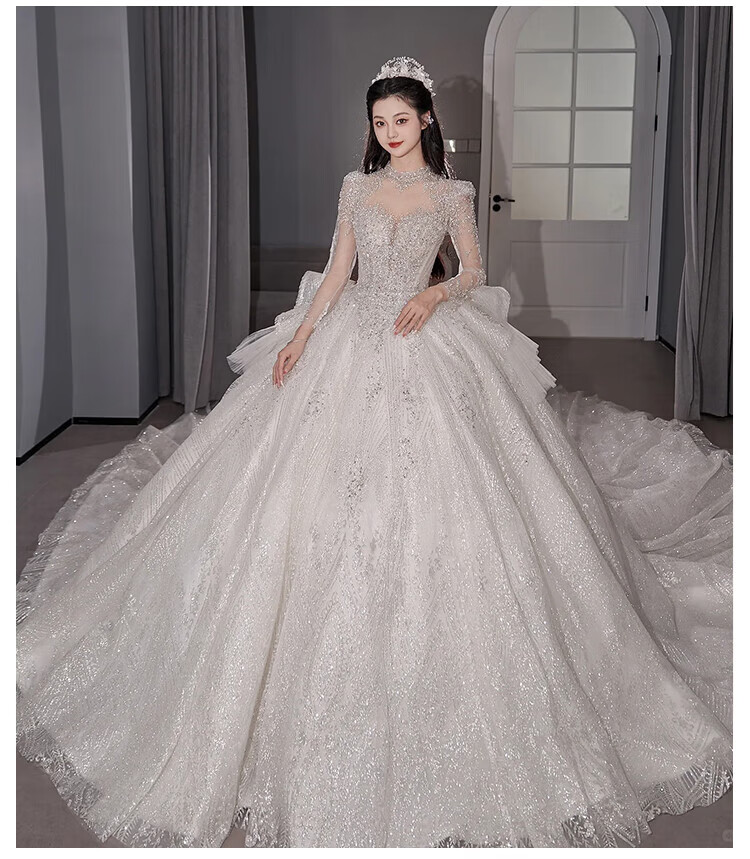 Flashing Girl (SHANDONGSHAONV) wedding dress bridal main yarn heavy industry high-definition tail new heavy industry French style going out main yarn texture large tail White floor-length style + random small M Weight 100Jin Jin is equal to about 0.5 kg