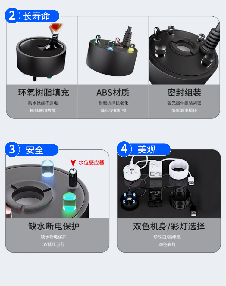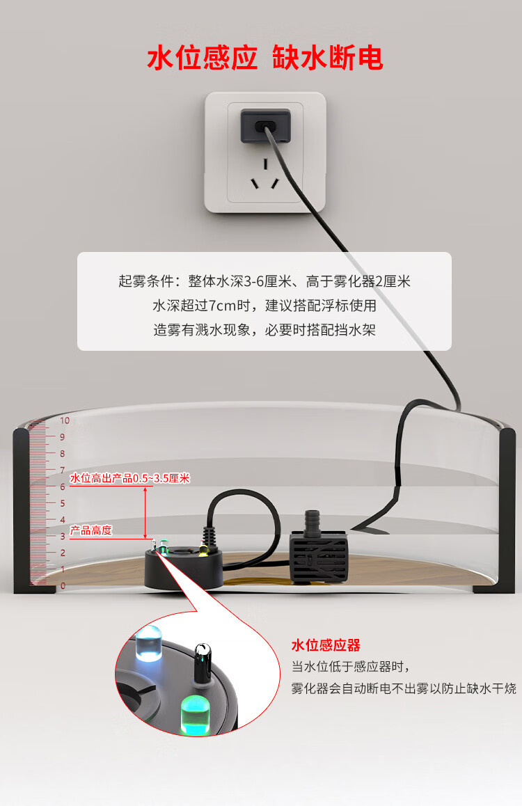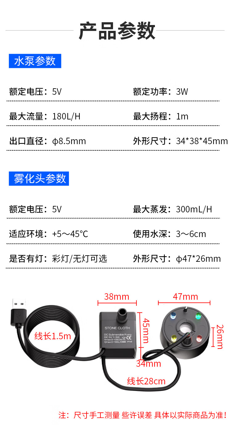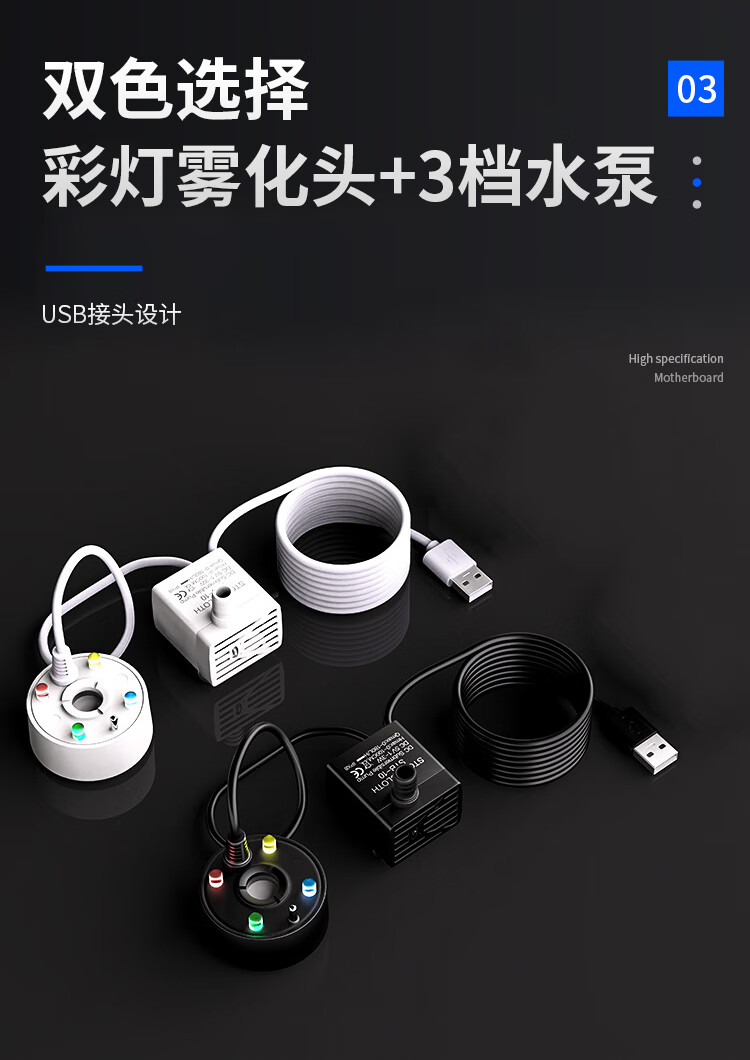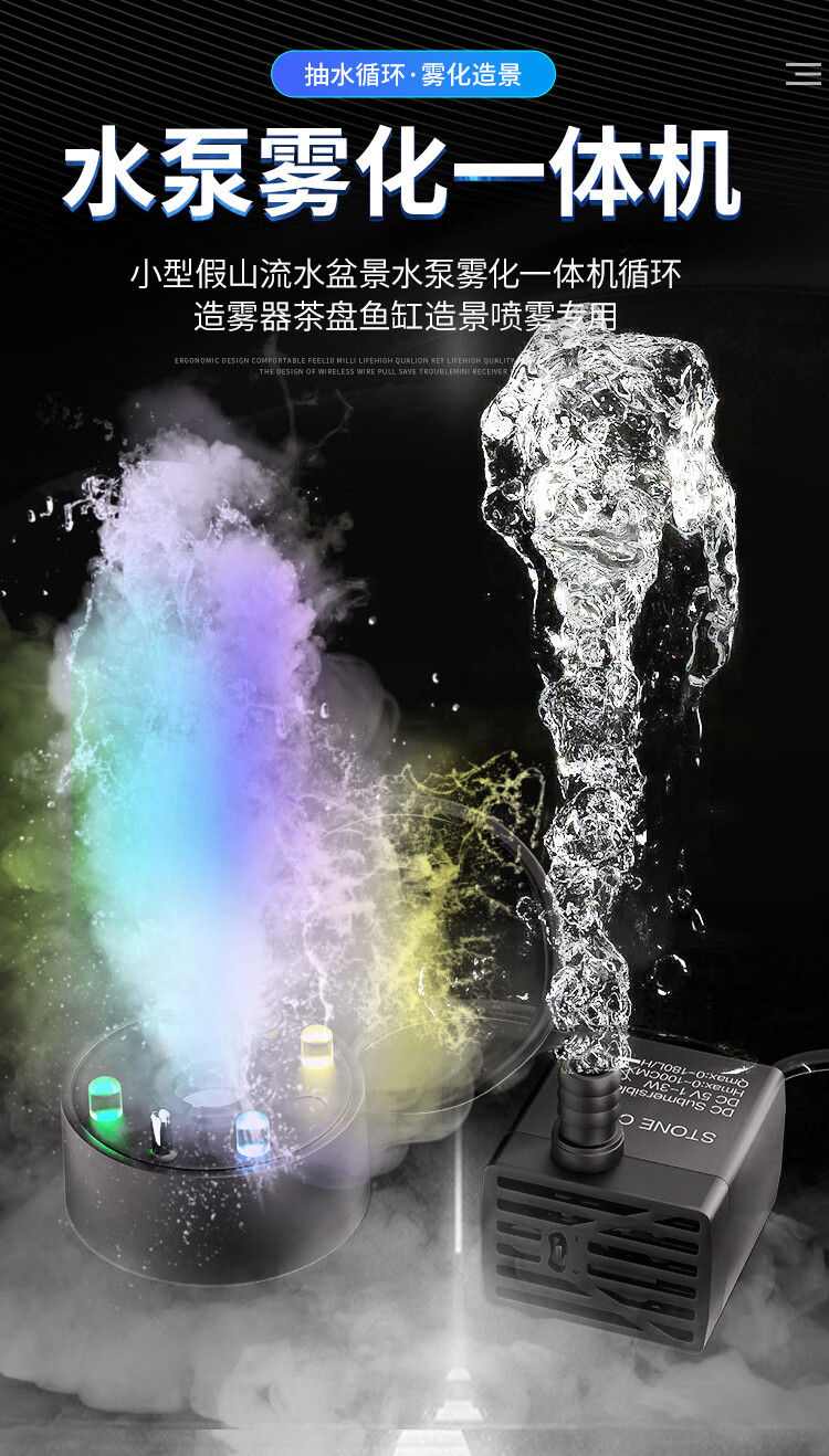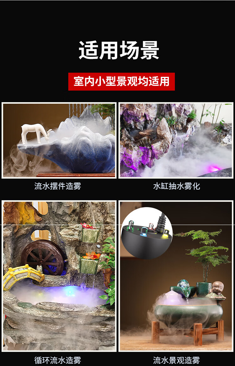 Small rockery, flowing water, bonsai, water pump and atomization all-in-one machine, circulating fogger, tea tray, fish tank landscaping spray, black USB5V4 light, water pump and atomization all-in-one machine, no Specifications