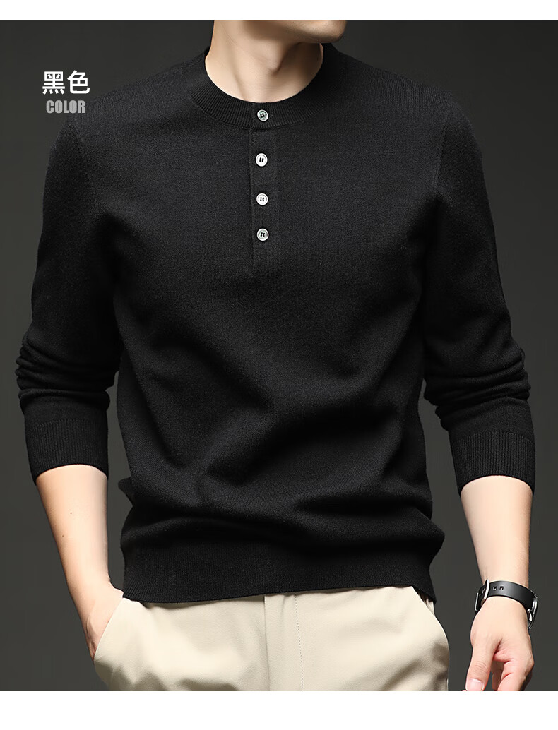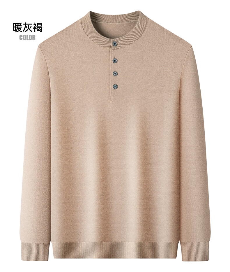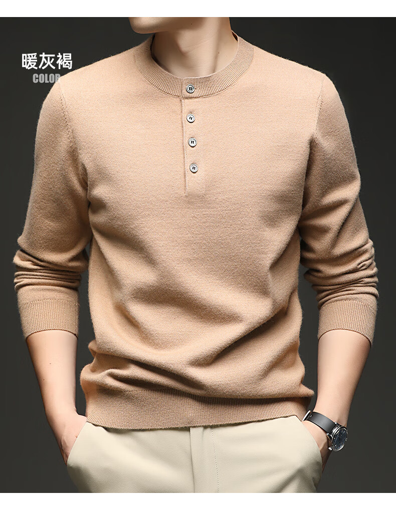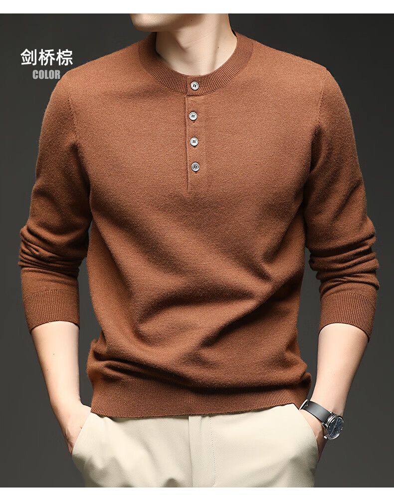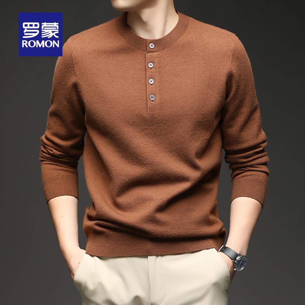 ROMON Contains Sheep Wool Romon Men's Henley Collar Sweater 2025 Autumn New Solid Color Simple Style Top Men Cambridge Brown S 165_(Suitable for_90-120_Jin Jin equals 0.5 kg)