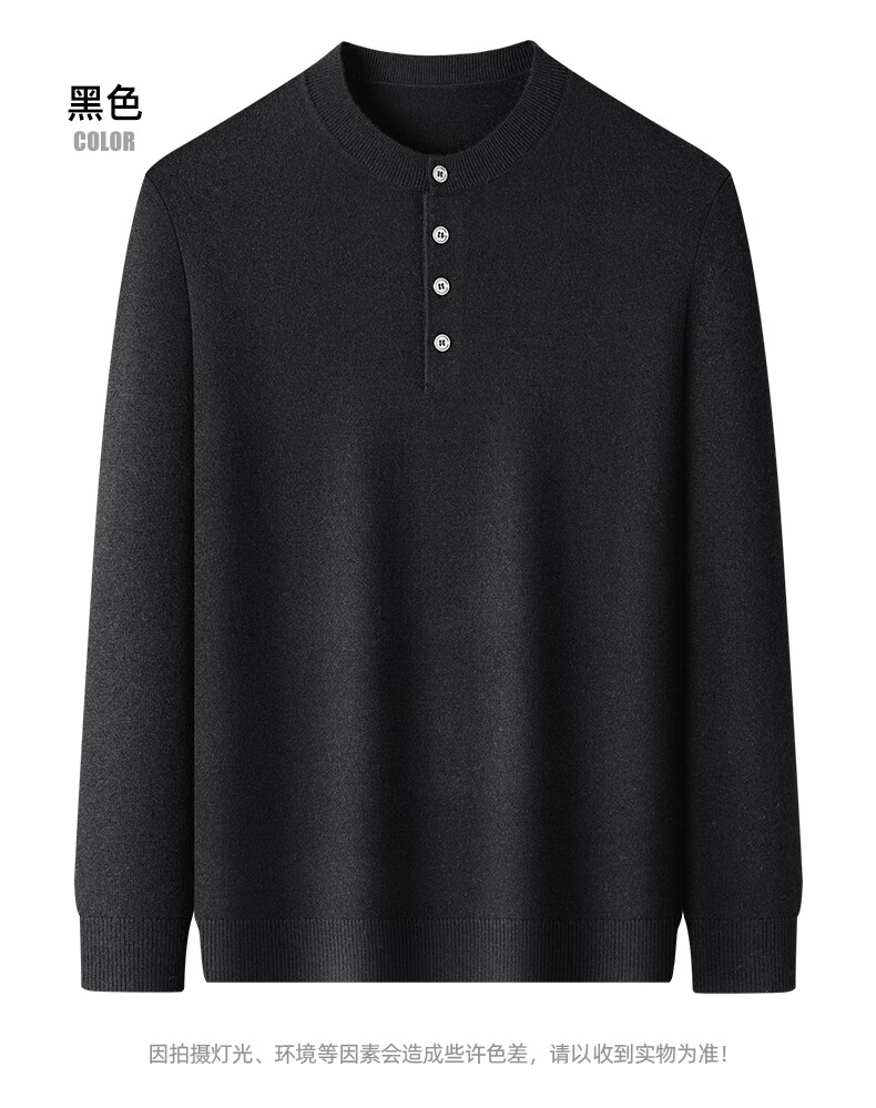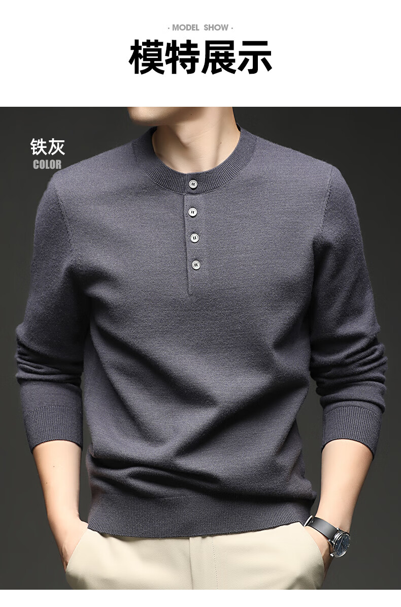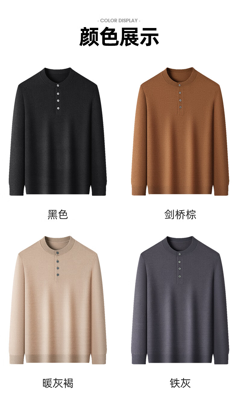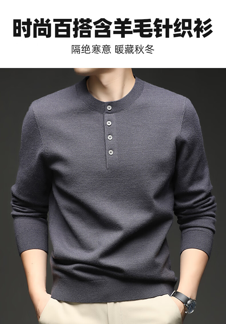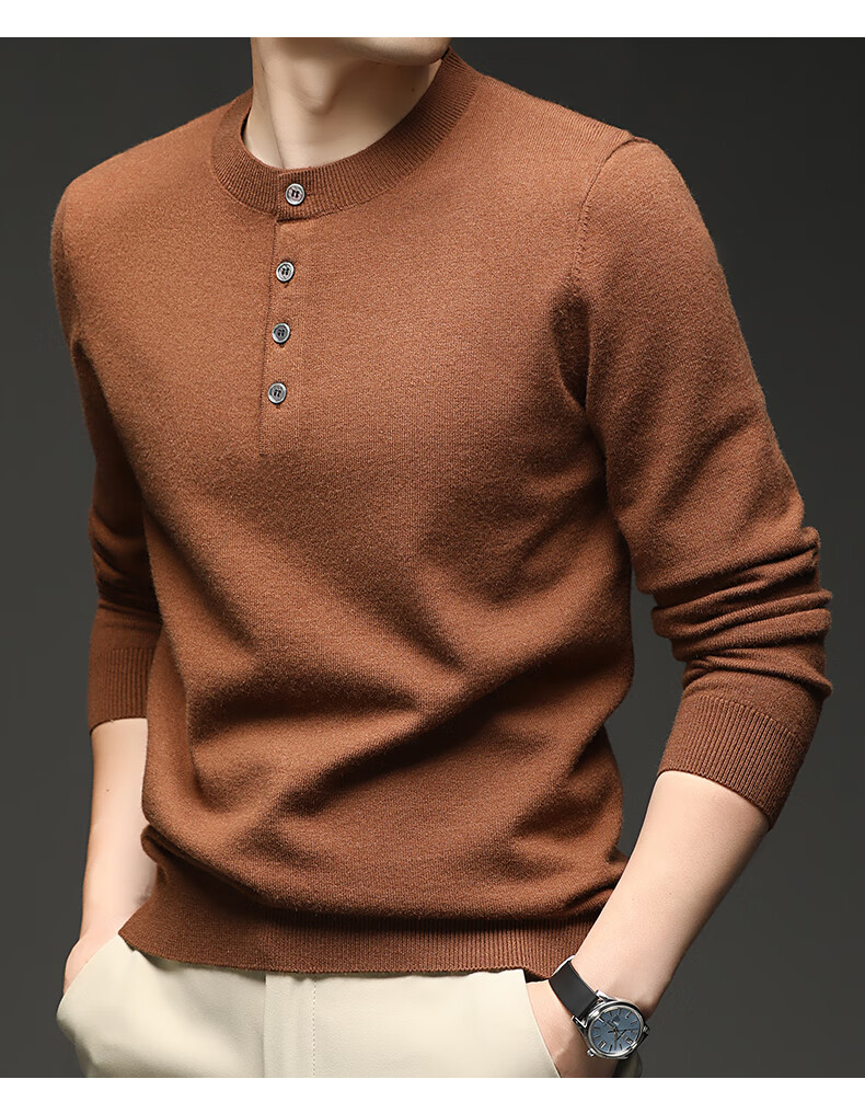 ROMON Contains Sheep Wool Romon Men's Henley Collar Sweater 2025 Autumn New Solid Color Simple Style Top Men Cambridge Brown S 165_(Suitable for_90-120_Jin Jin equals 0.5 kg)