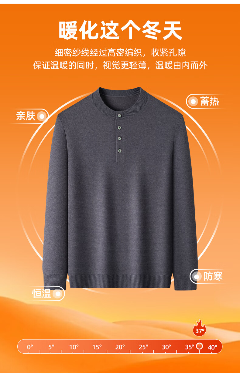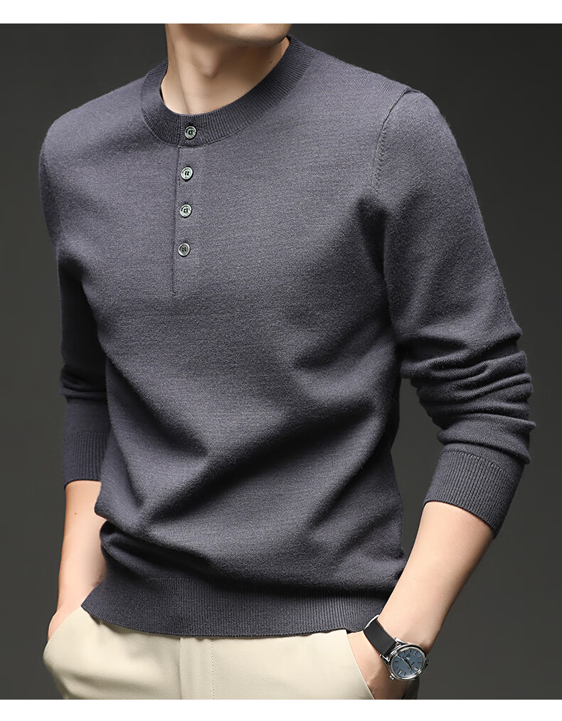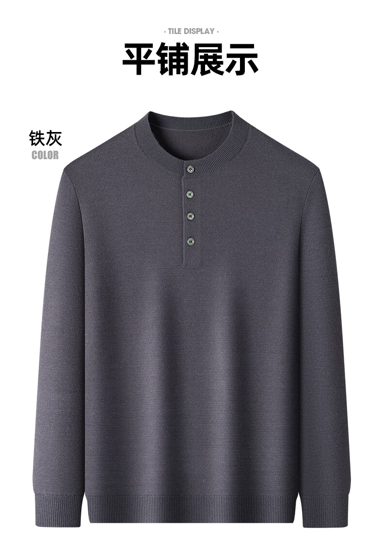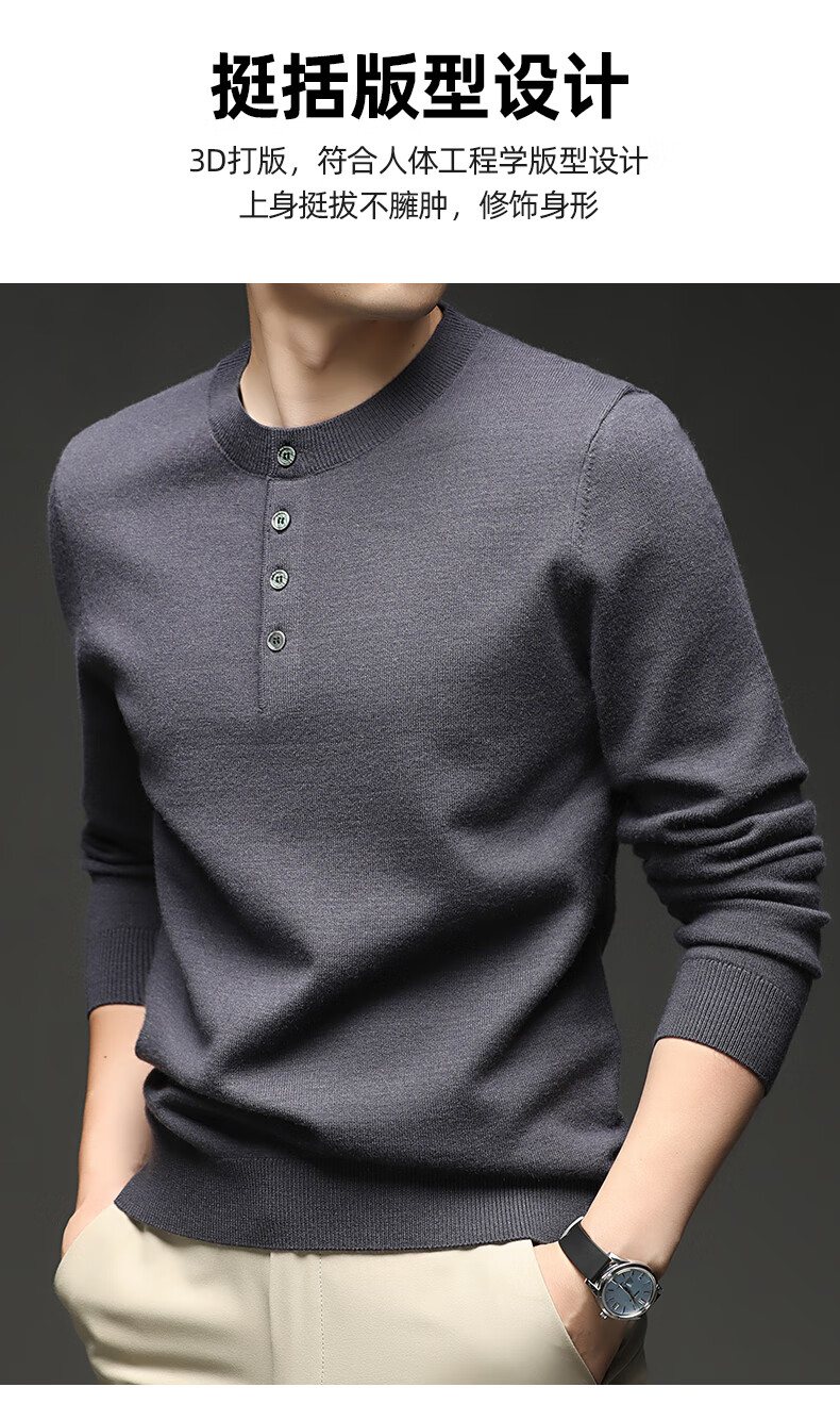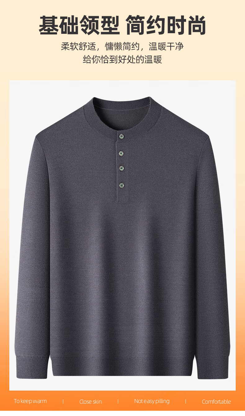 ROMON Contains Sheep Wool Romon Men's Henley Collar Sweater 2025 Autumn New Solid Color Simple Style Top Men Cambridge Brown S 165_(Suitable for_90-120_Jin Jin equals 0.5 kg)