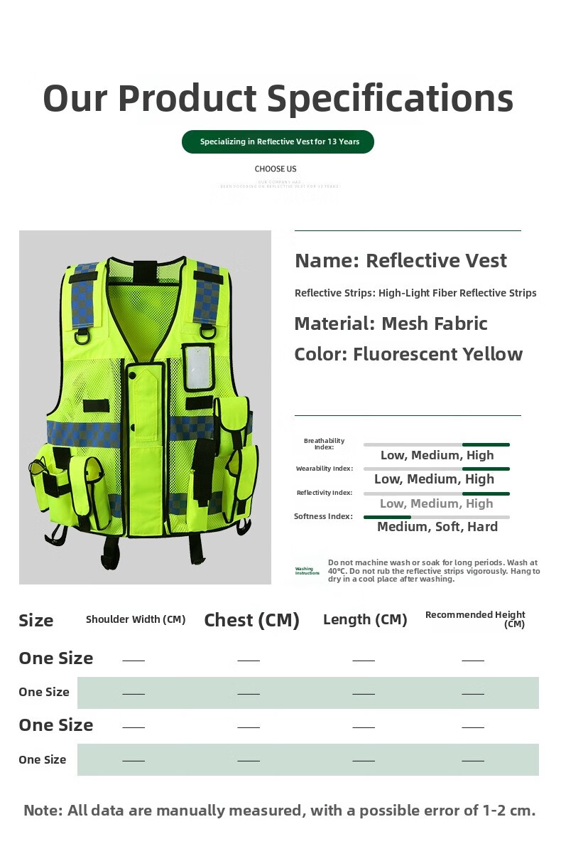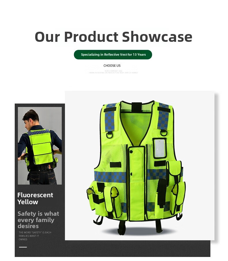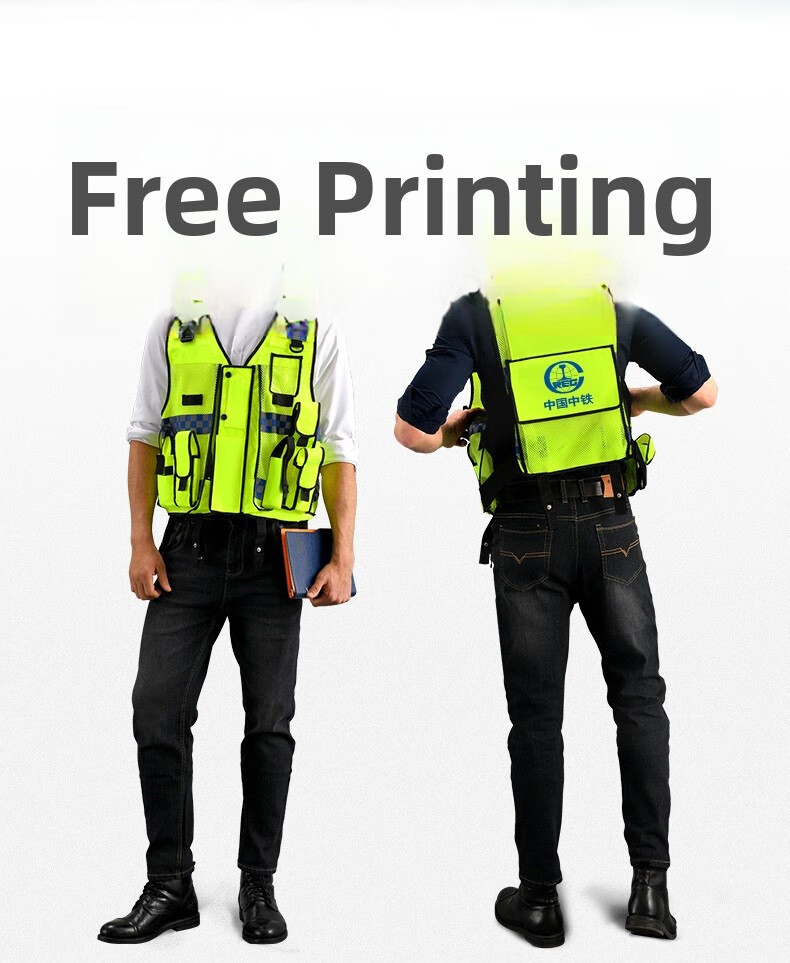 Reflective Vest Bike Safety Clothing Traffic Highway Multifunctional Tactical Vest Vest with Custom Printed Logo Multifunctional Pocket Style - Fluorescent Yellow One Size