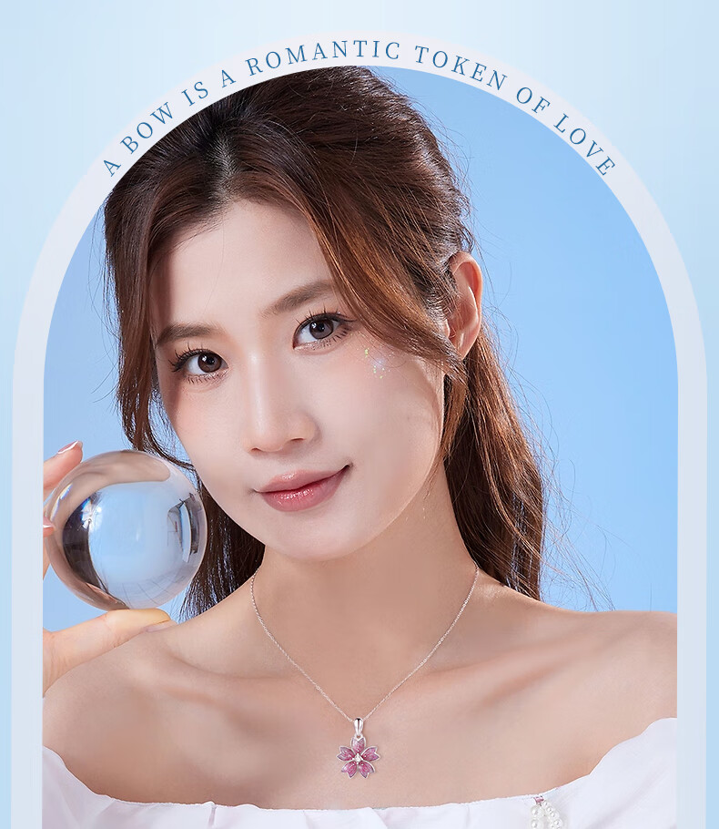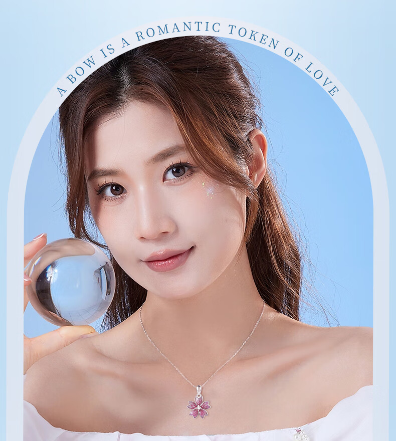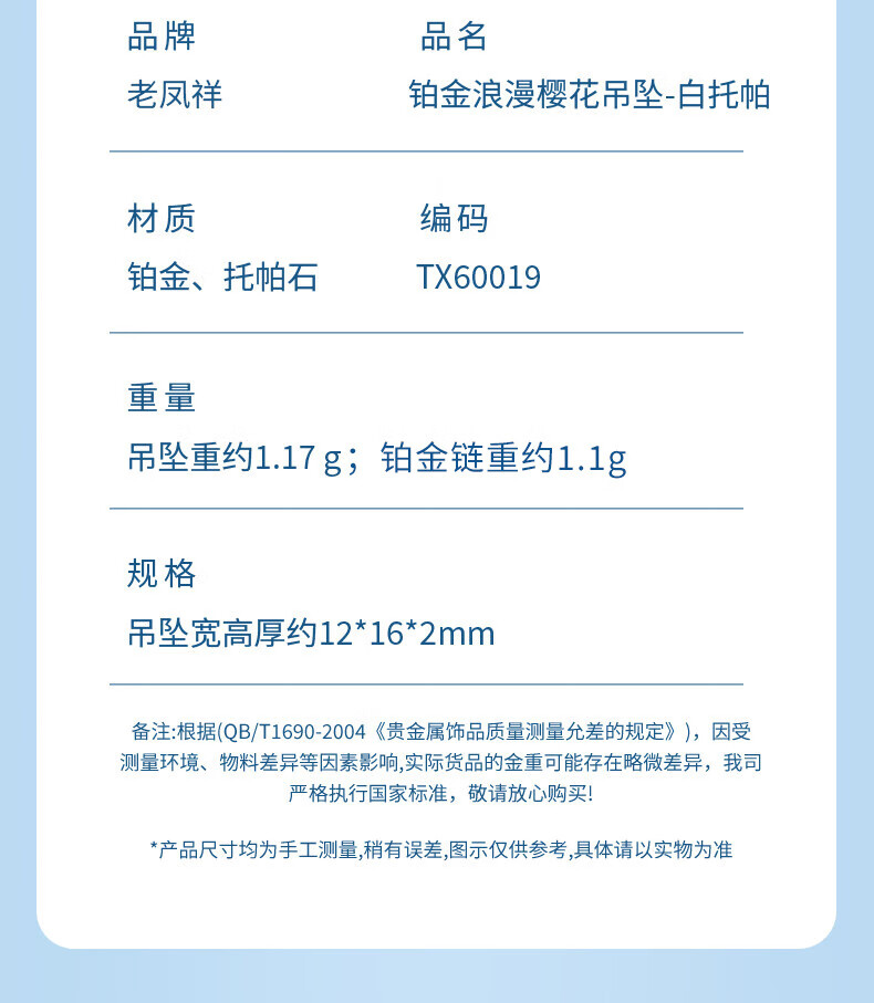 Lao Fengxiang Sakura Platinum Necklace Women's Fashionable Clavicle Chain Pendant Anniversary Holiday Gift for Girlfriend and Wife's Birthday Platinum Romantic Sakura Pendant + Platinum Chain
