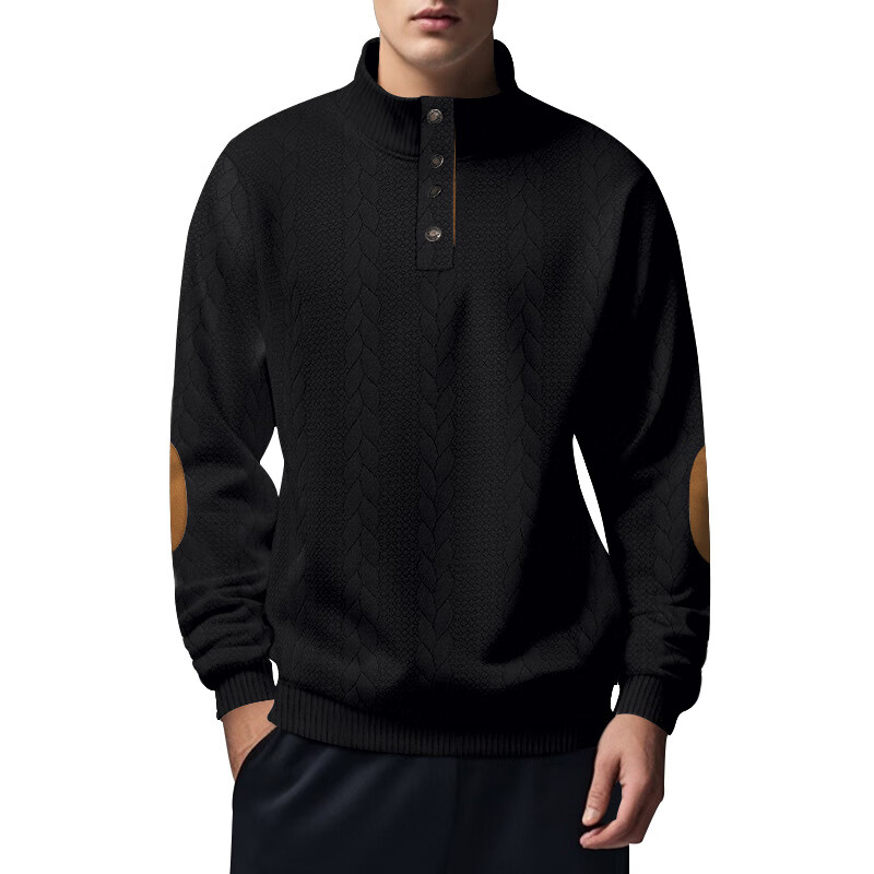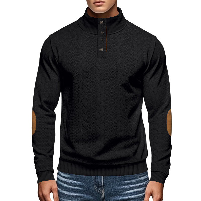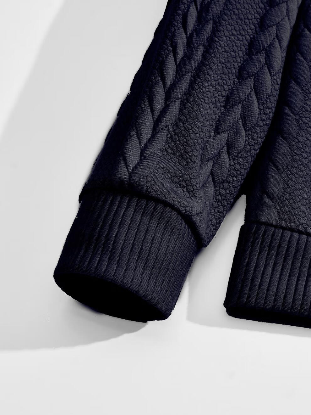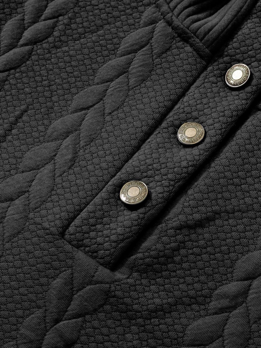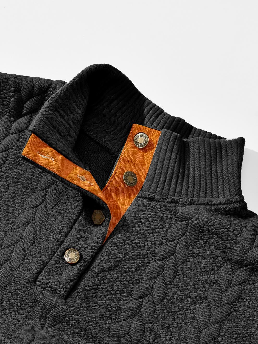 JEEP SPIRIT autumn and winter heavy jacquard men's American sweatshirt casual stand-up collar button placket long-sleeved henley shirt polar fleece jacket black S