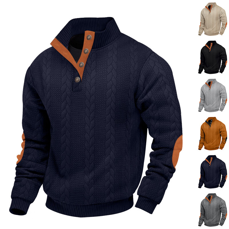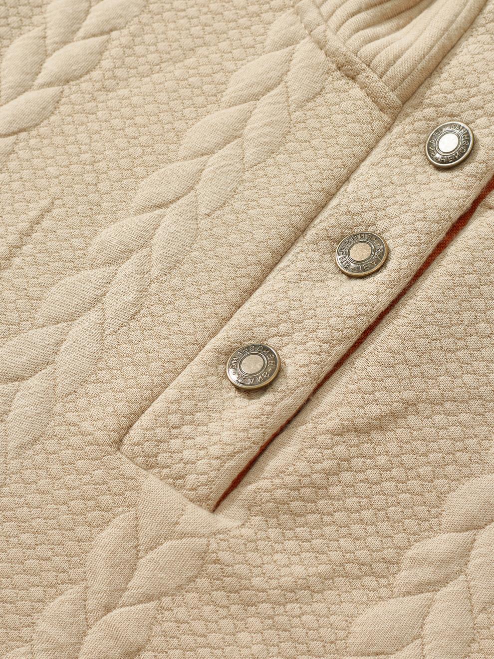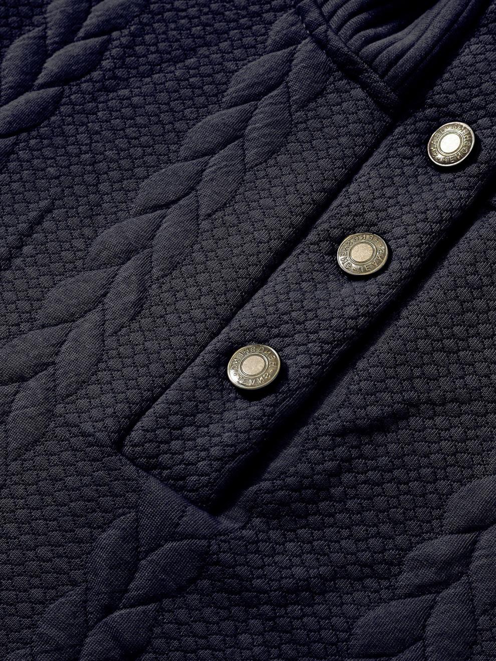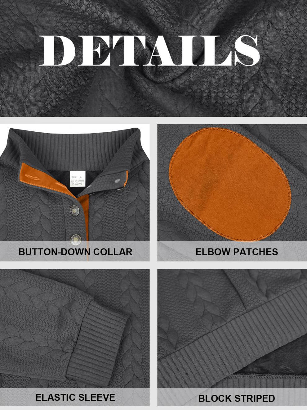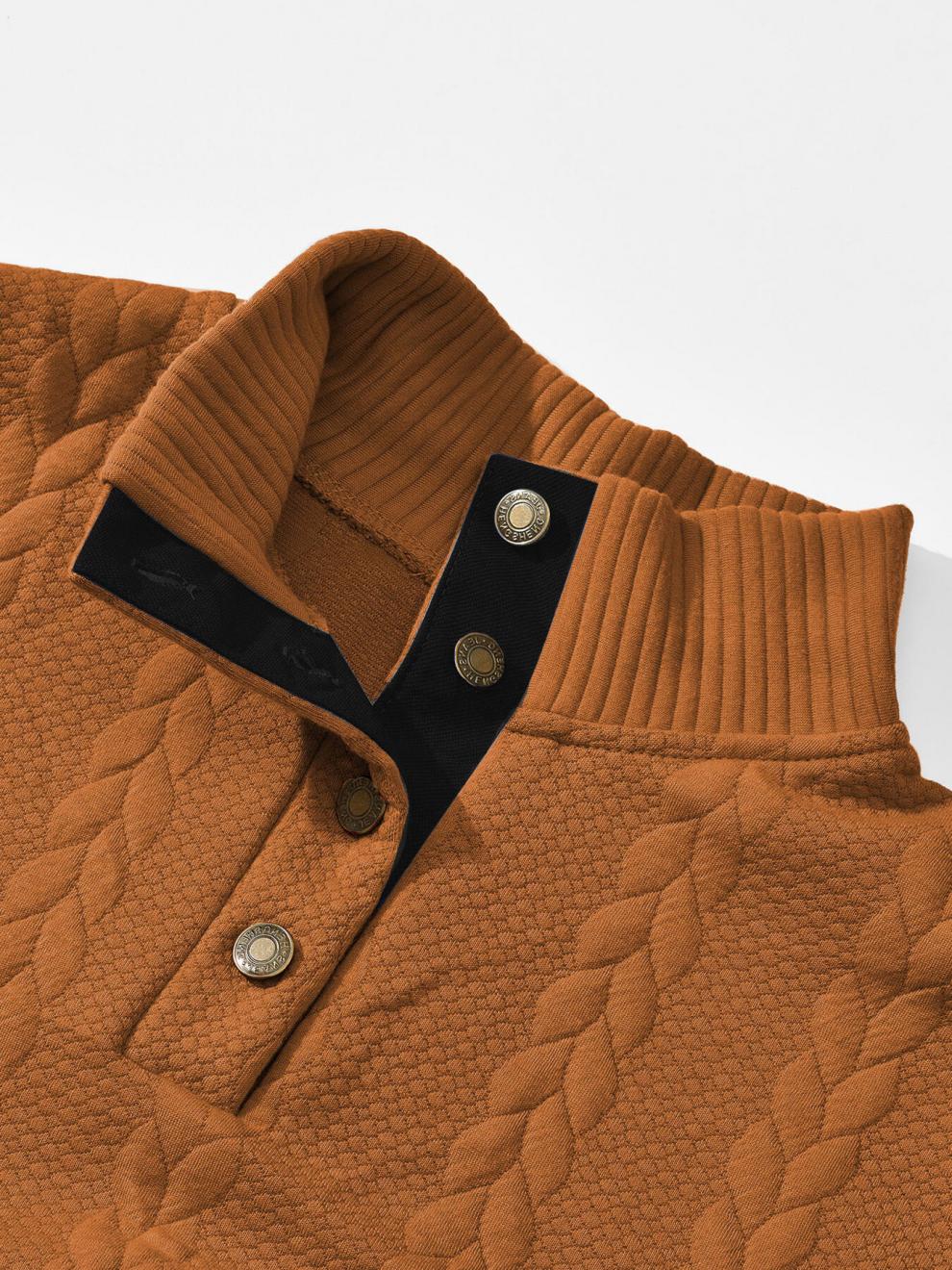 JEEP SPIRIT autumn and winter heavy jacquard men's American sweatshirt casual stand-up collar button placket long-sleeved henley shirt polar fleece jacket black S