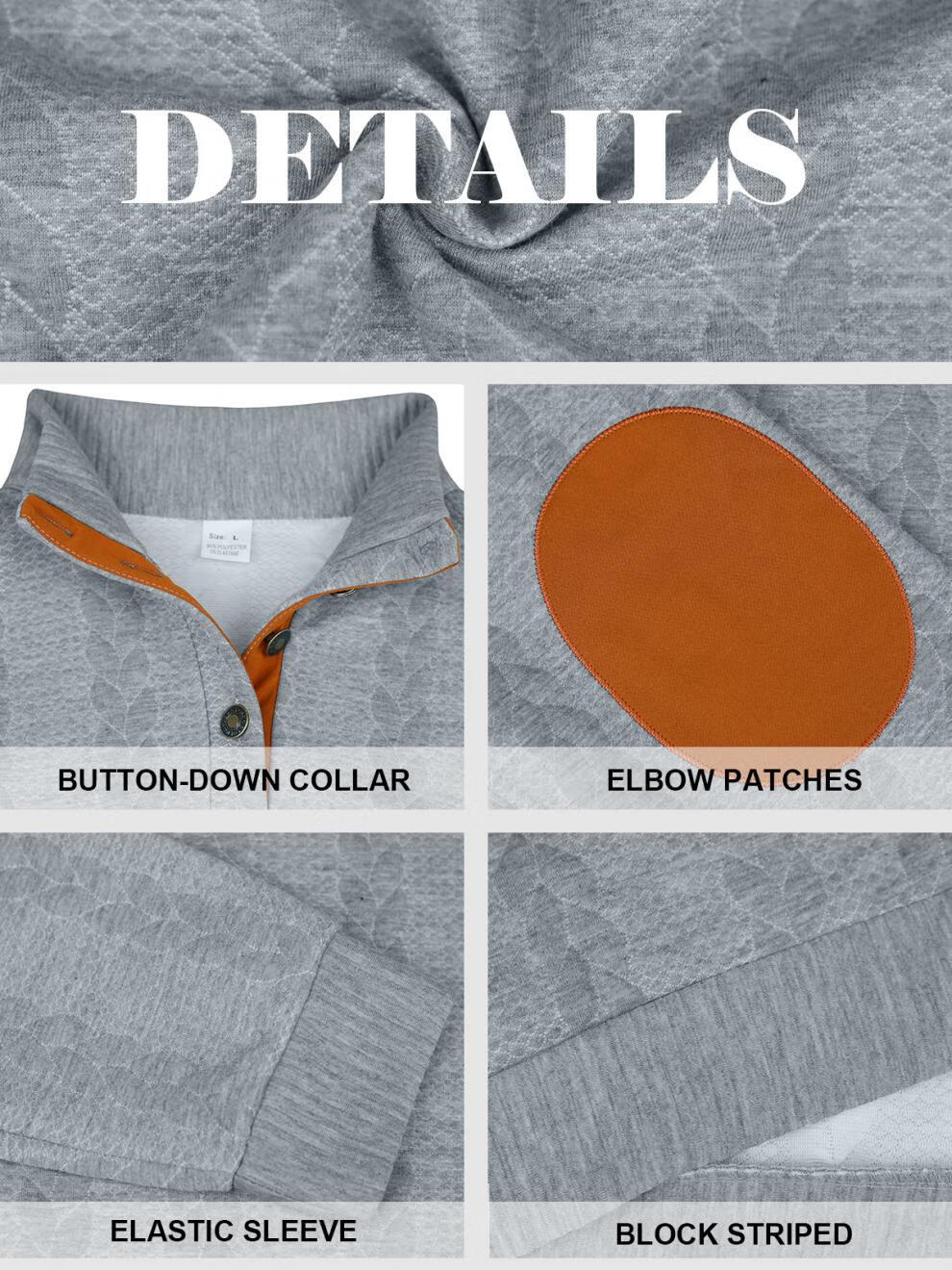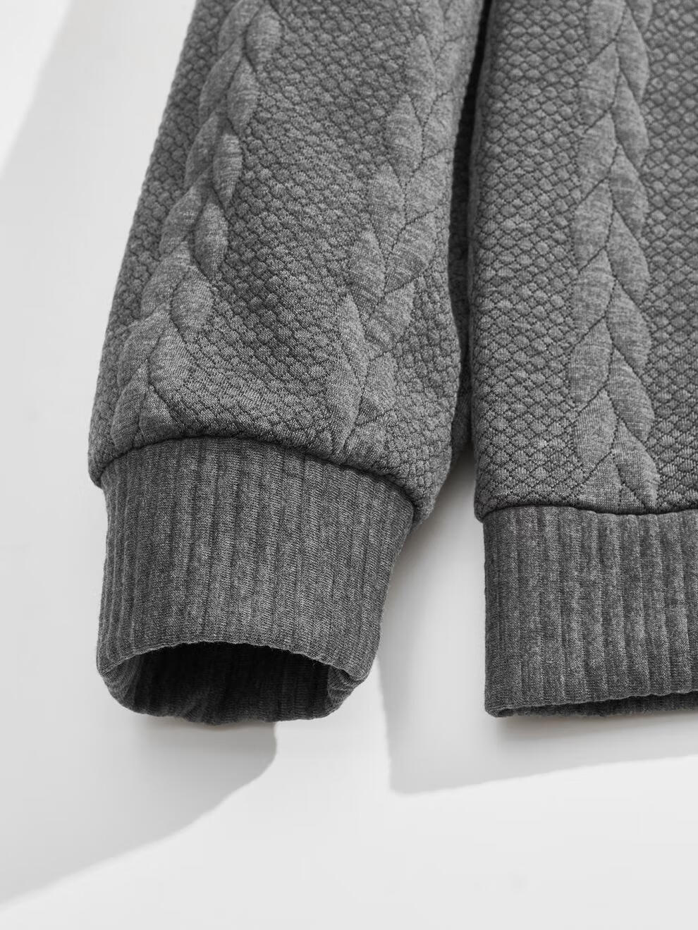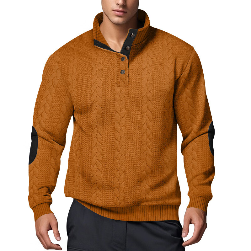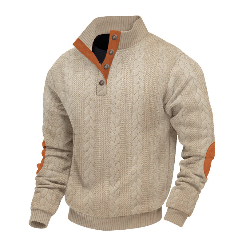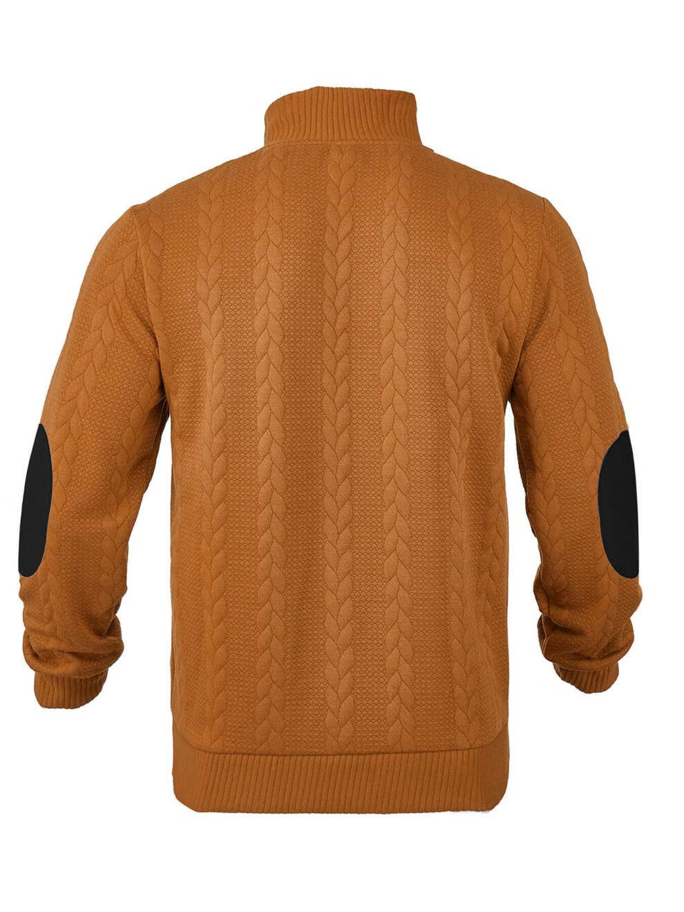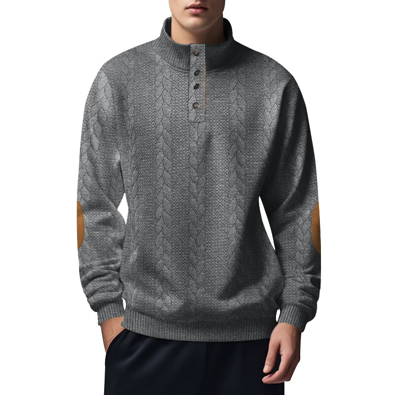 JEEP SPIRIT autumn and winter heavy jacquard men's American sweatshirt casual stand-up collar button placket long-sleeved henley shirt polar fleece jacket black S