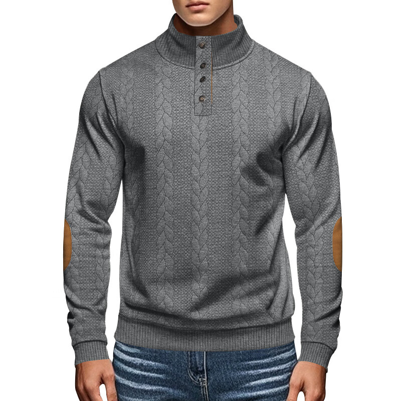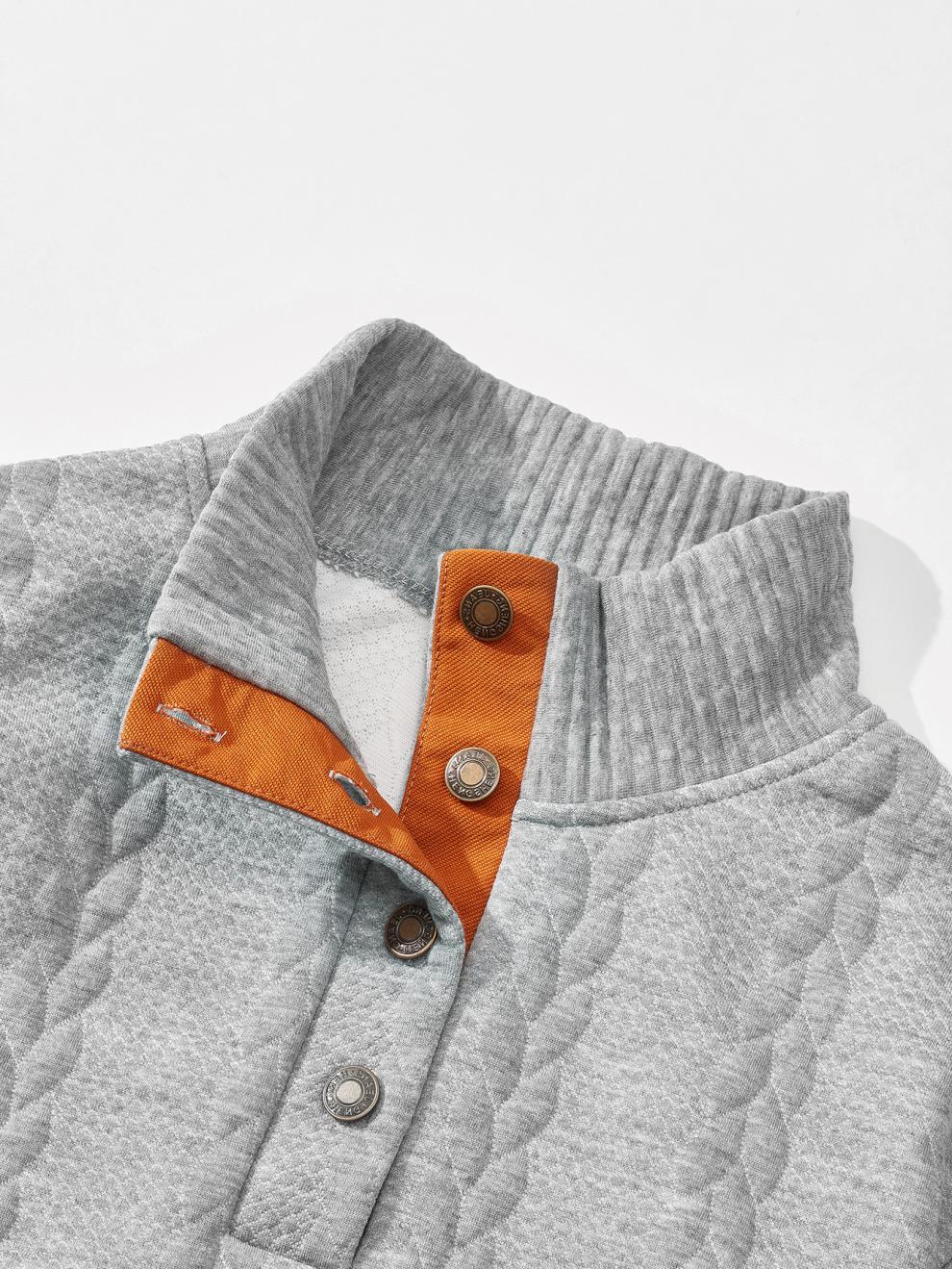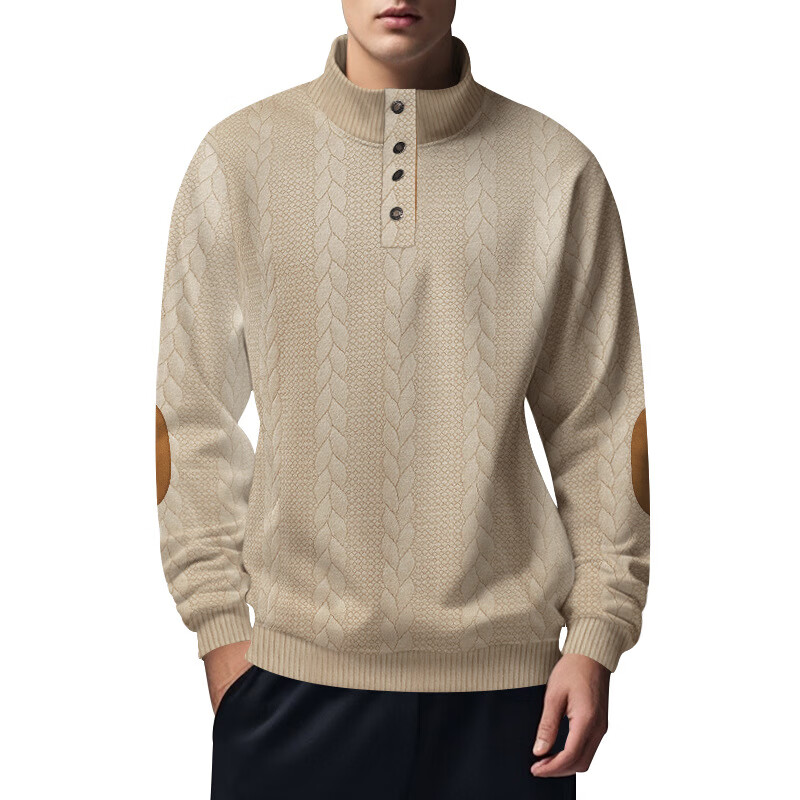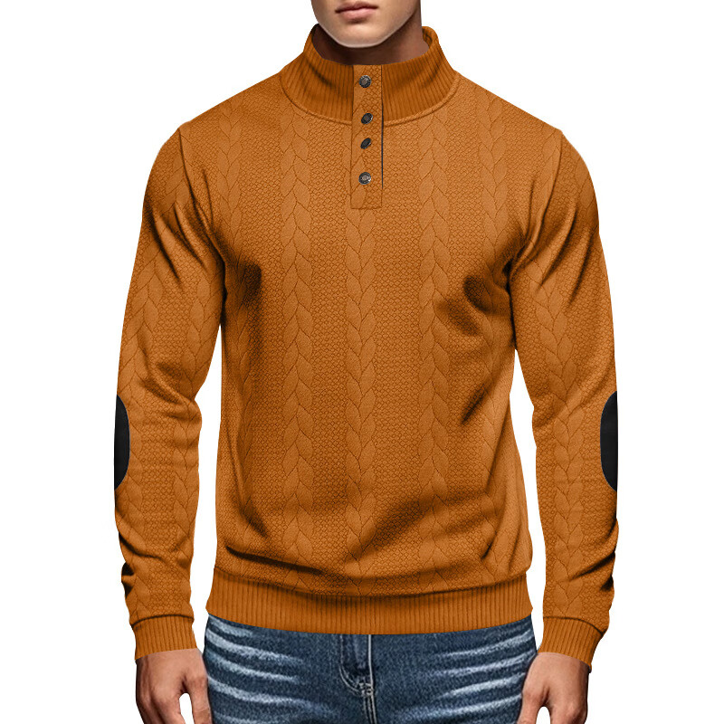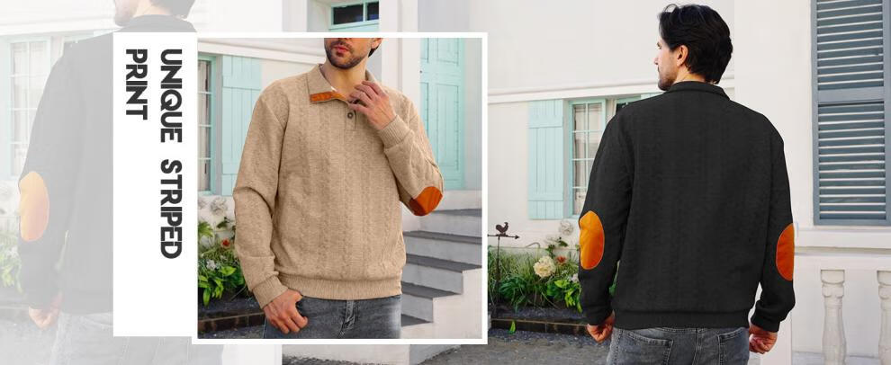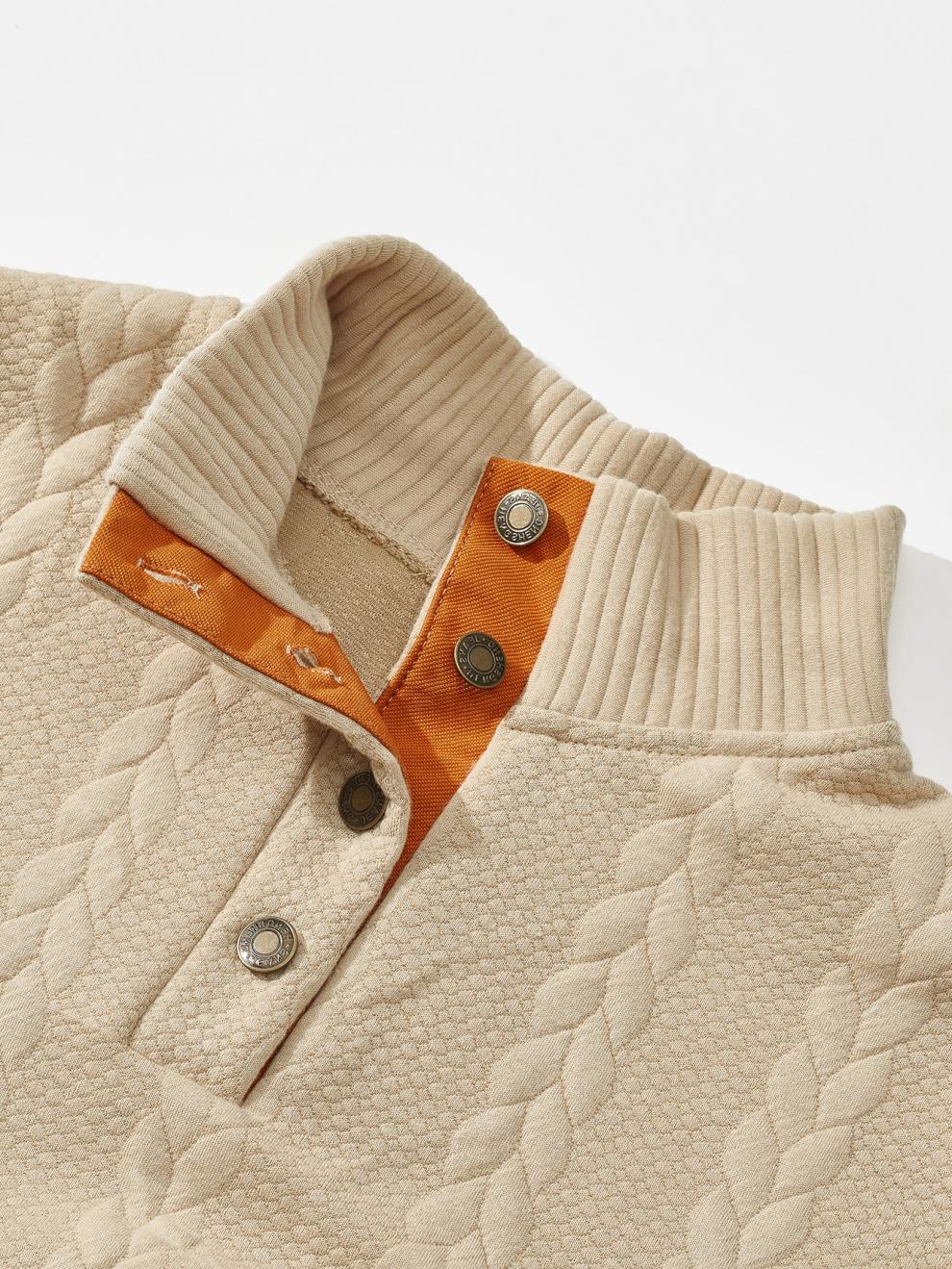JEEP SPIRIT autumn and winter heavy jacquard men's American sweatshirt casual stand-up collar button placket long-sleeved henley shirt polar fleece jacket black S