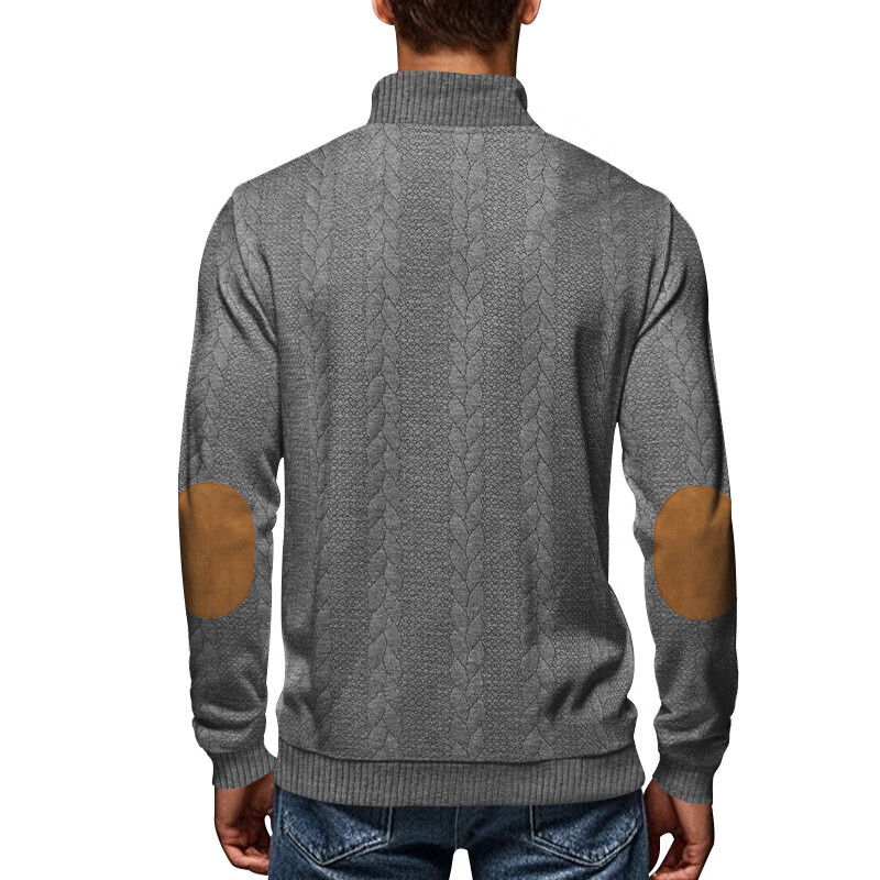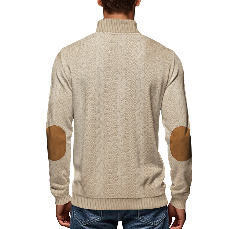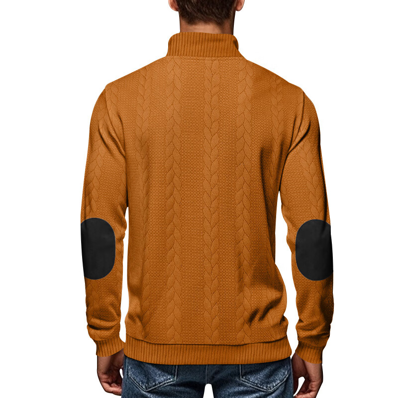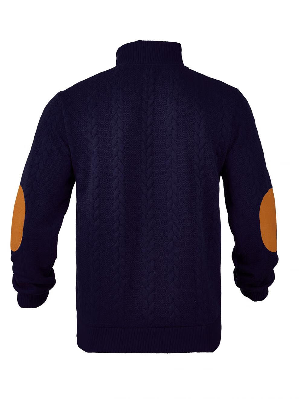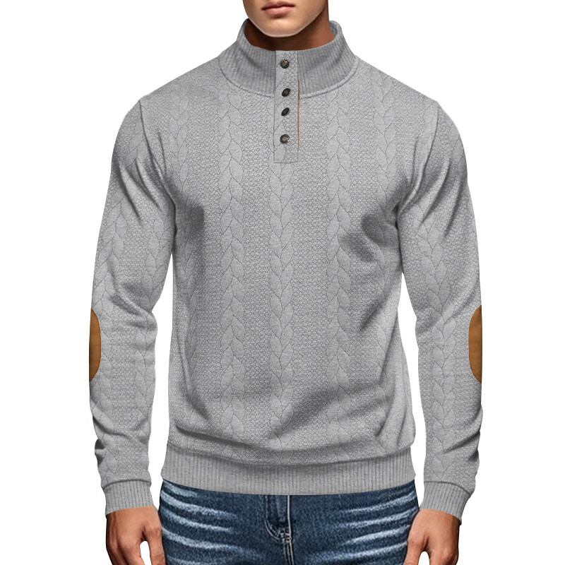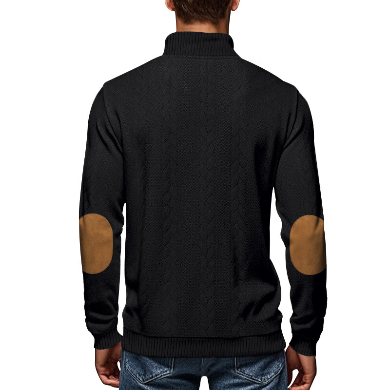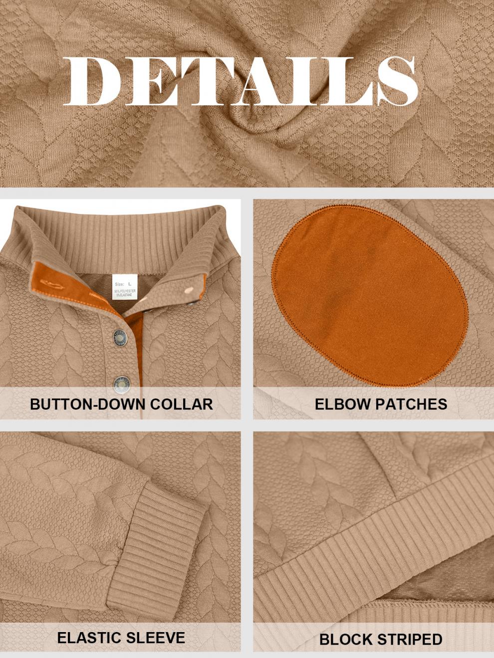 JEEP SPIRIT autumn and winter heavy jacquard men's American sweatshirt casual stand-up collar button placket long-sleeved henley shirt polar fleece jacket black S