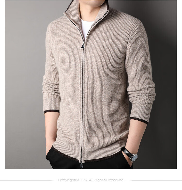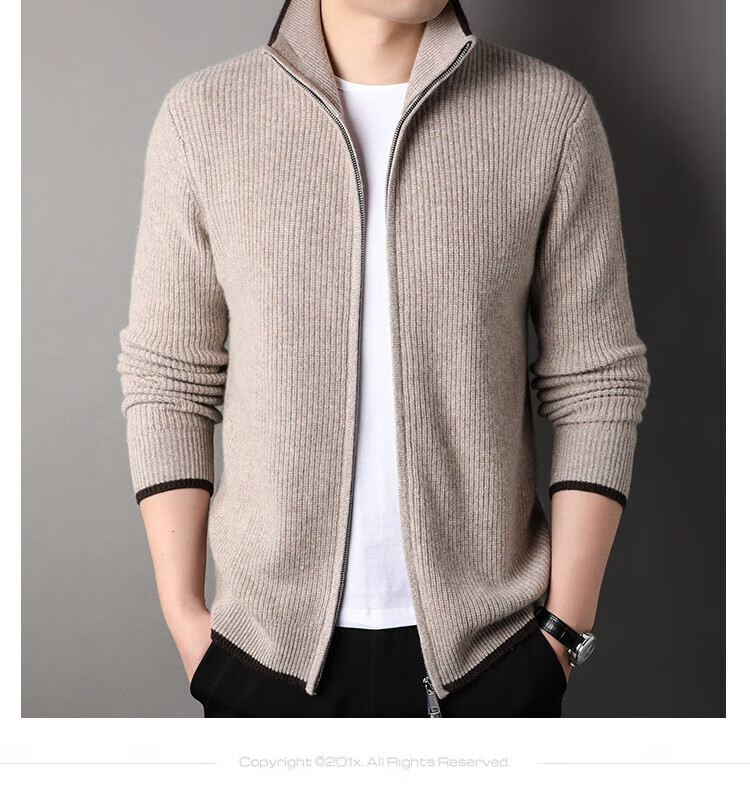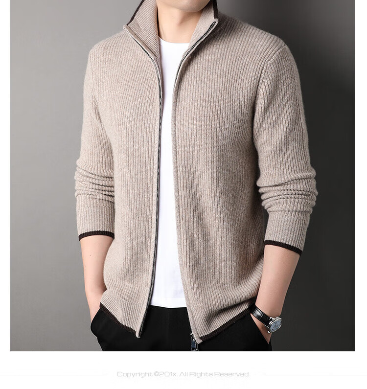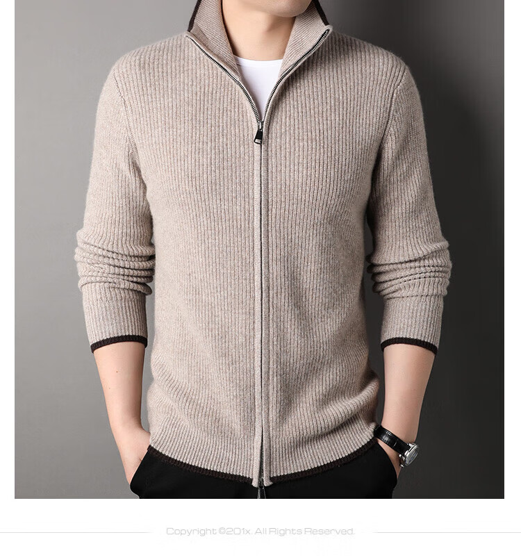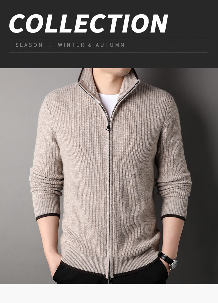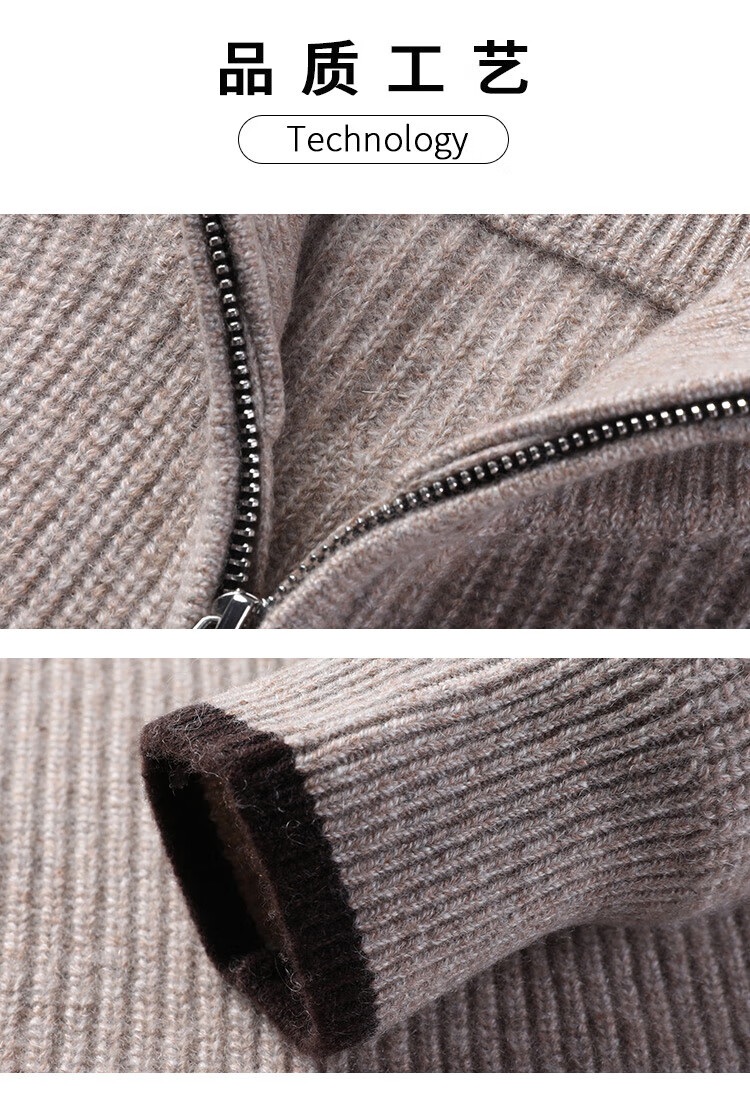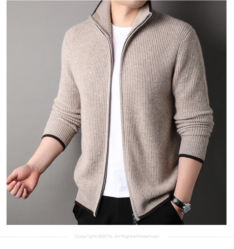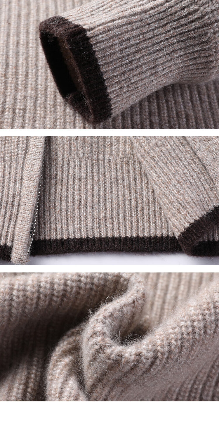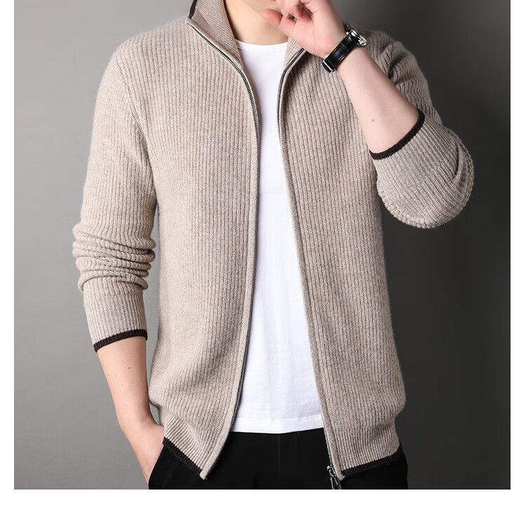 TJQ high-end British brand cardigan wool sweater for men 2025 autumn and winter thickened men's turtleneck sweater jacket light khaki 4XL 195 suitable for 190-220Jin Jin equals 0.5 kg