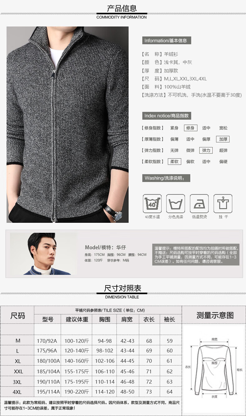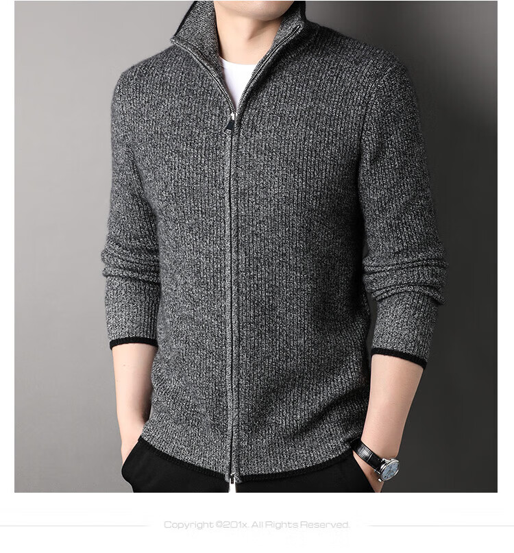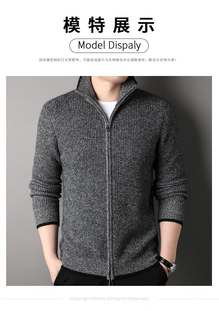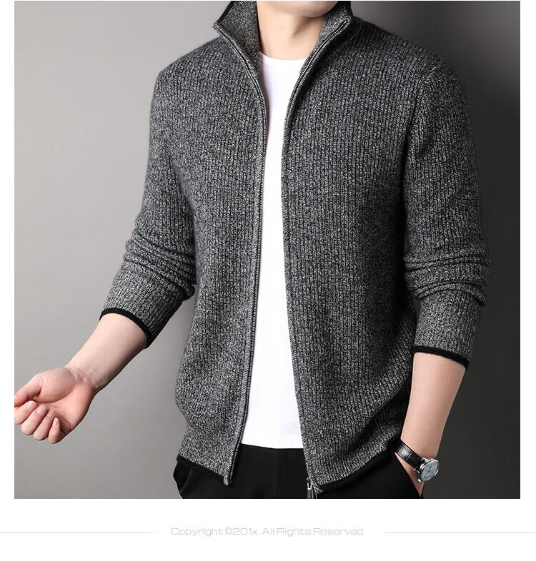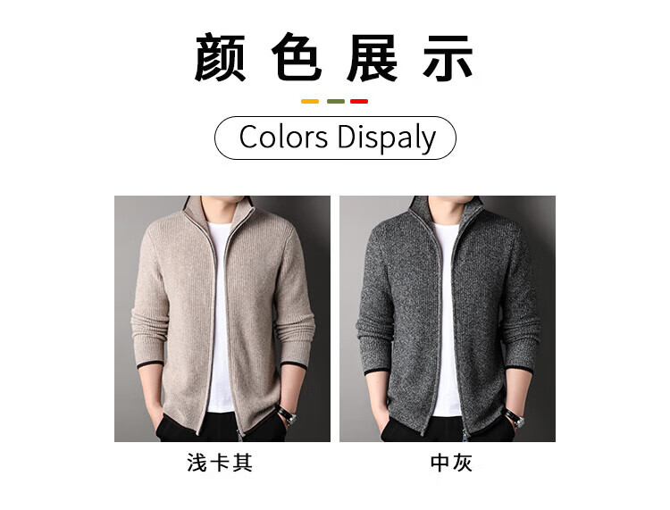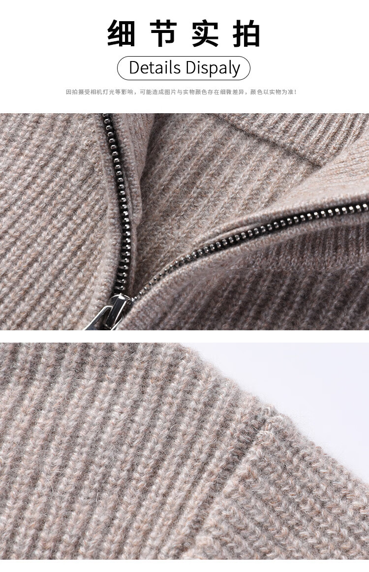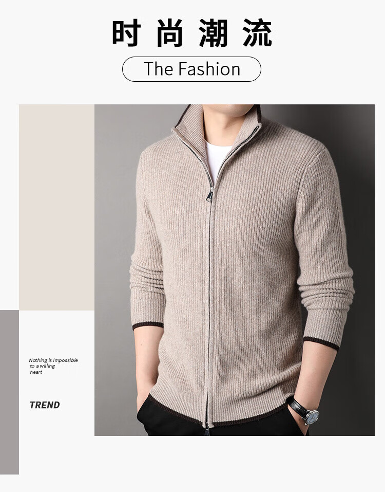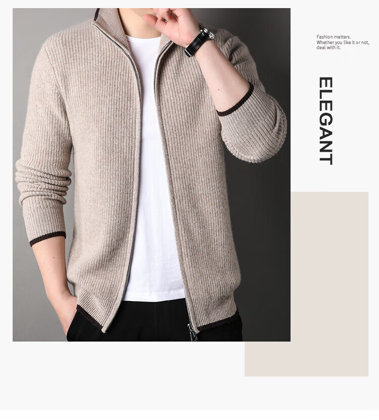 TJQ high-end British brand cardigan wool sweater for men 2025 autumn and winter thickened men's turtleneck sweater jacket light khaki 4XL 195 suitable for 190-220Jin Jin equals 0.5 kg