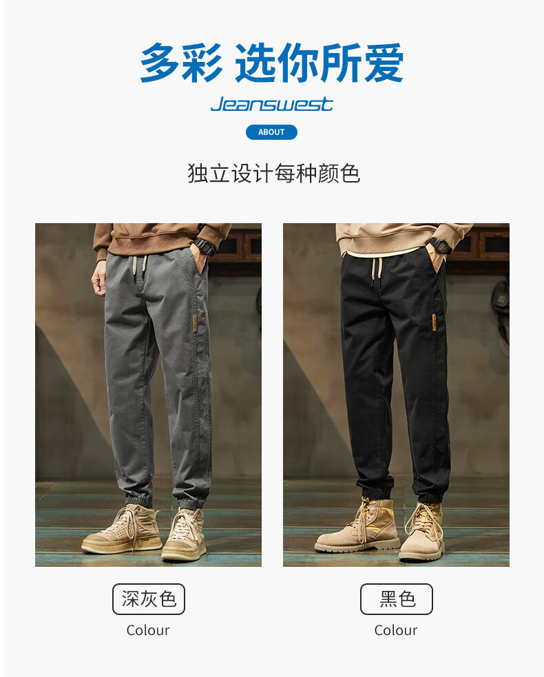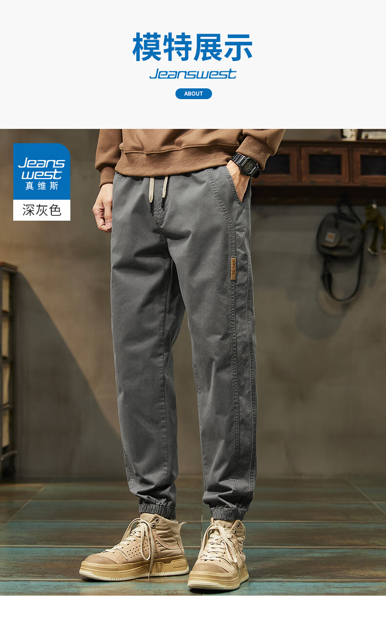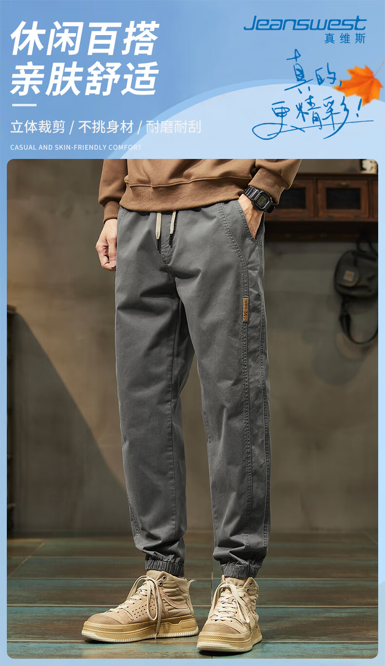 JeansWest pure cotton plus velvet overalls for men in autumn and winter stretch leg casual pants for men loose sports harem pants gray skin-friendly and wear-resistant XL recommended 125-140Jin Jin equals 0.5 kg