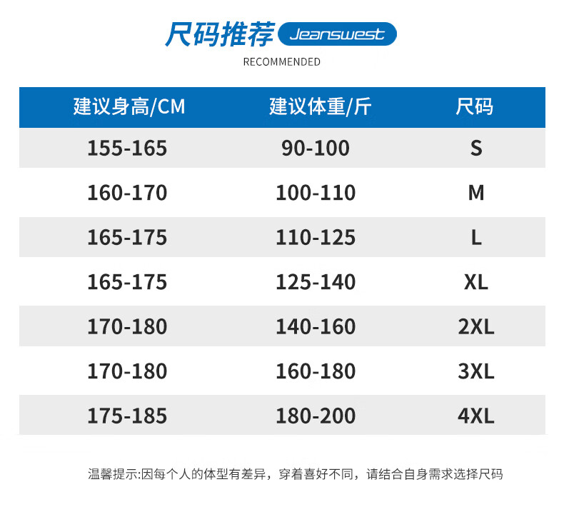 China (cm) 165 / 88-90 170 / 96-98 175 / 108-110 180 / 118-122 185 / 126-130